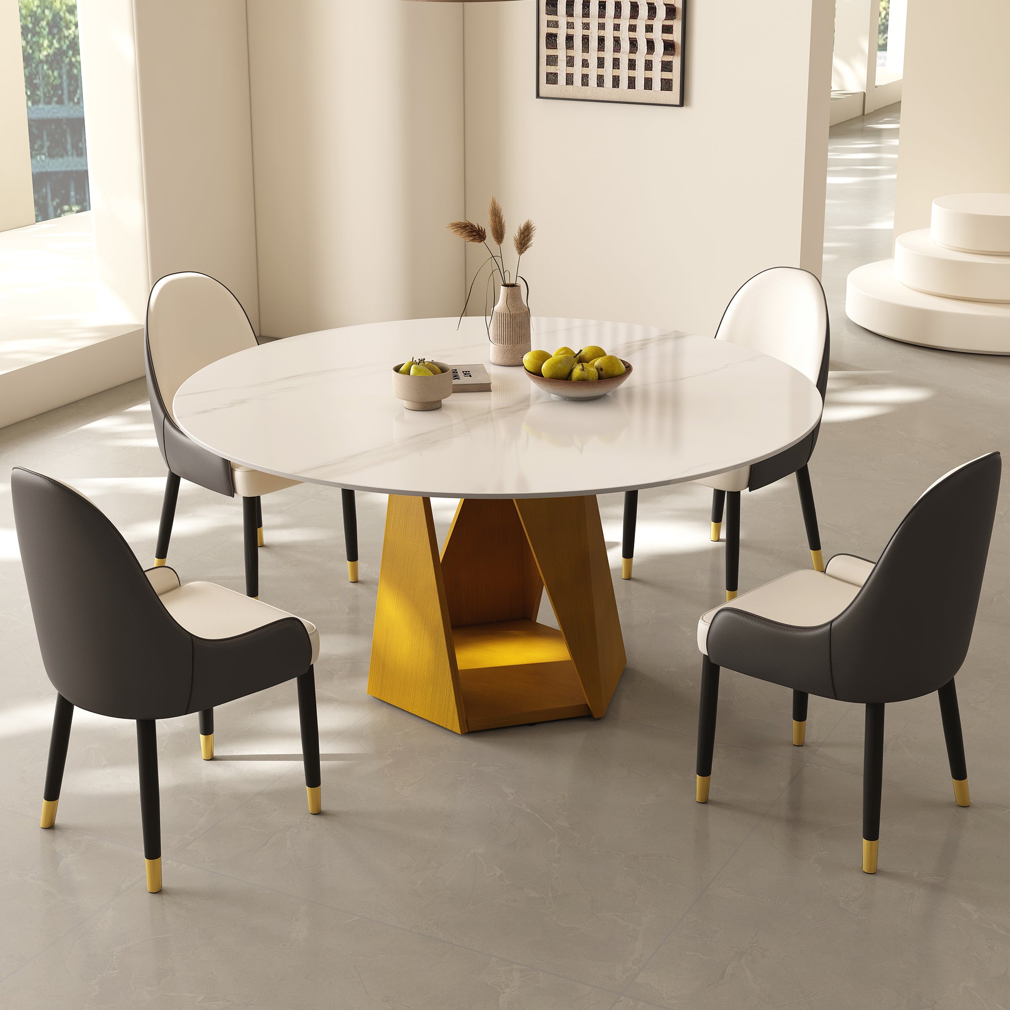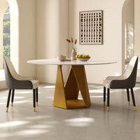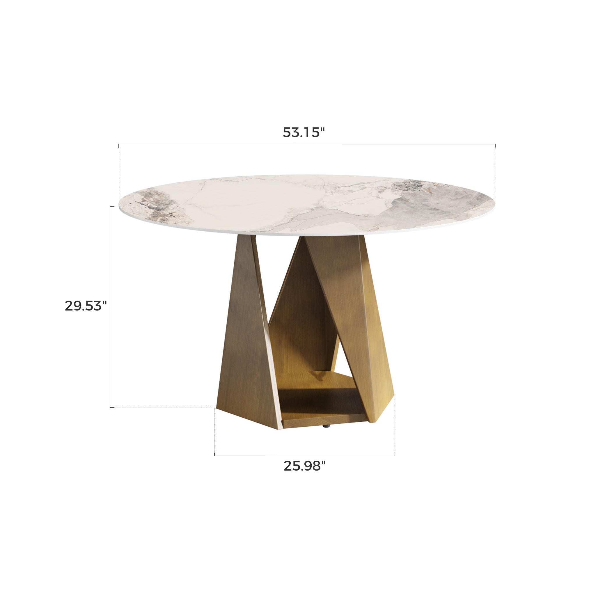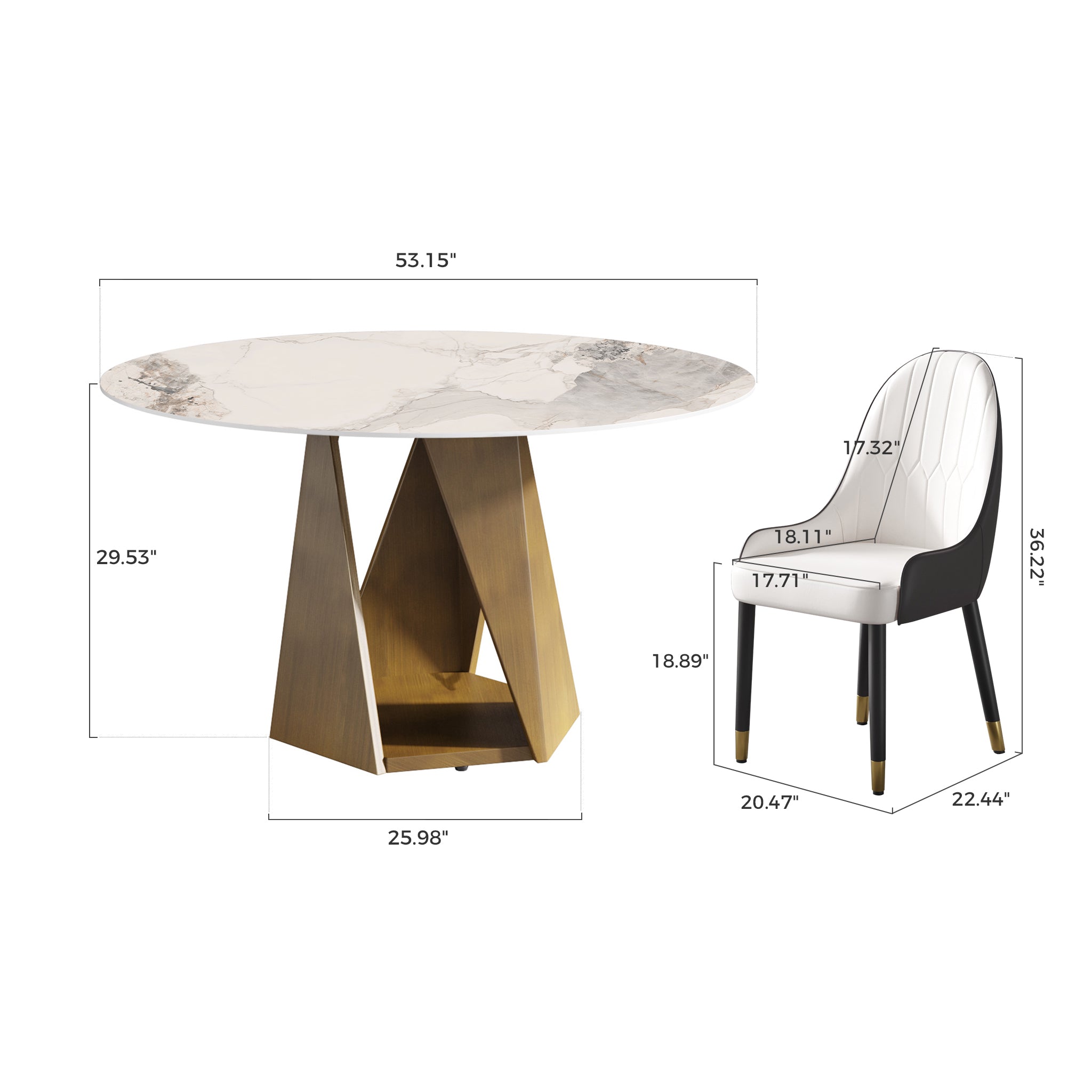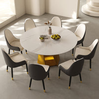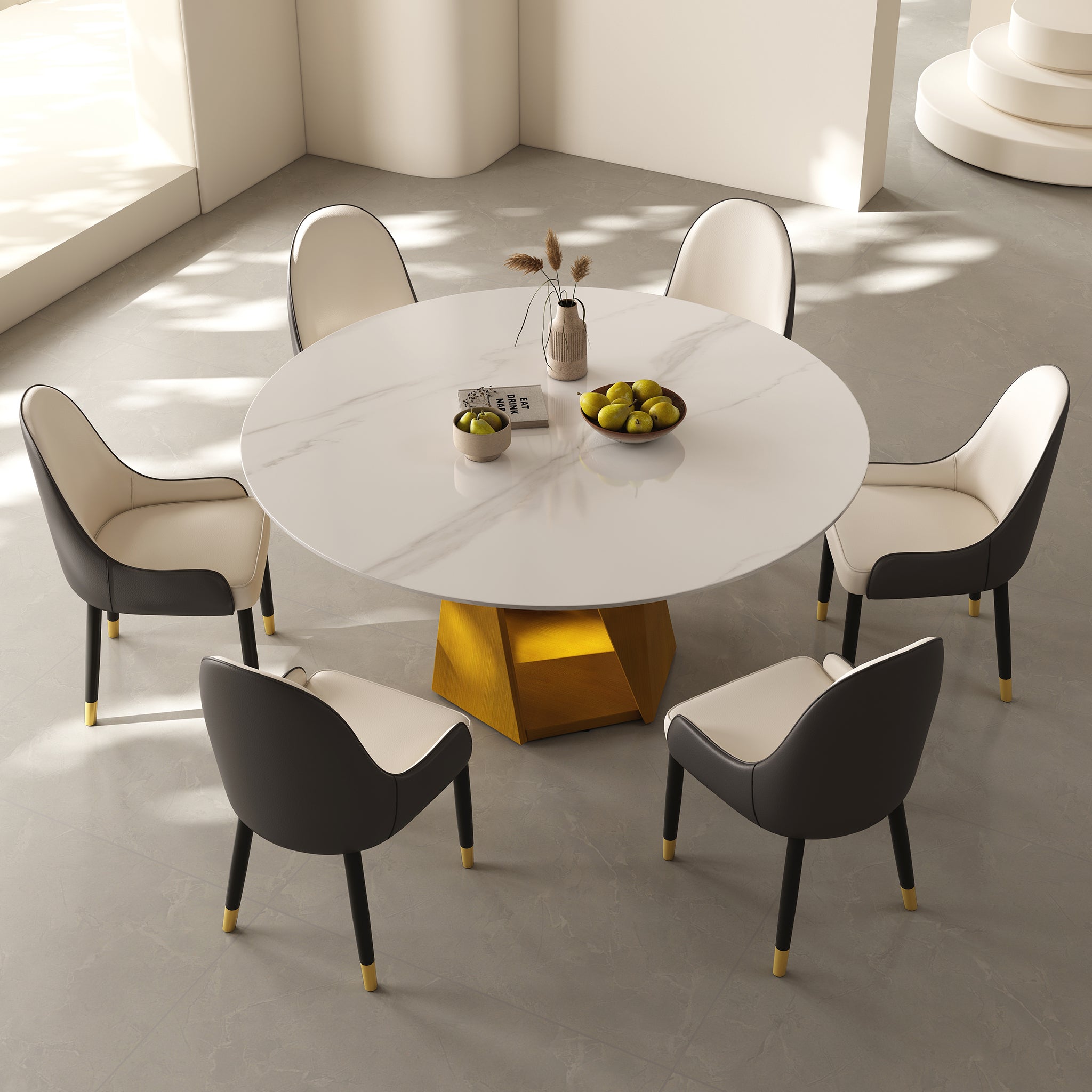 • Modern Round Dining Table – White Sintered Stone Top, Metal Base, Seats 6-8White / 53" Table
