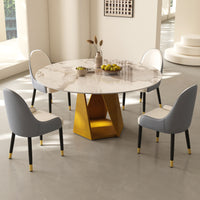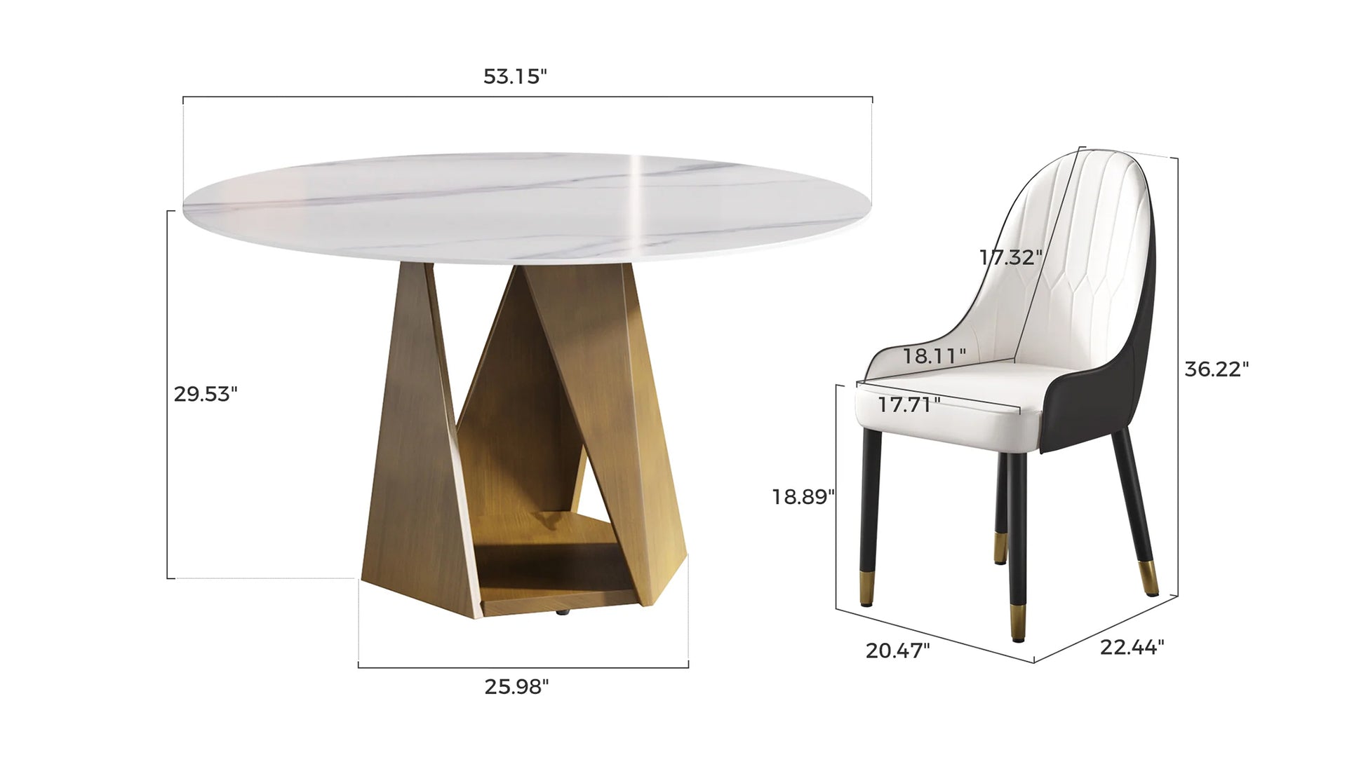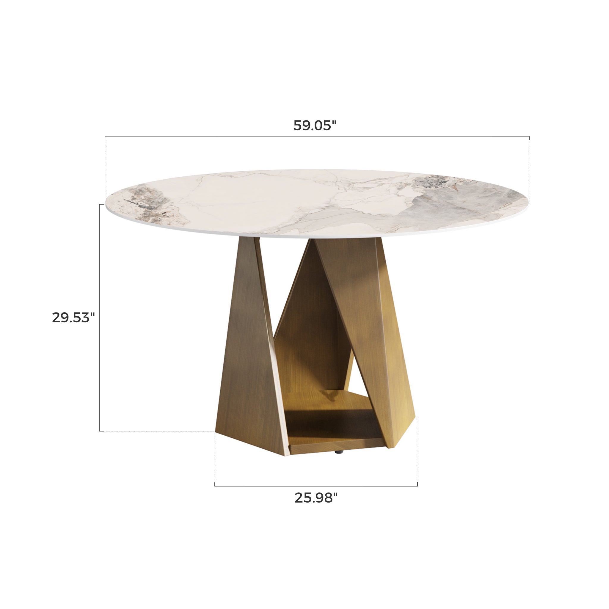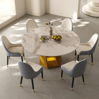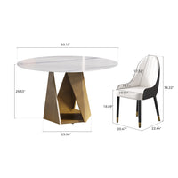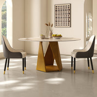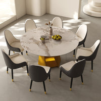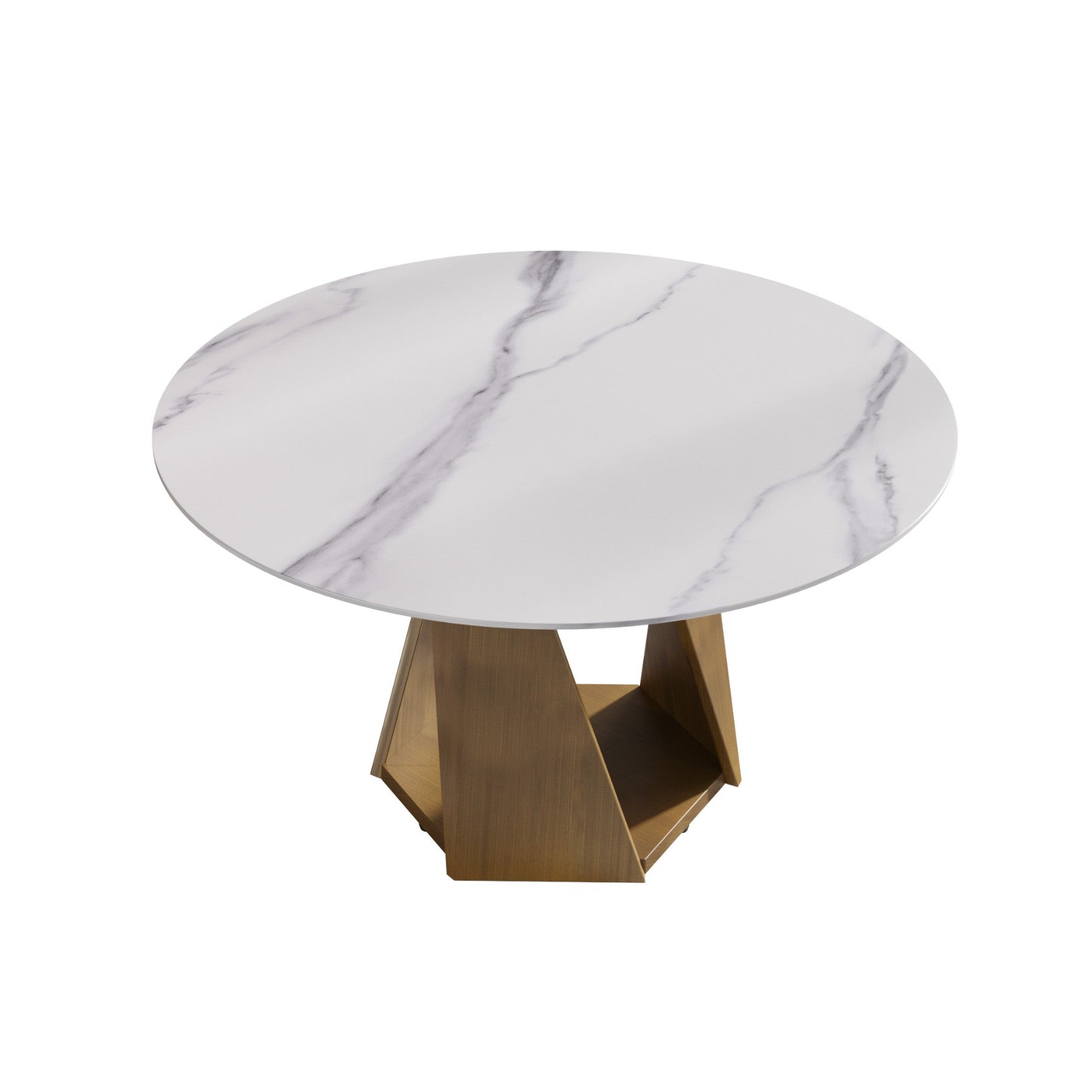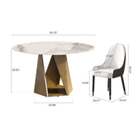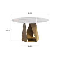 • Modern Round Dining Table – White Sintered Stone Top, Metal Base, Seats 6-8White / 53" Table