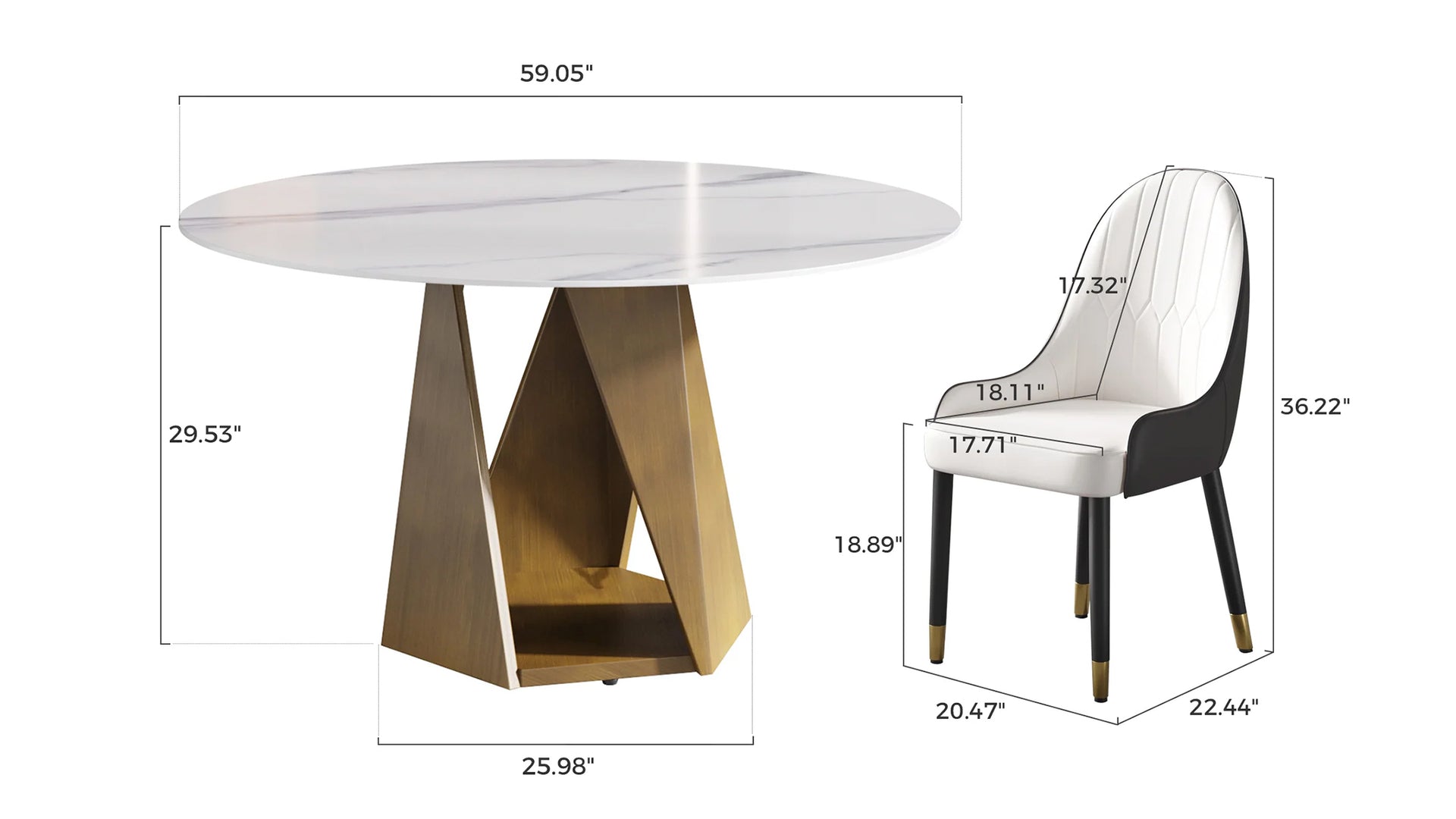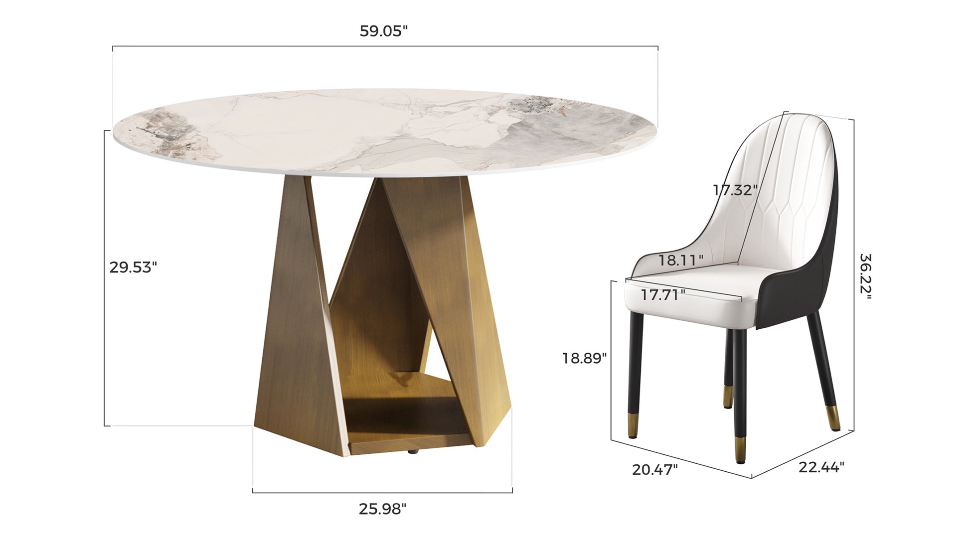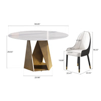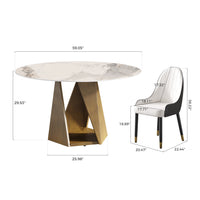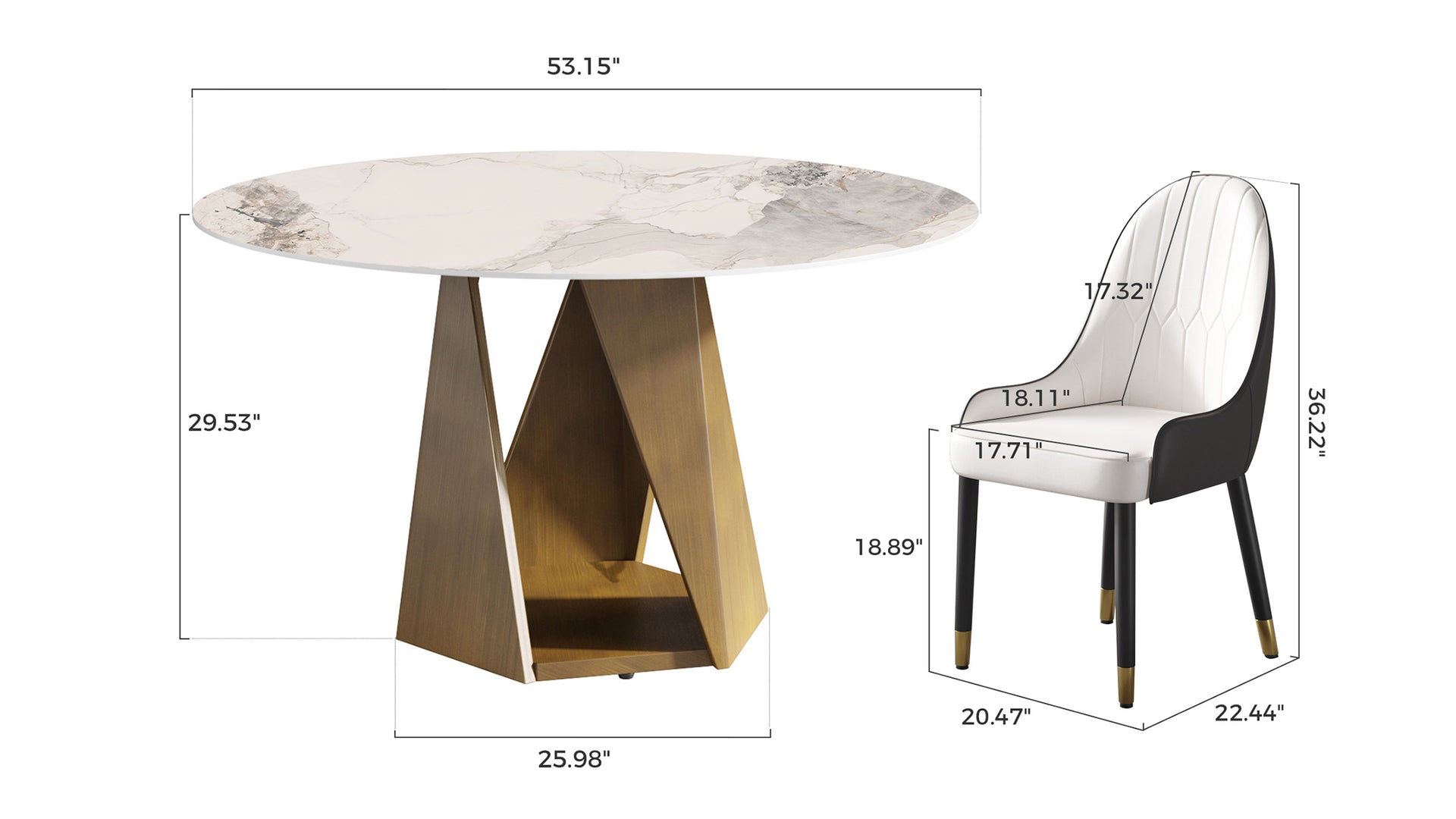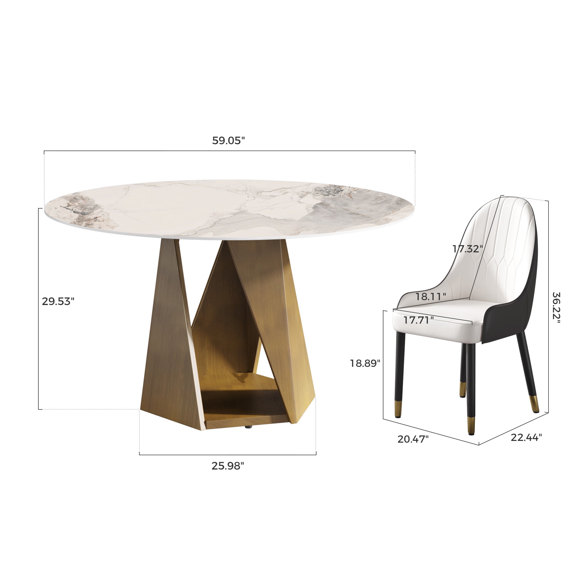 • Modern Round Dining Table – White Sintered Stone Top, Metal Base, Seats 6-8White / 53" Table