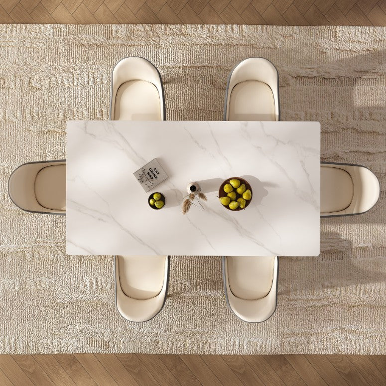 • Modern White Sintered Stone Dining Table – Scratch Resistant, Heat Resistant, Easy to Clean, Seats 6-8White / 63" Table