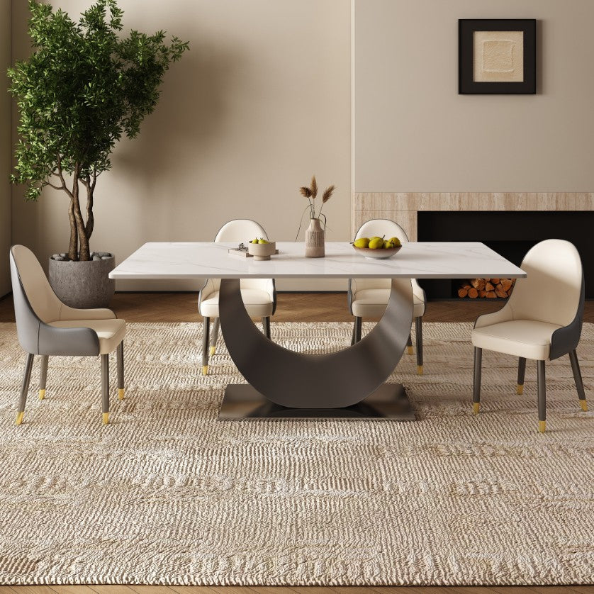 Modern White Sintered Stone Dining Table – Scratch Resistant, Heat Resistant, Easy to Clean, Seats 6-8