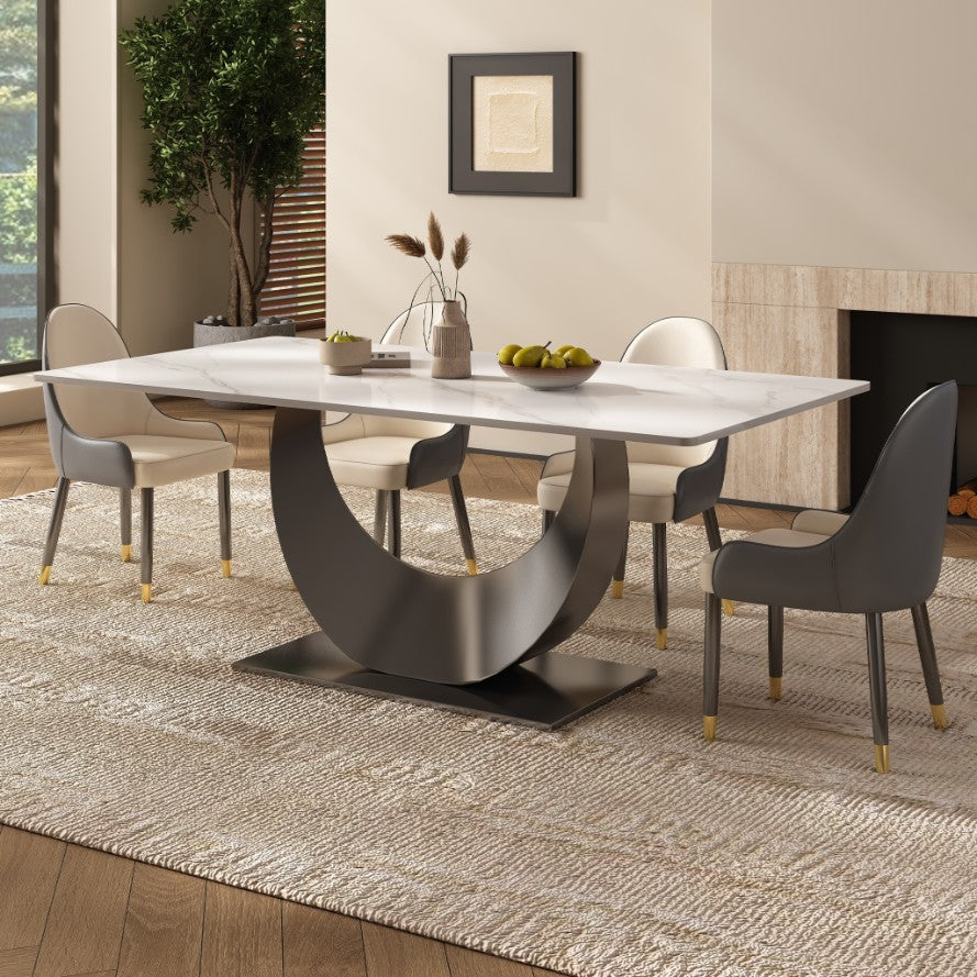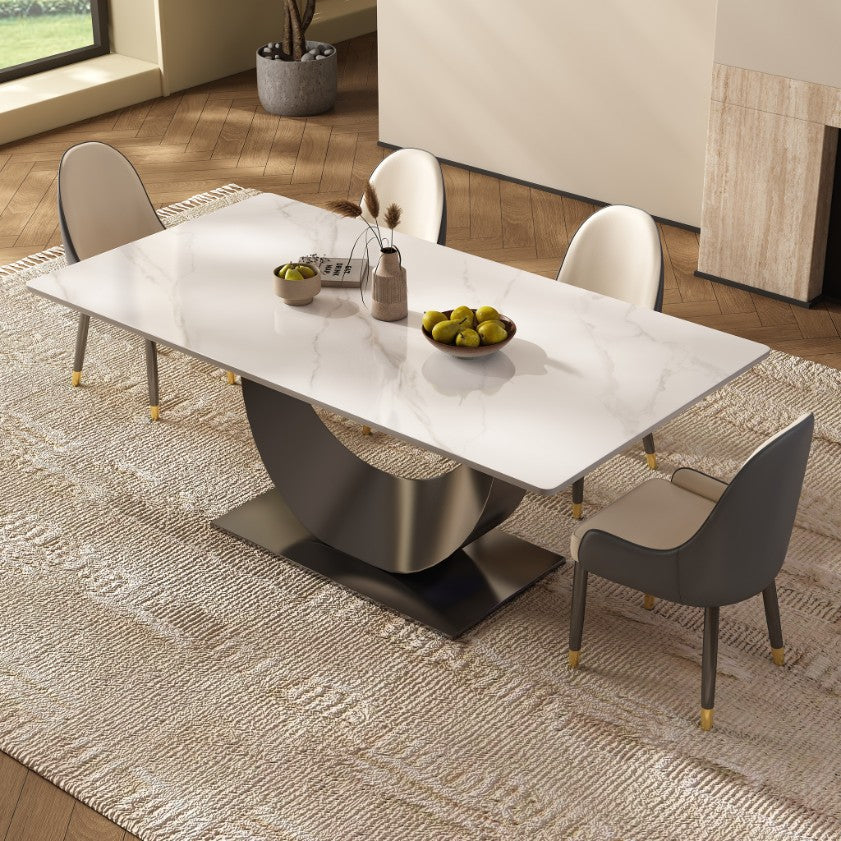 The sintered stone surface is scratch-resistant, heat-resistant, and stain-proof. A quick wipe is all it takes to keep the table looking pristine with minimal effort.