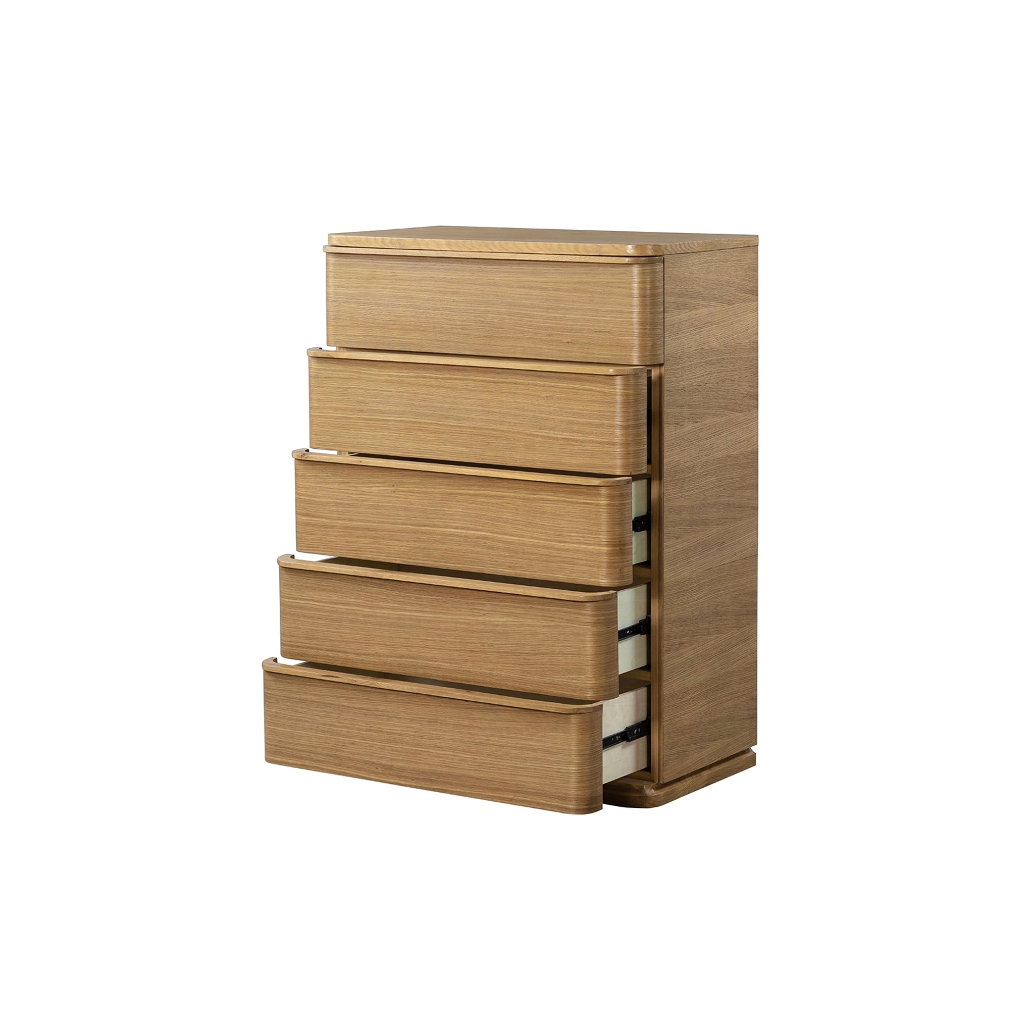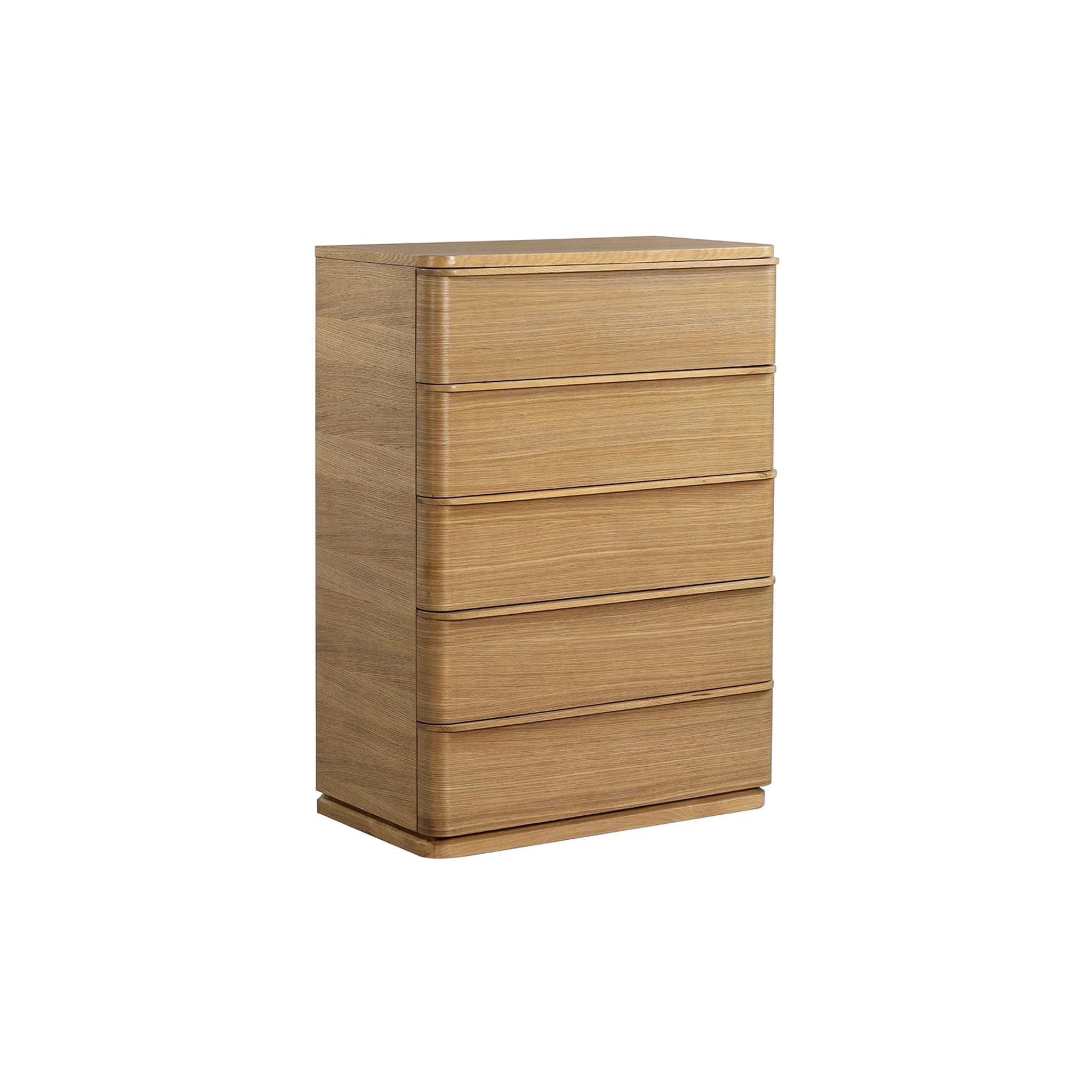 A warm oak finish paired with sleek, modern lines adds sophistication and a timeless touch to any bedroom or living space.