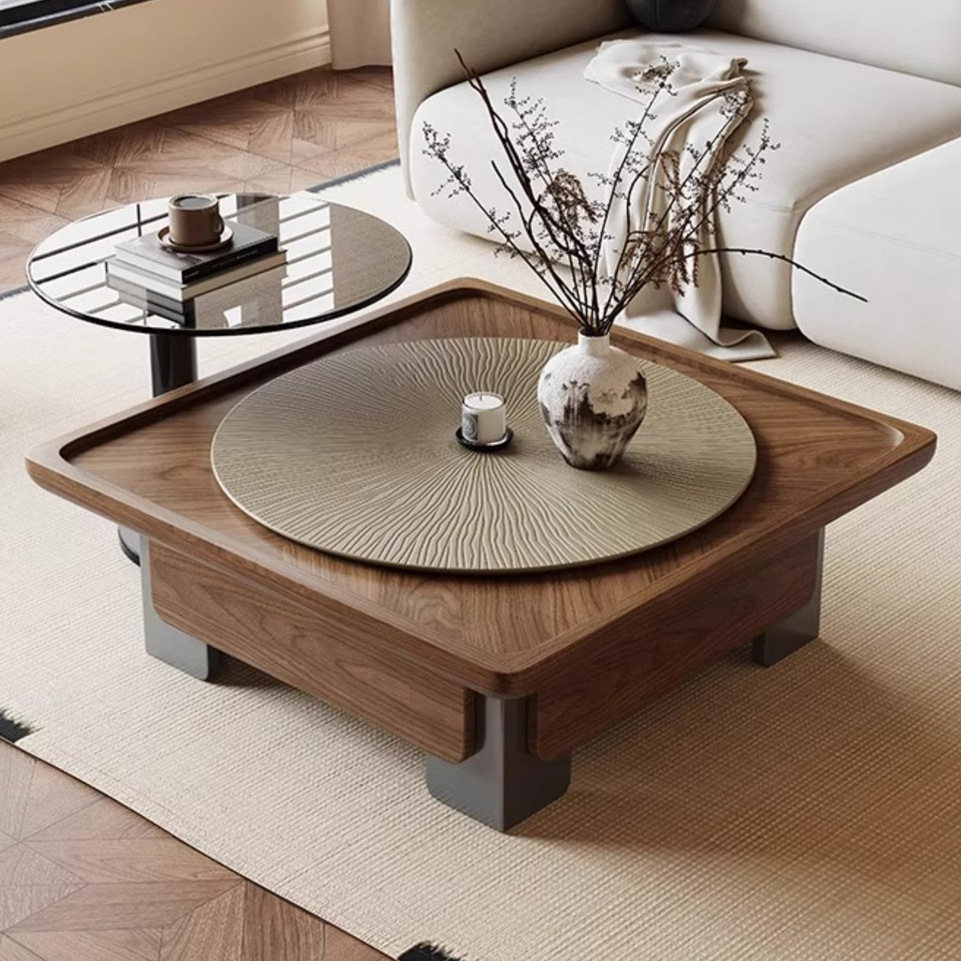 39.4" Modern Mid Century Square Walnut Coffee Table
