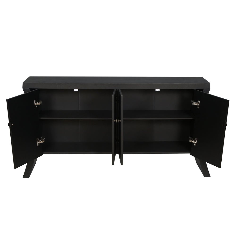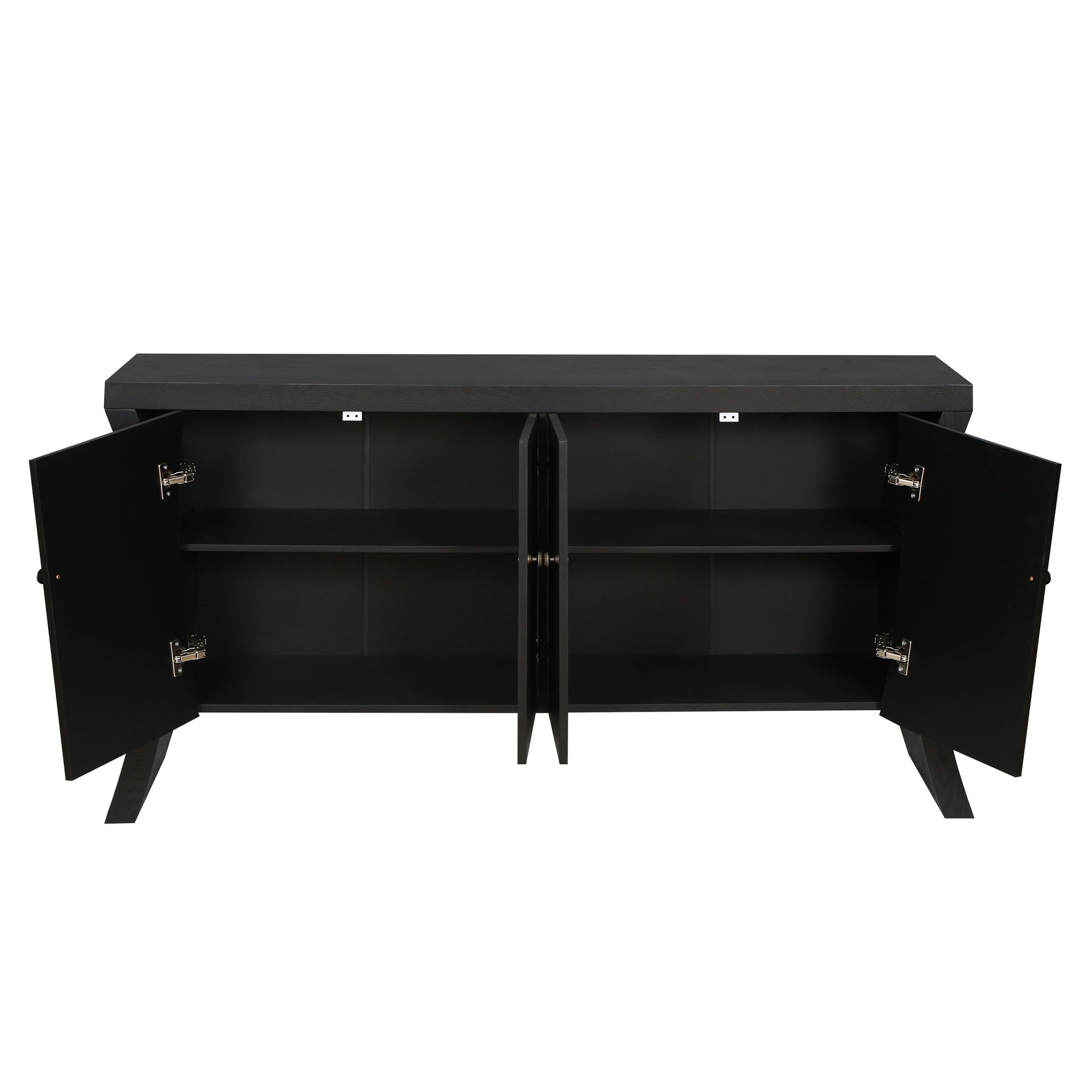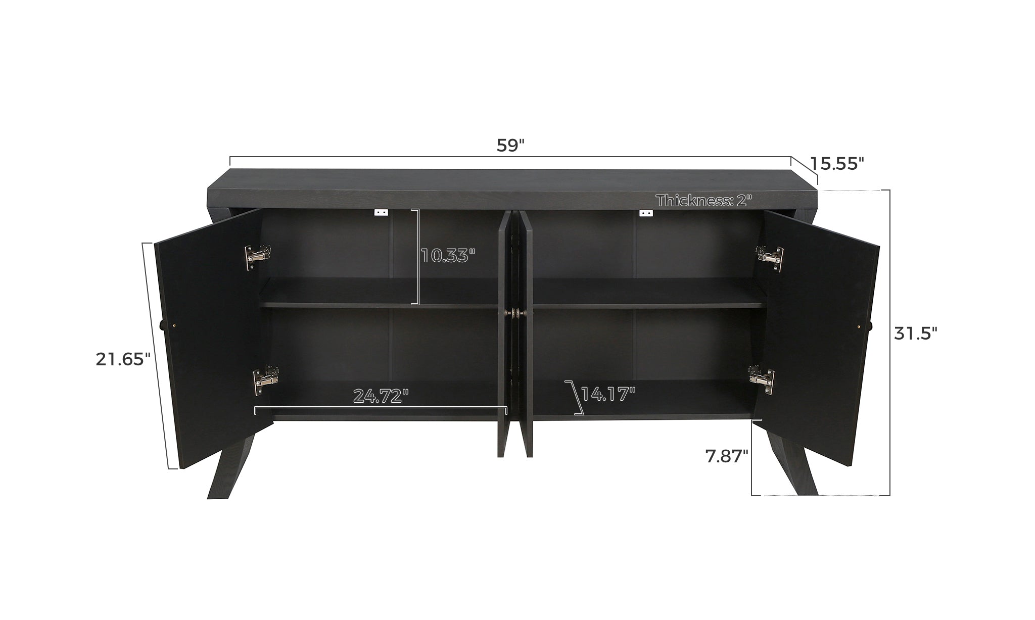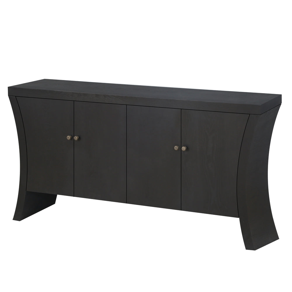 59'' Mid-Century Industrial Credenza Wood Sideboard Buffet Cabinet with Curved Legs and Vintage Bronze Handles