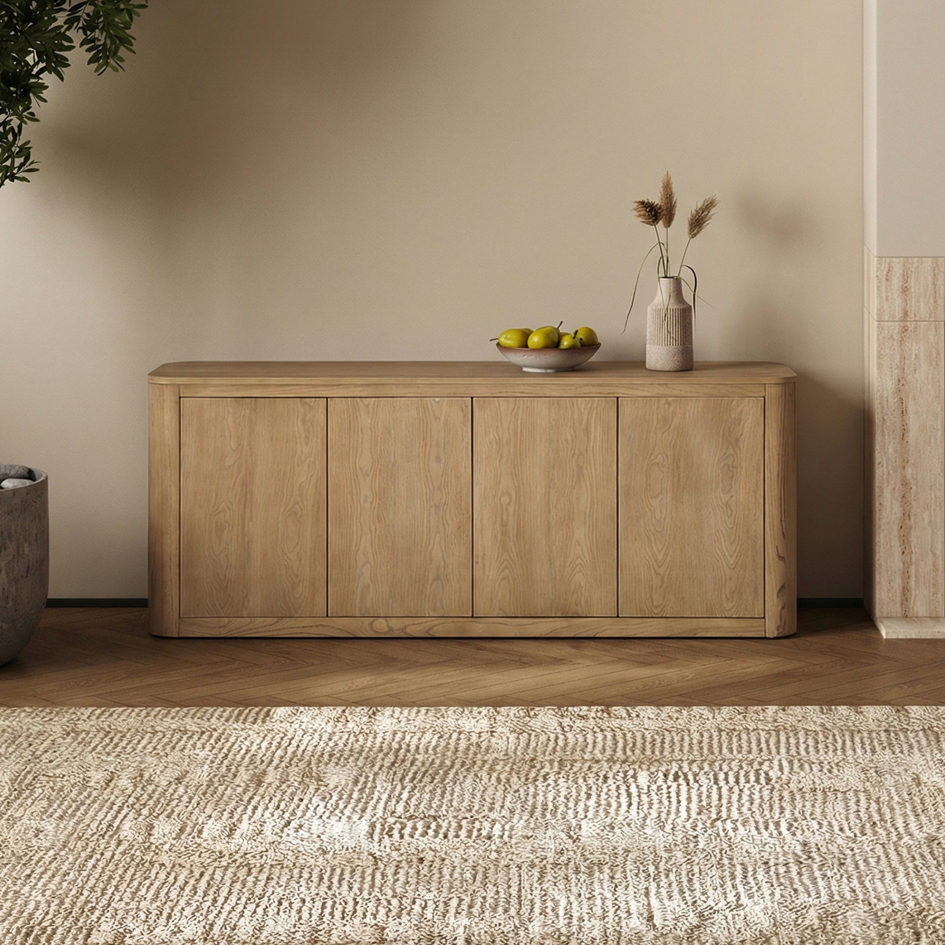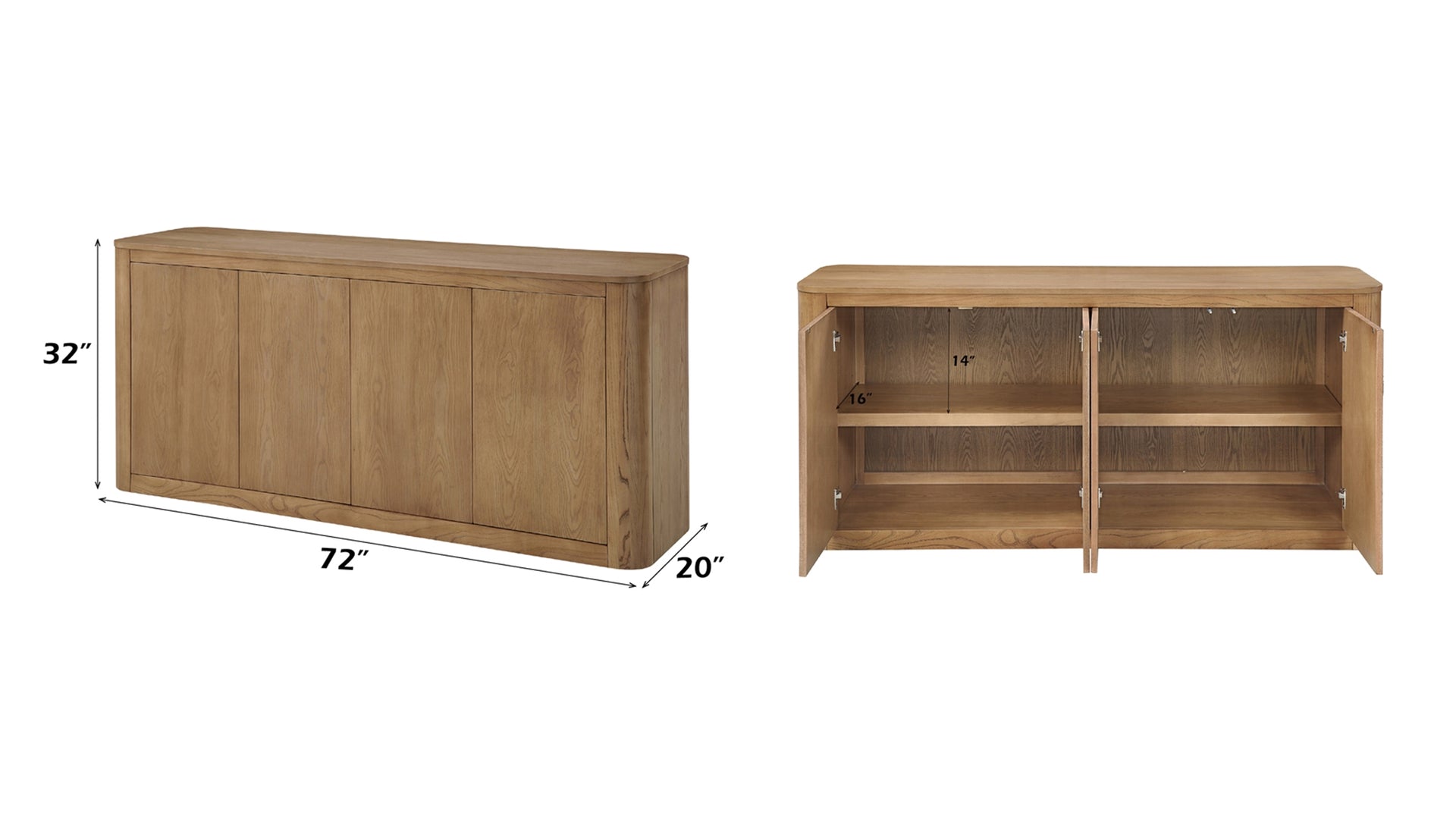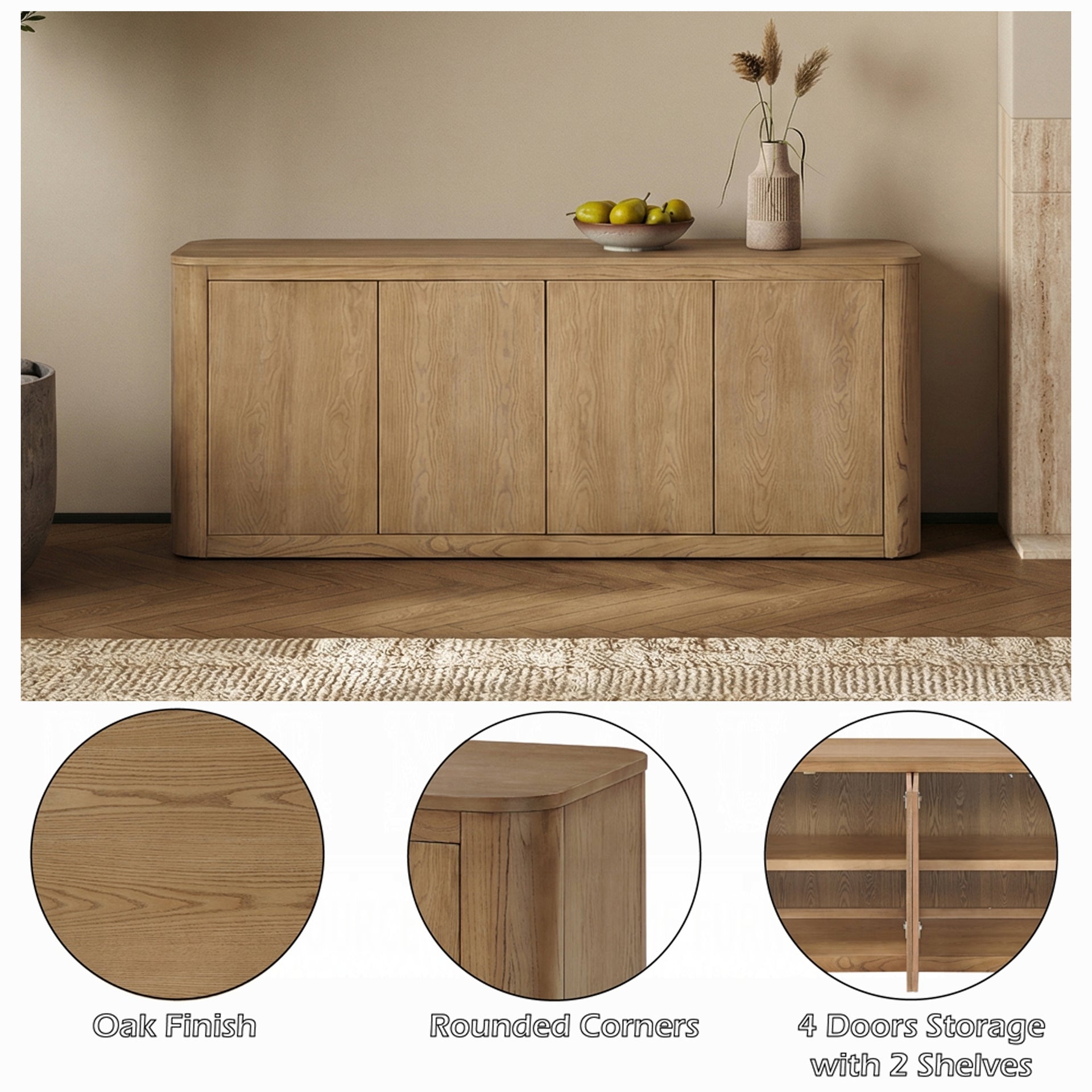 Equipped with 4 doors and 2 shelves, perfect for organizing dinnerware, linens, or entertaining essentials while keeping your space tidy.