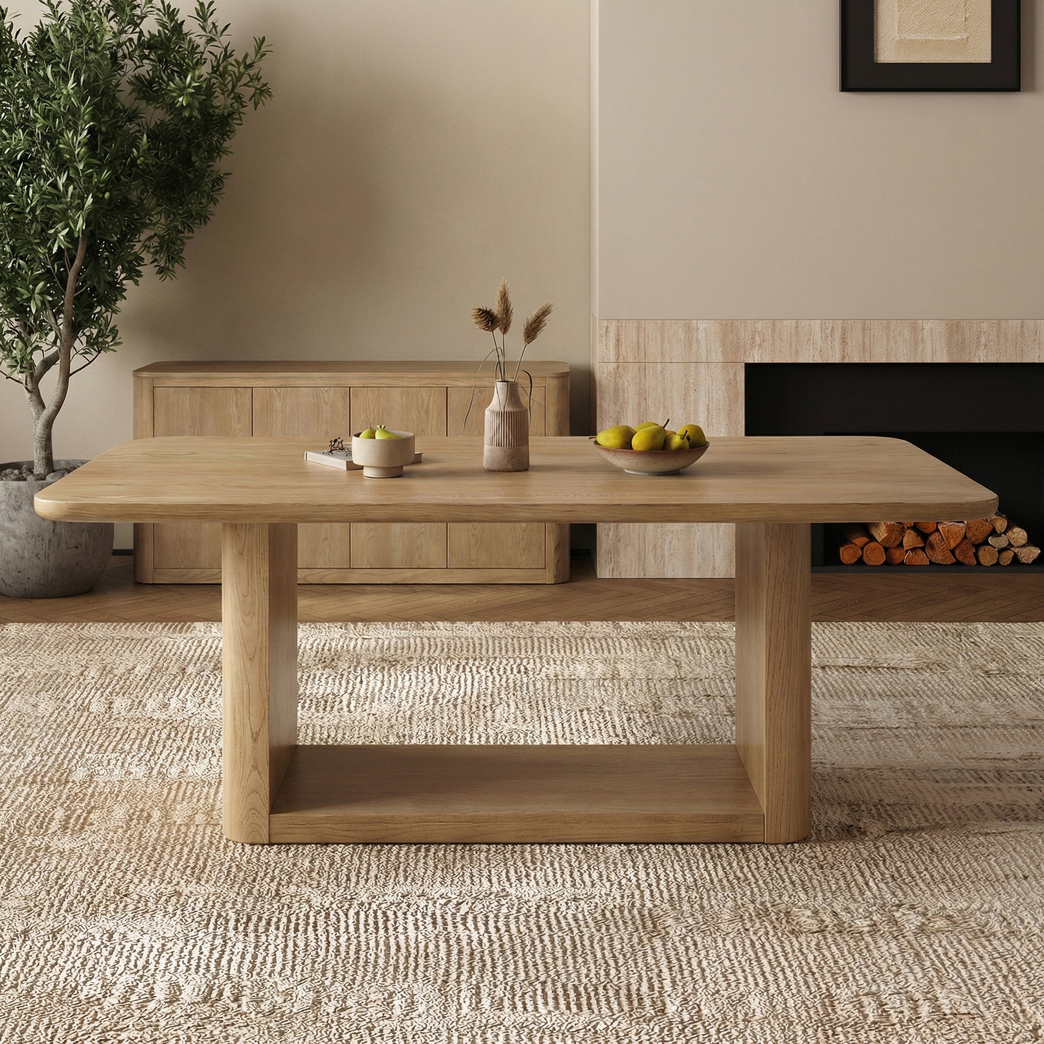 Crafted from composite wood, oak veneer, poly, and solid wood for long-lasting stability and everyday use.