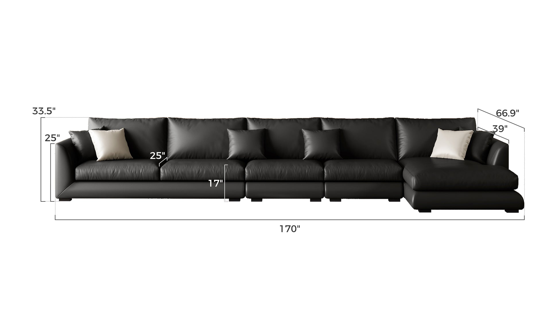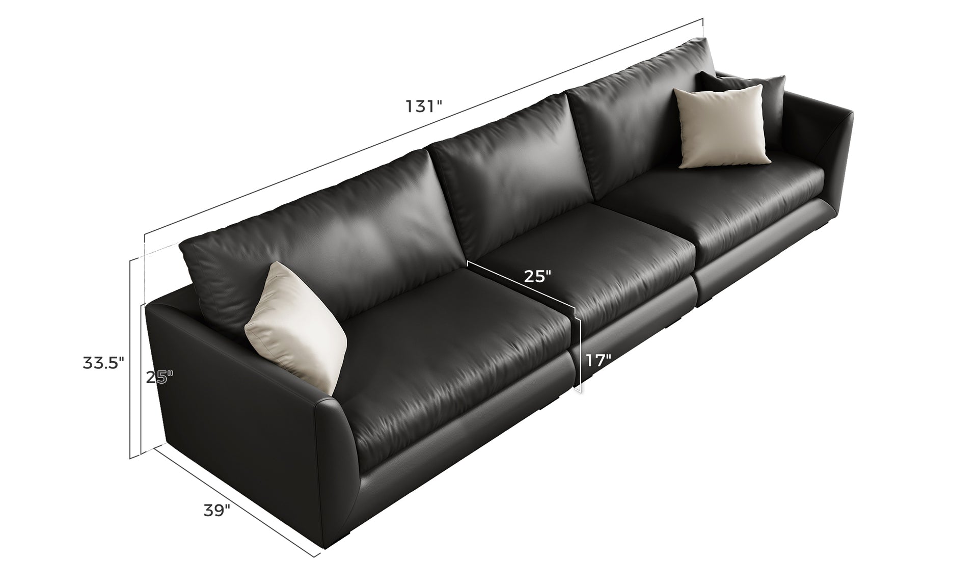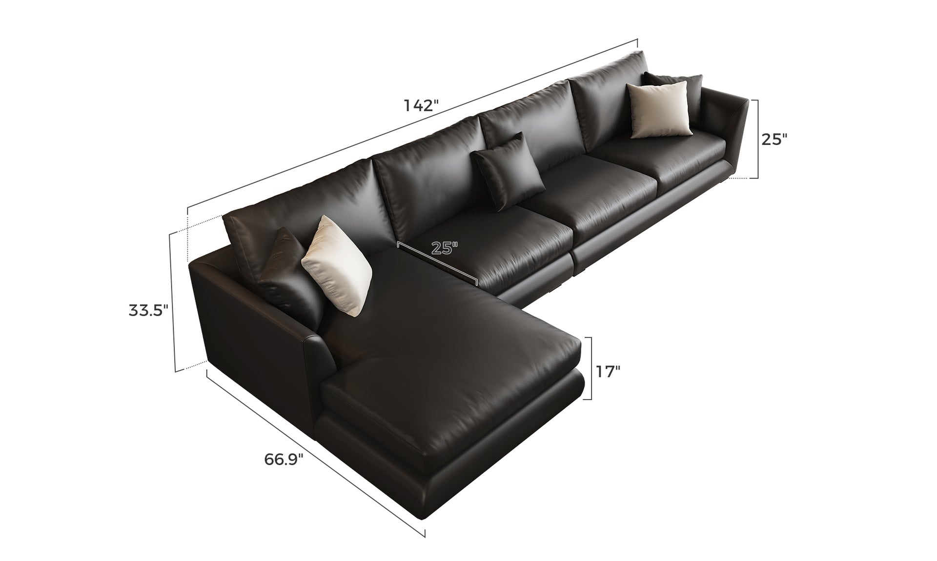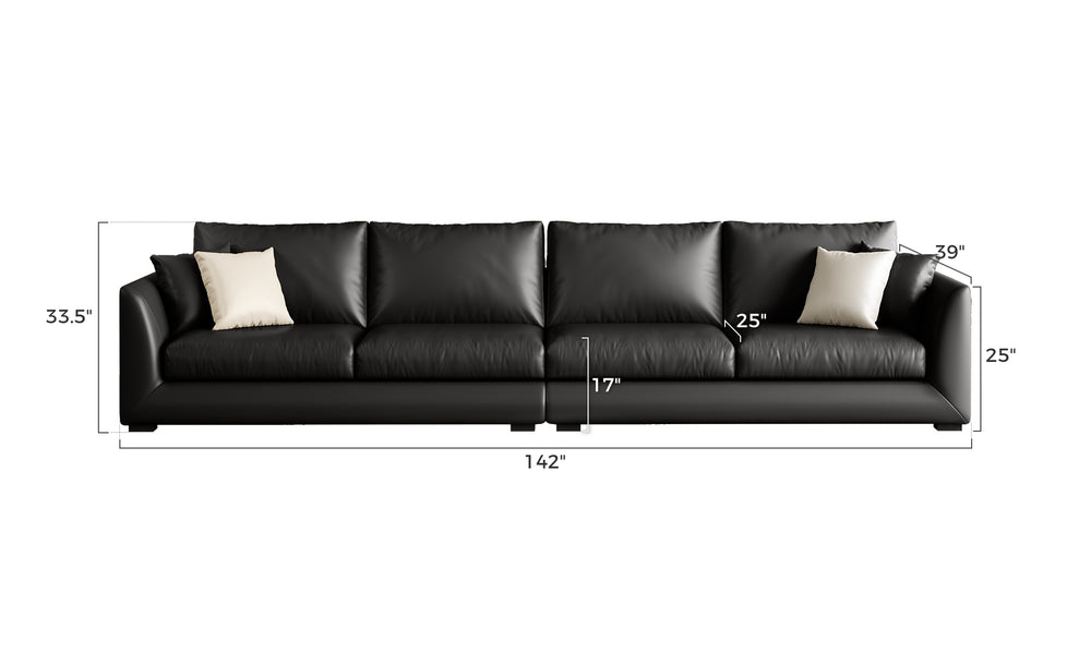 • Aalto Boutique Genuine Leather Feathers SofaBlack / 4 Seater Facing Left