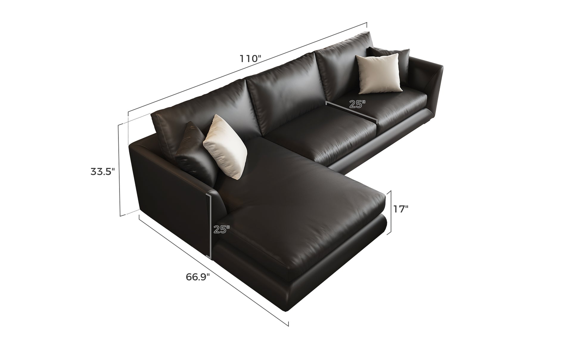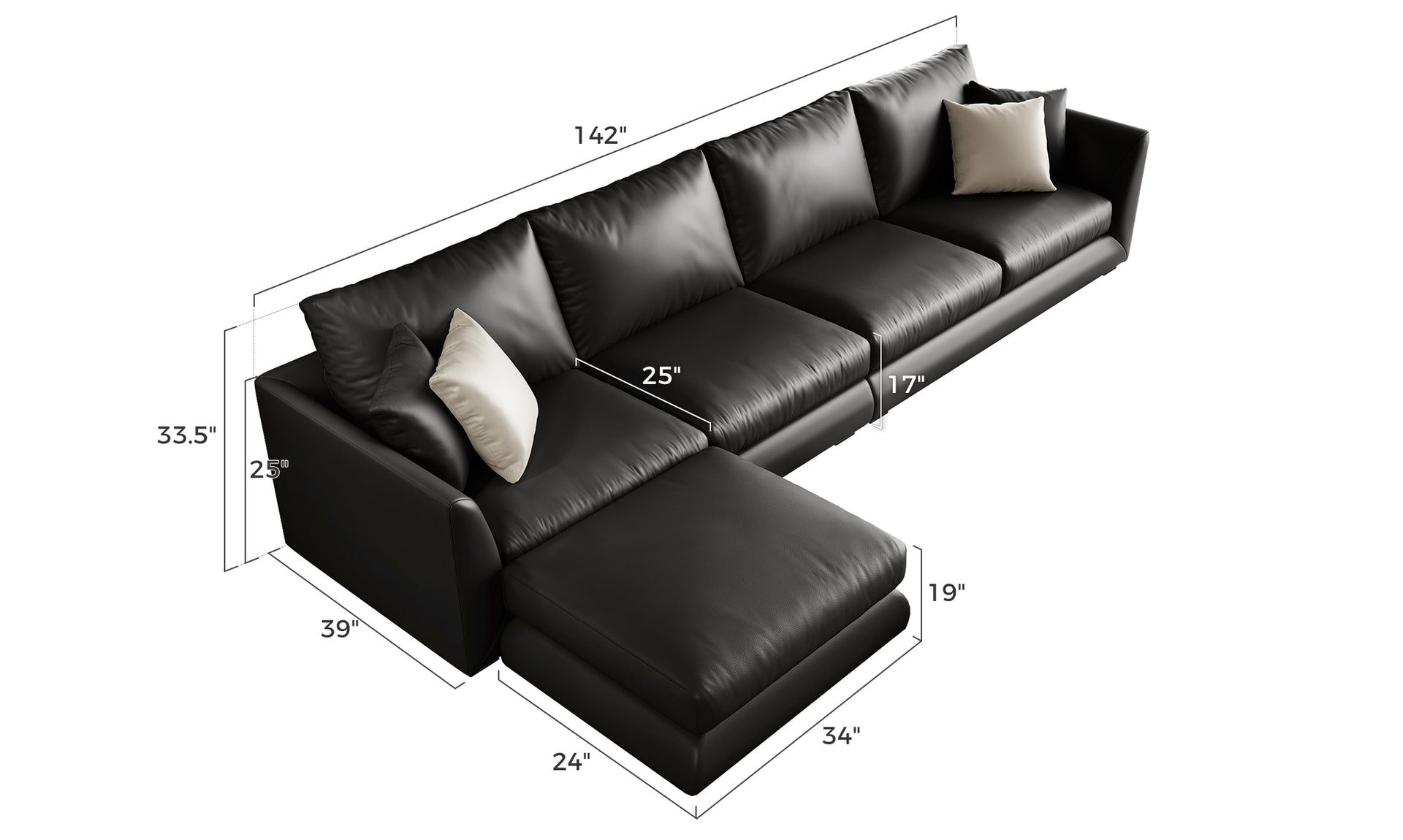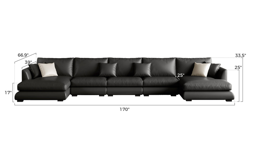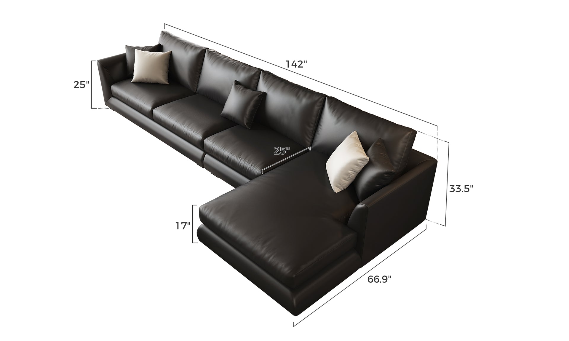 • Aalto Boutique Genuine Leather Feathers SofaBlack / 4 Seater Facing Left