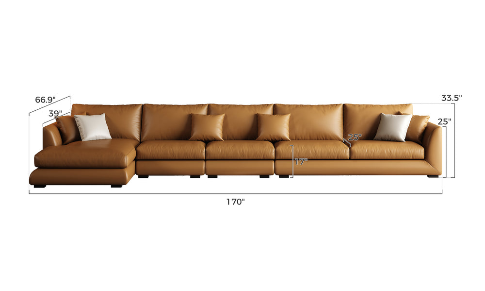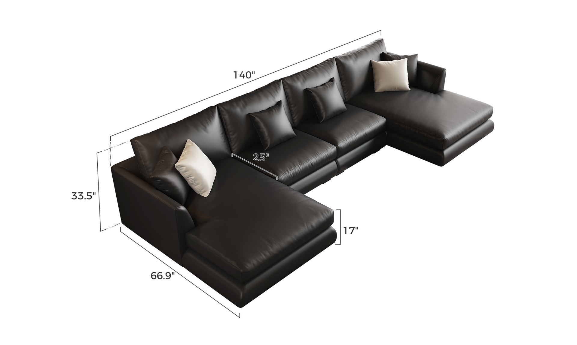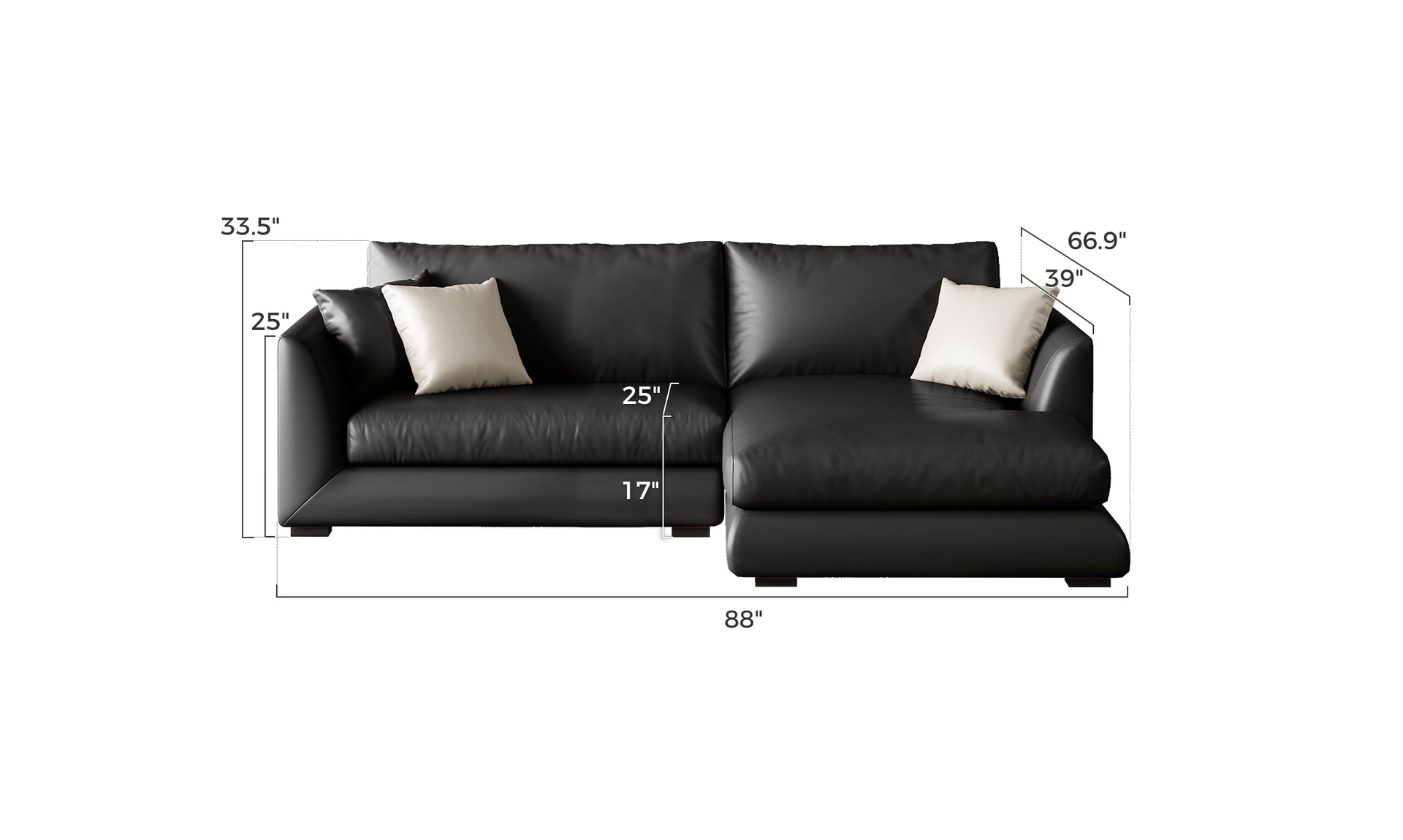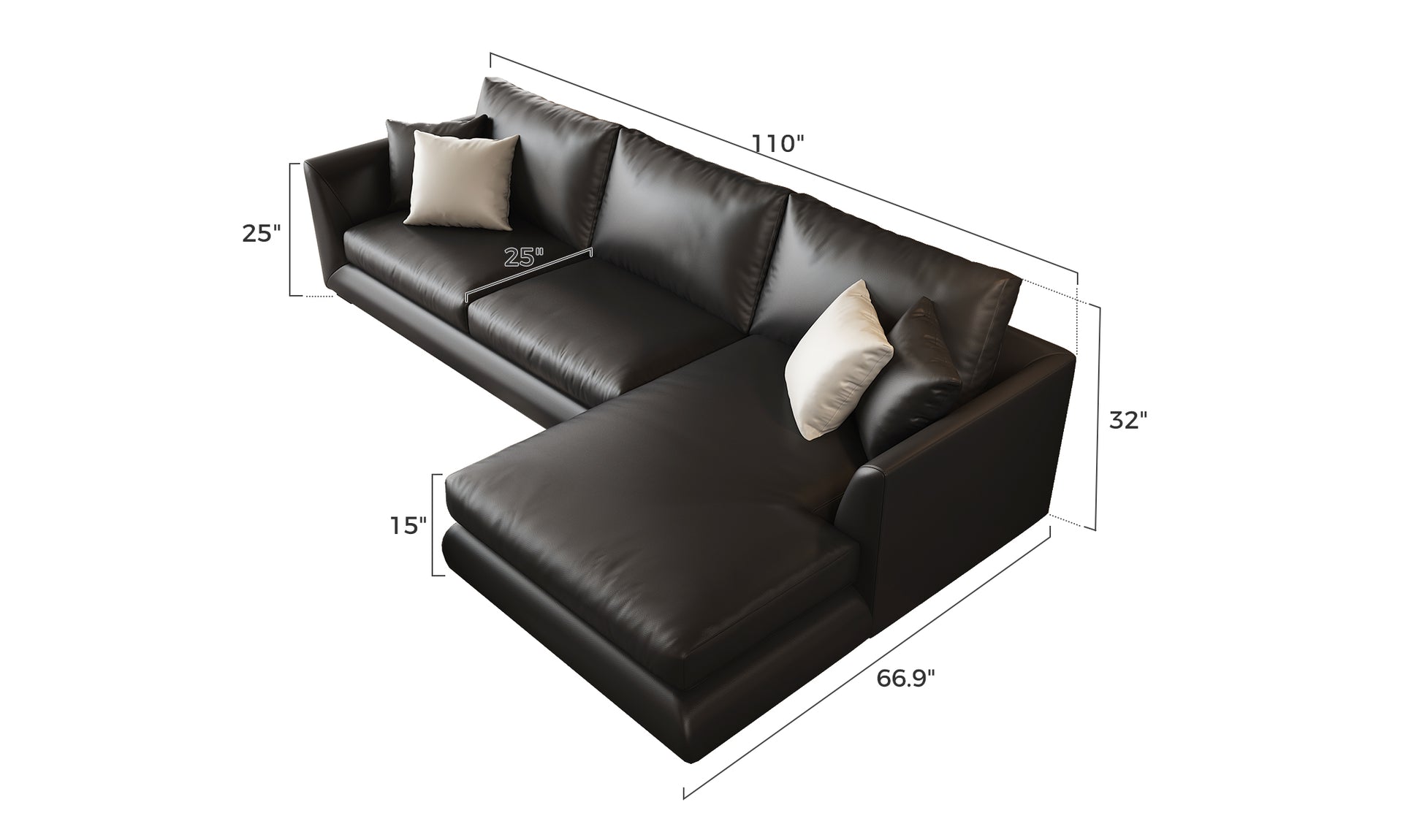 • Aalto Boutique Genuine Leather Feathers SofaBlack / 4 Seater Facing Left