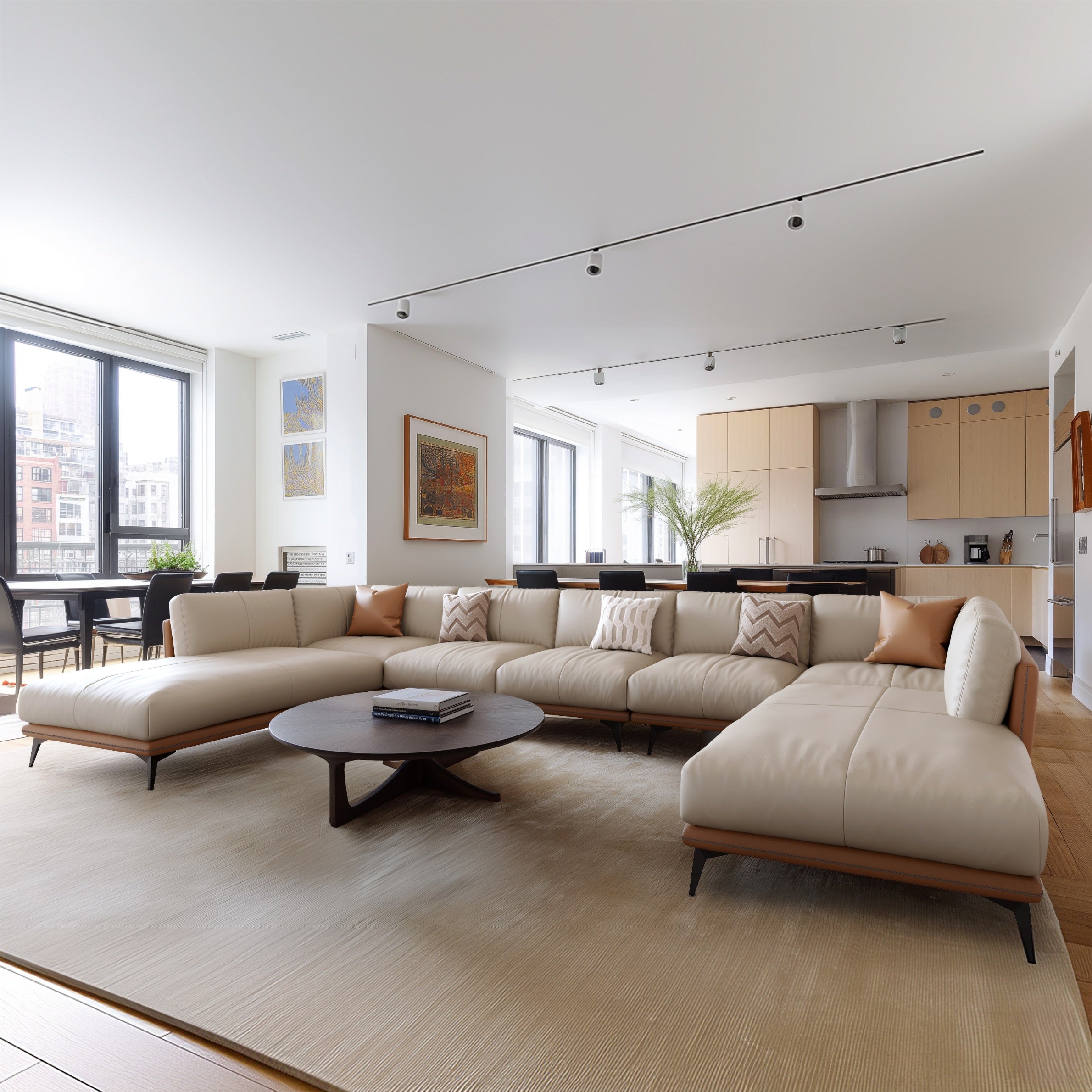 All-Leather U-Shaped Bumper Sectional