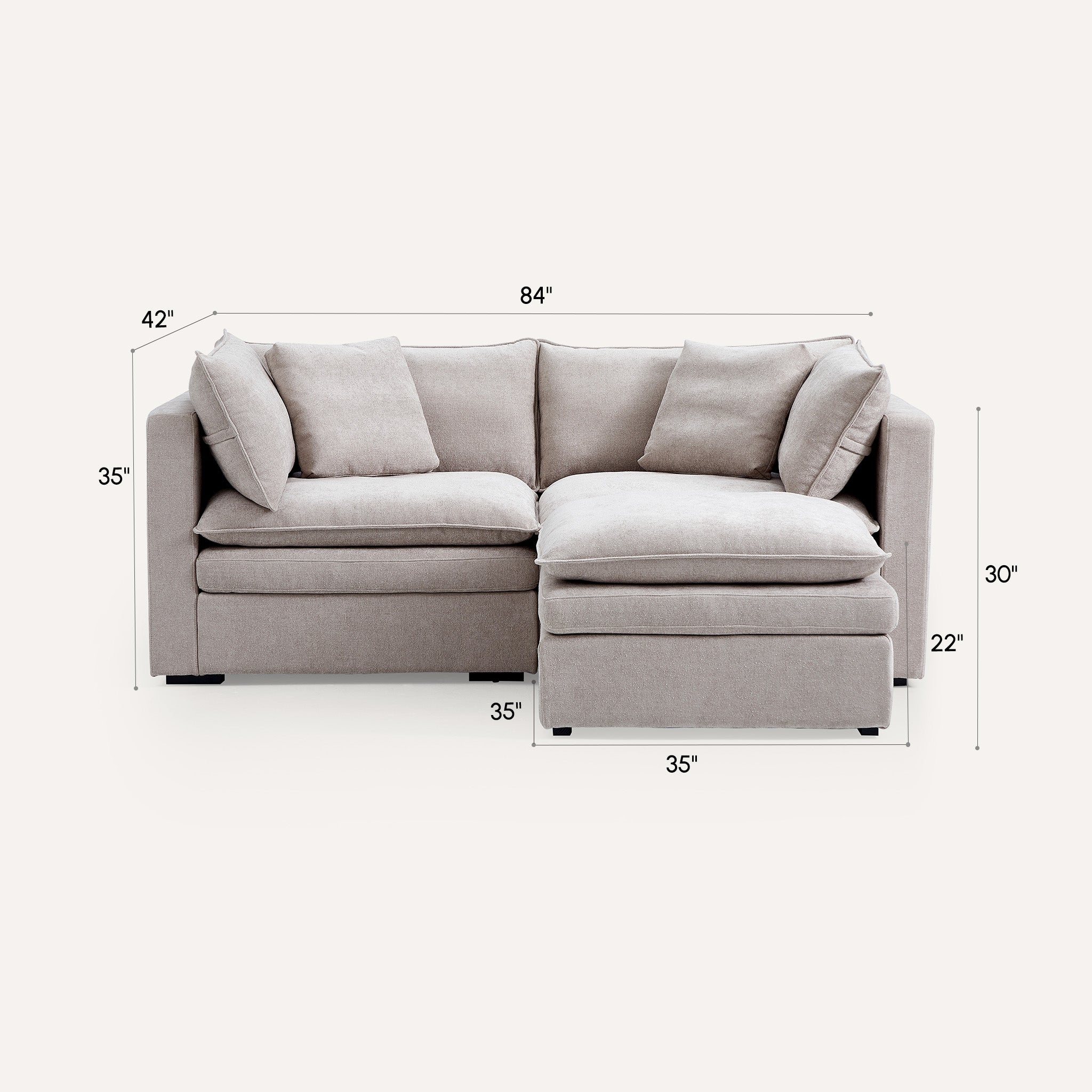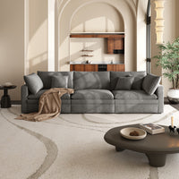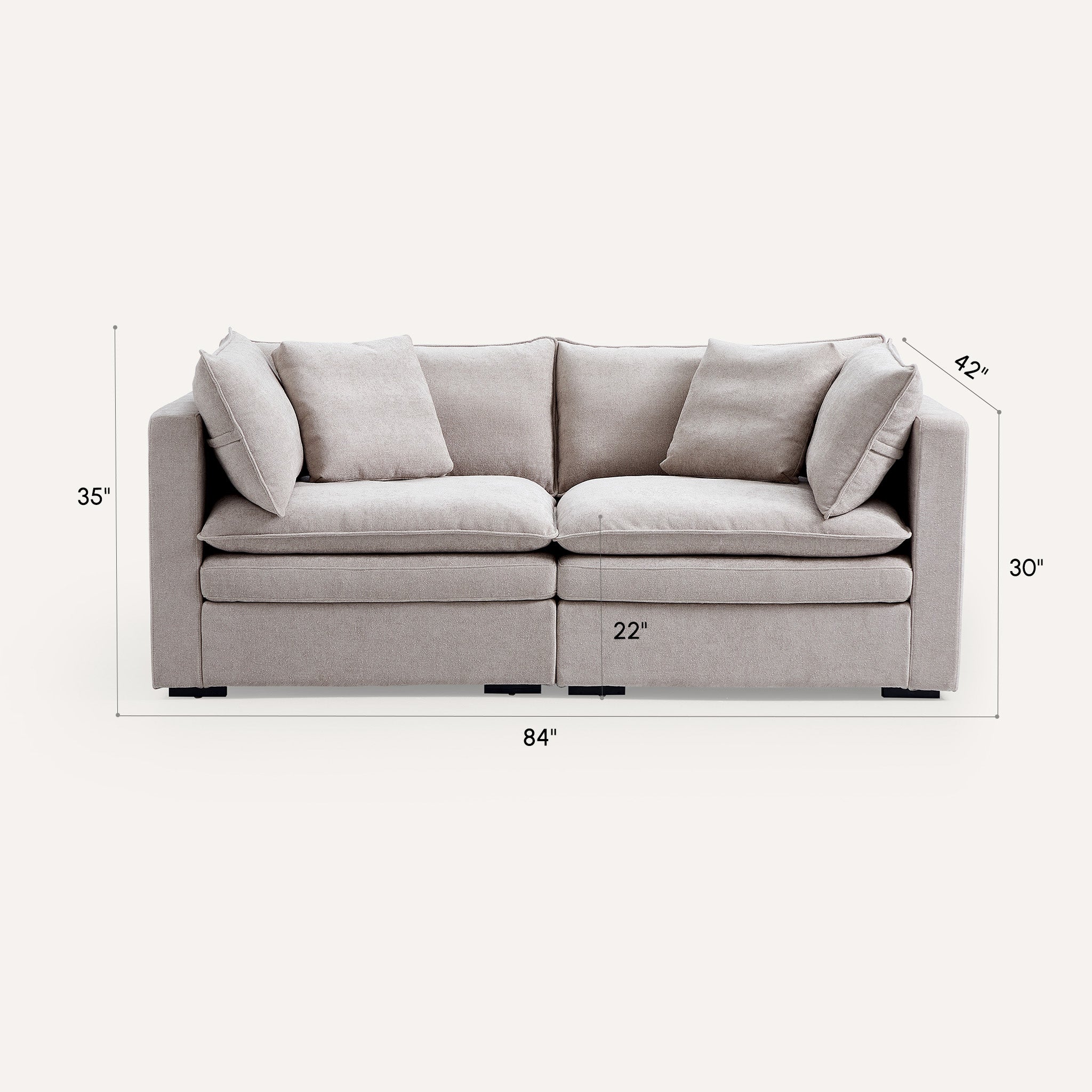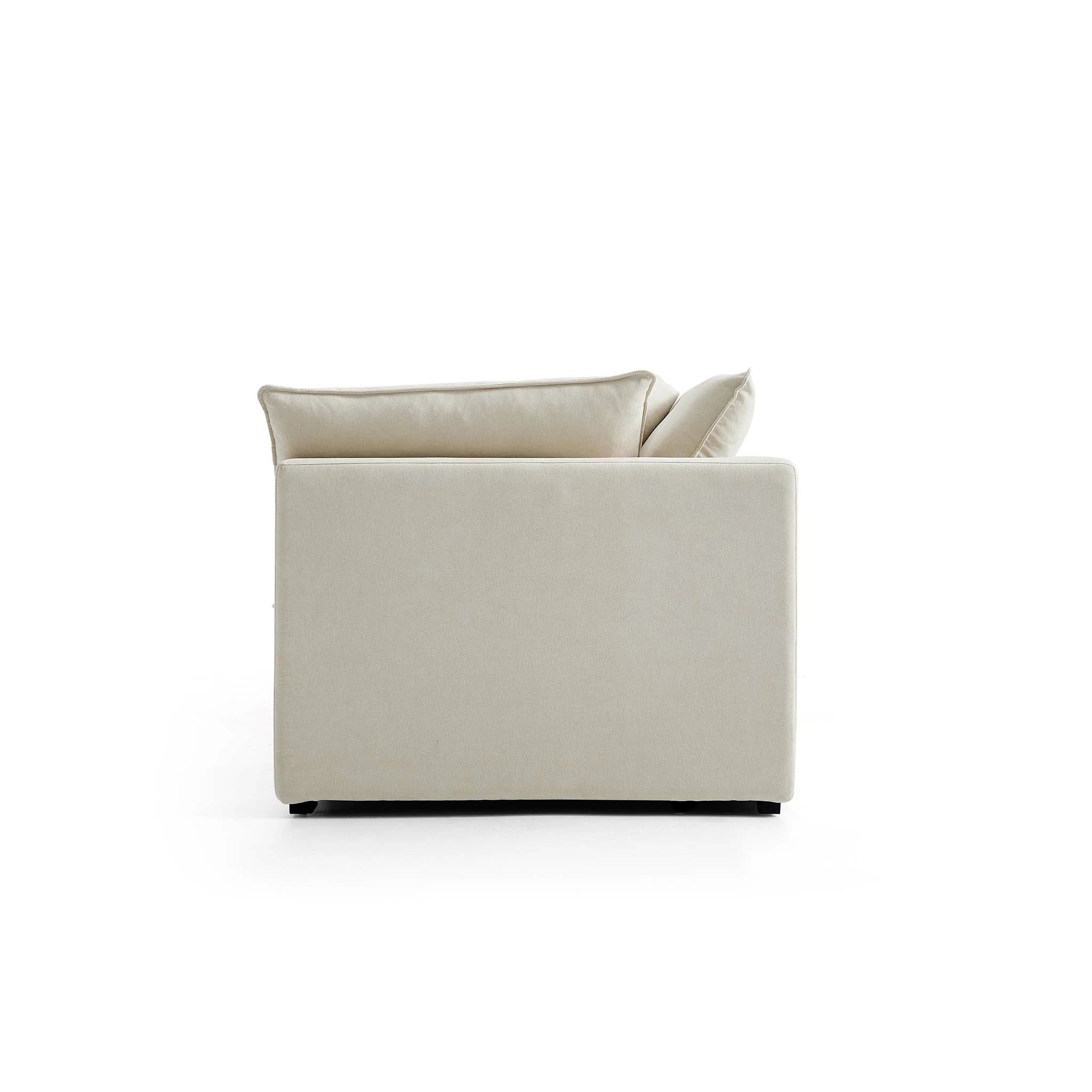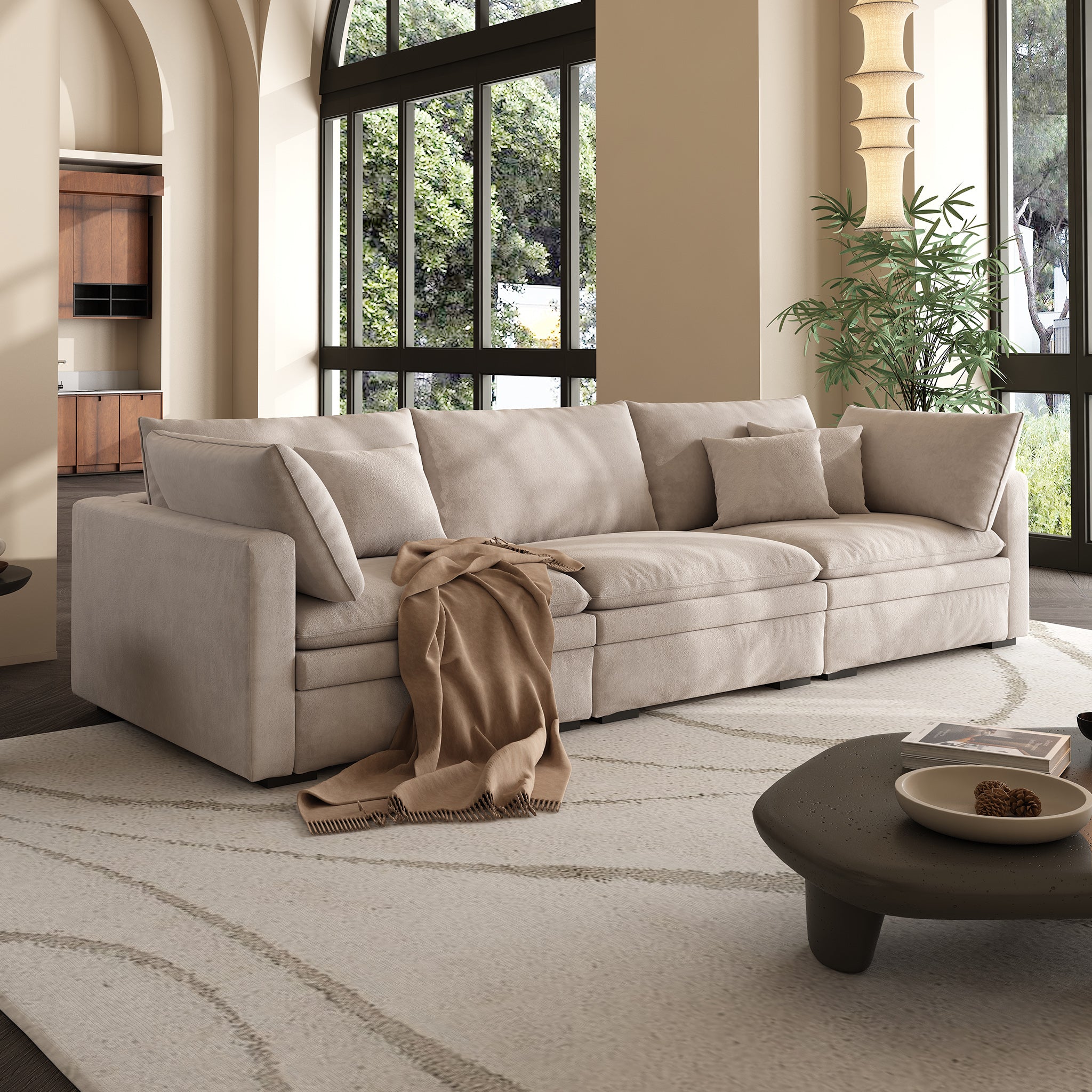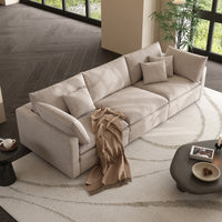 This sofa offers durable, high-resilience foam cushions and plush feather-down pillows for lasting comfort and support.