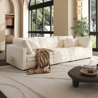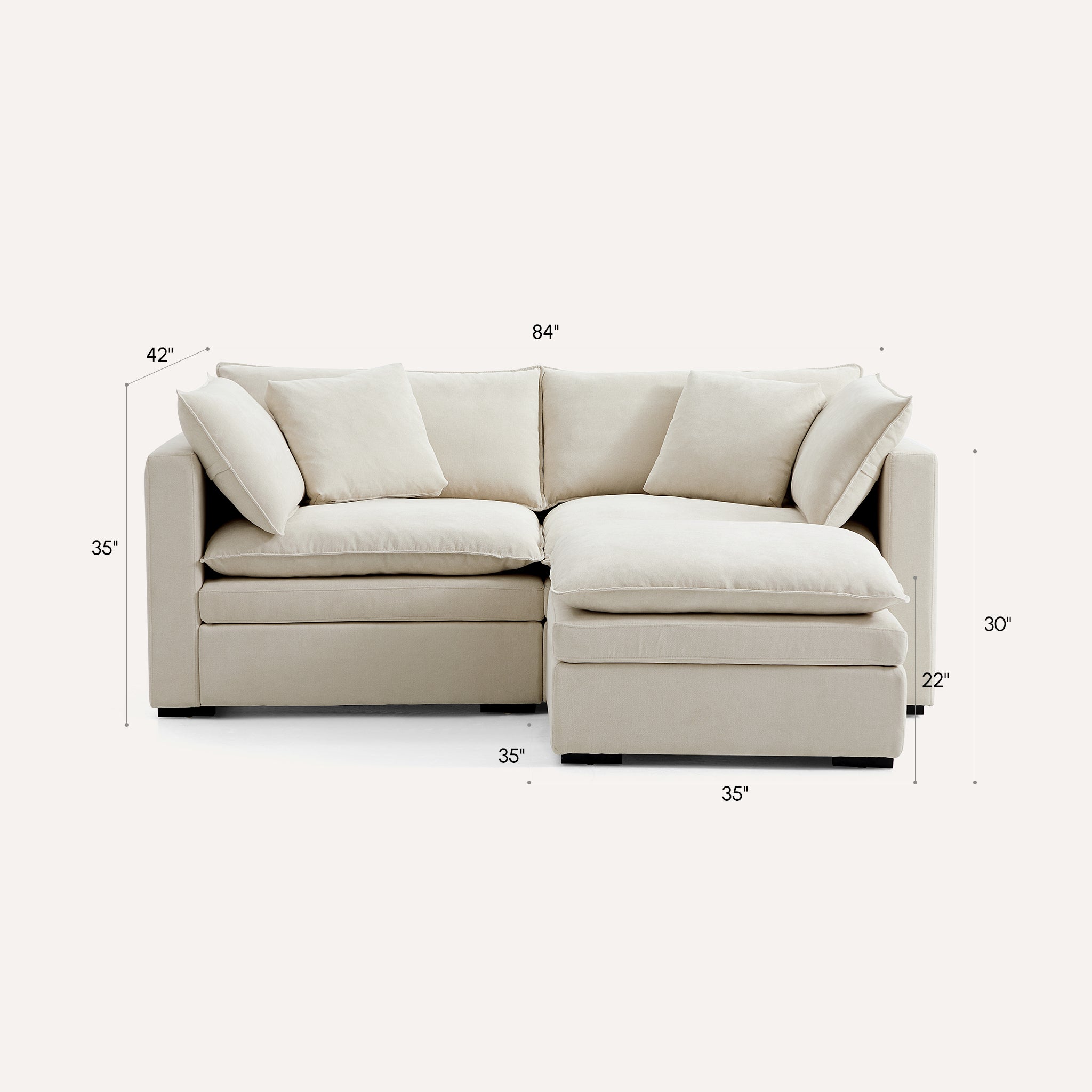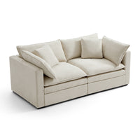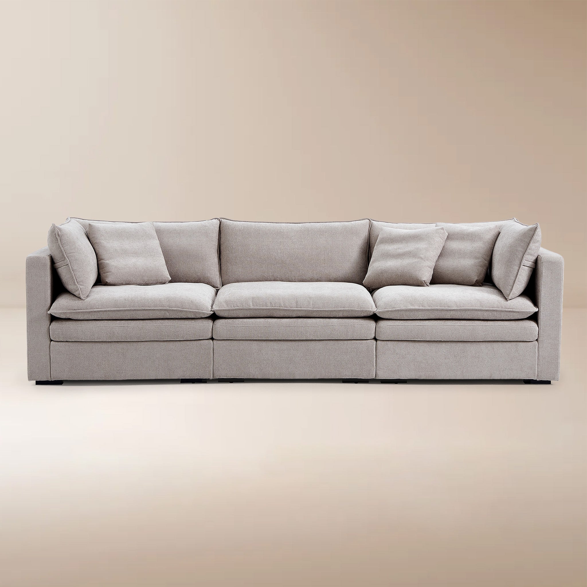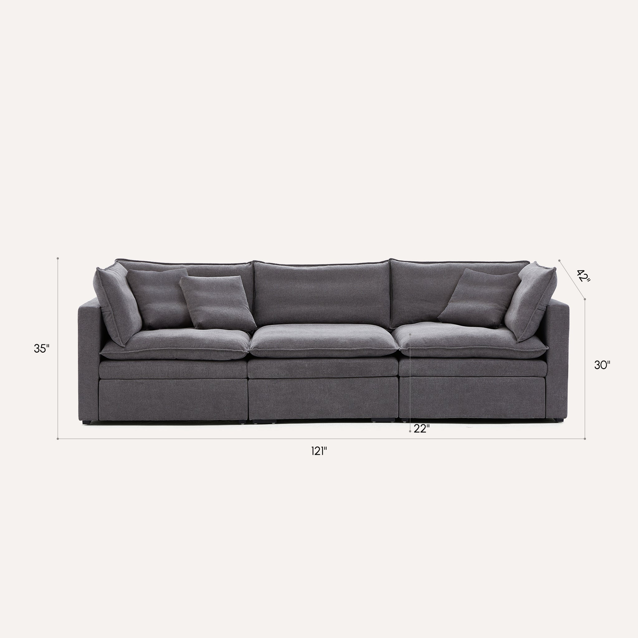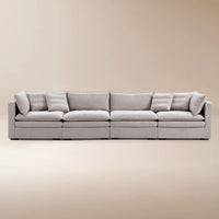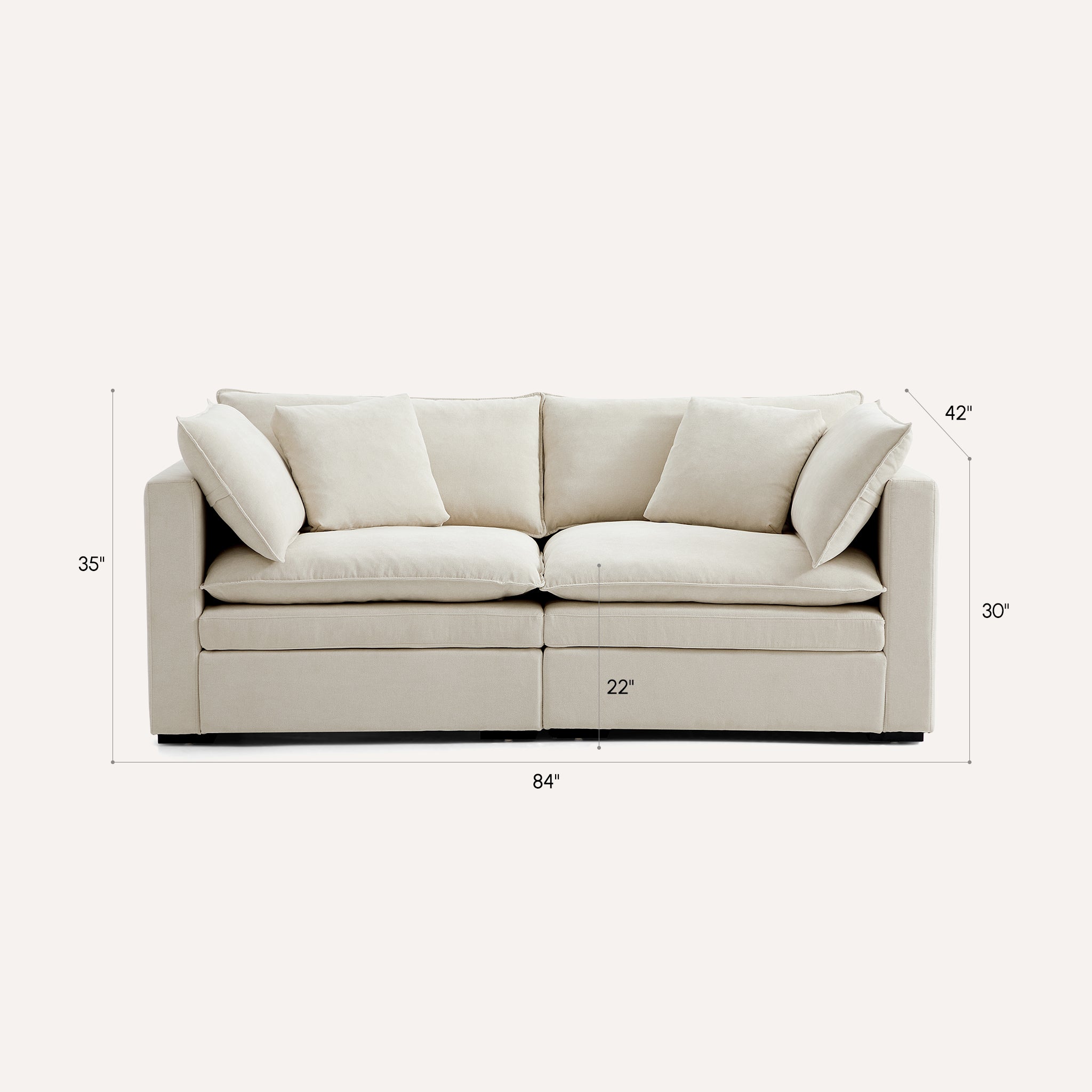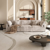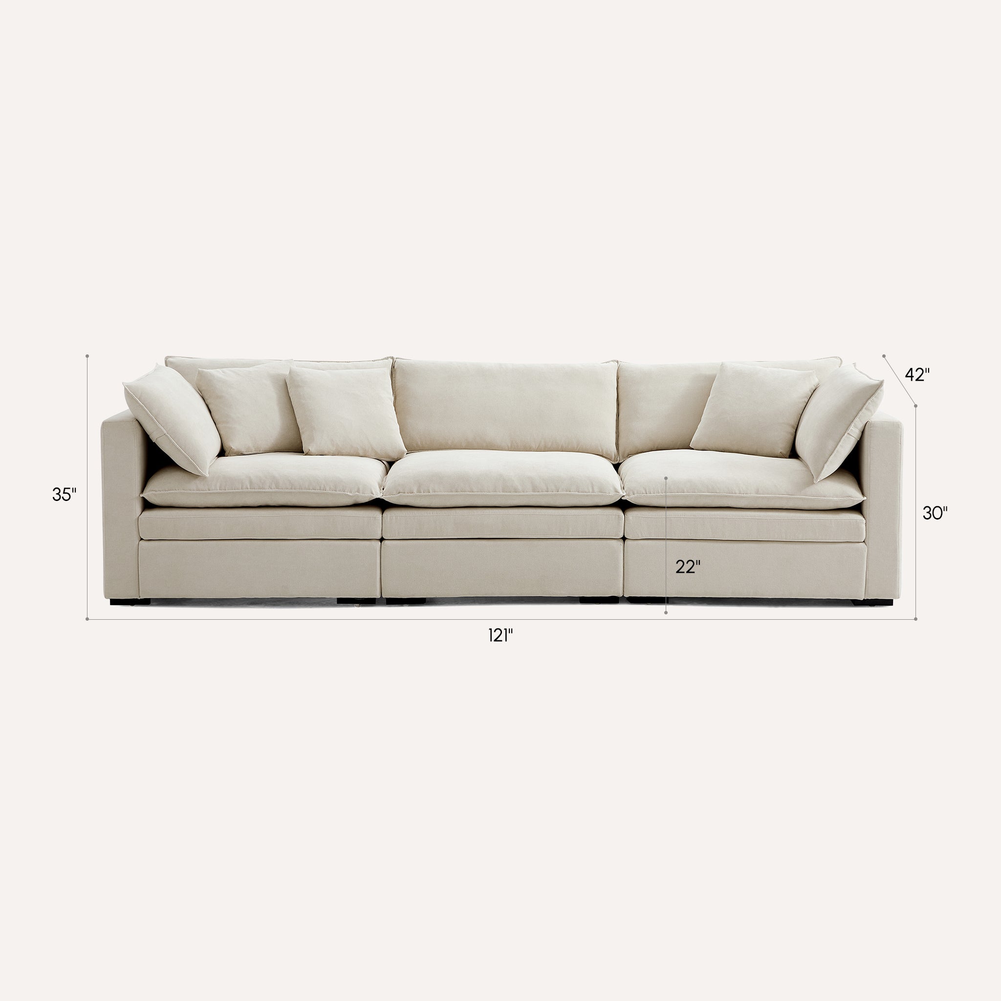 This sofa offers durable, high-resilience foam cushions and plush feather-down pillows for lasting comfort and support.