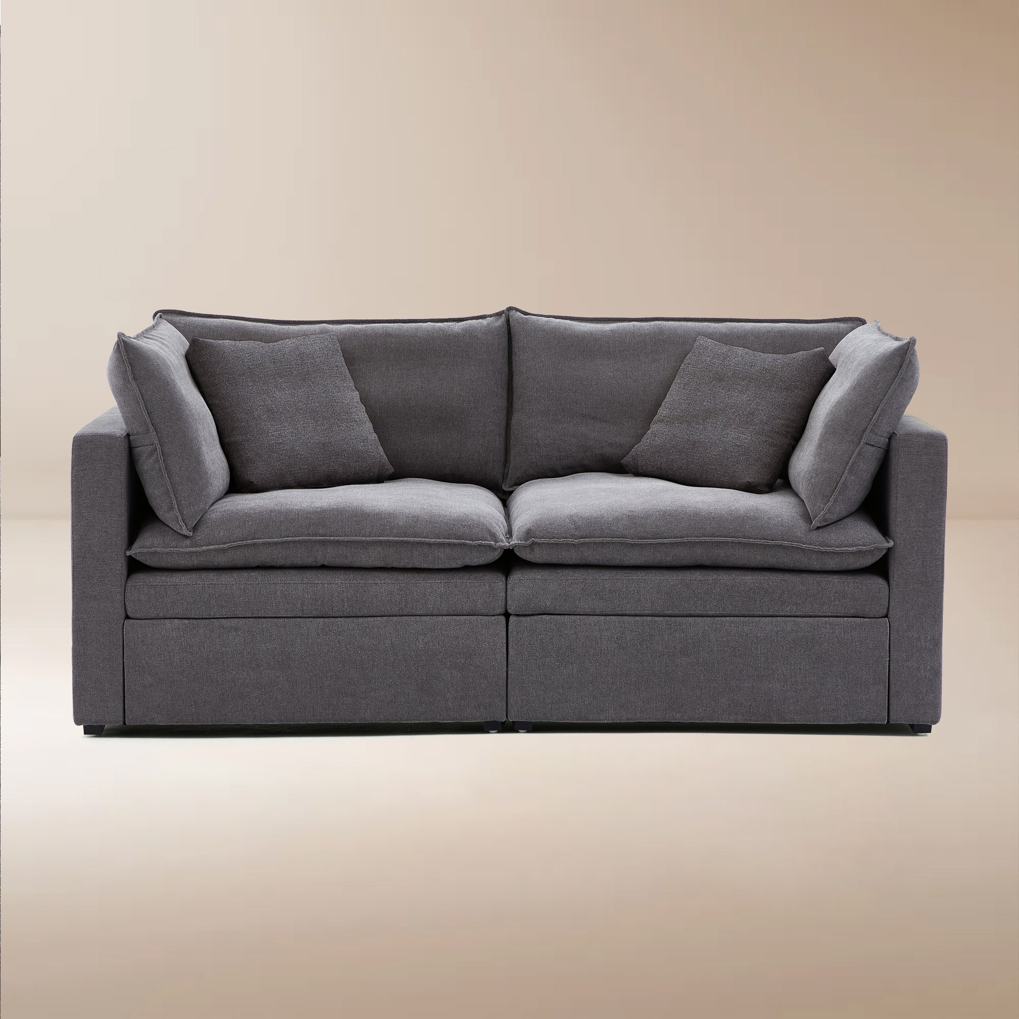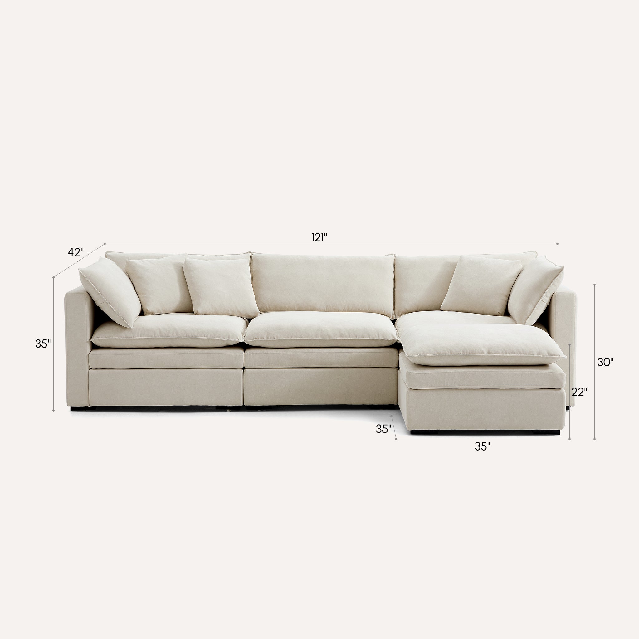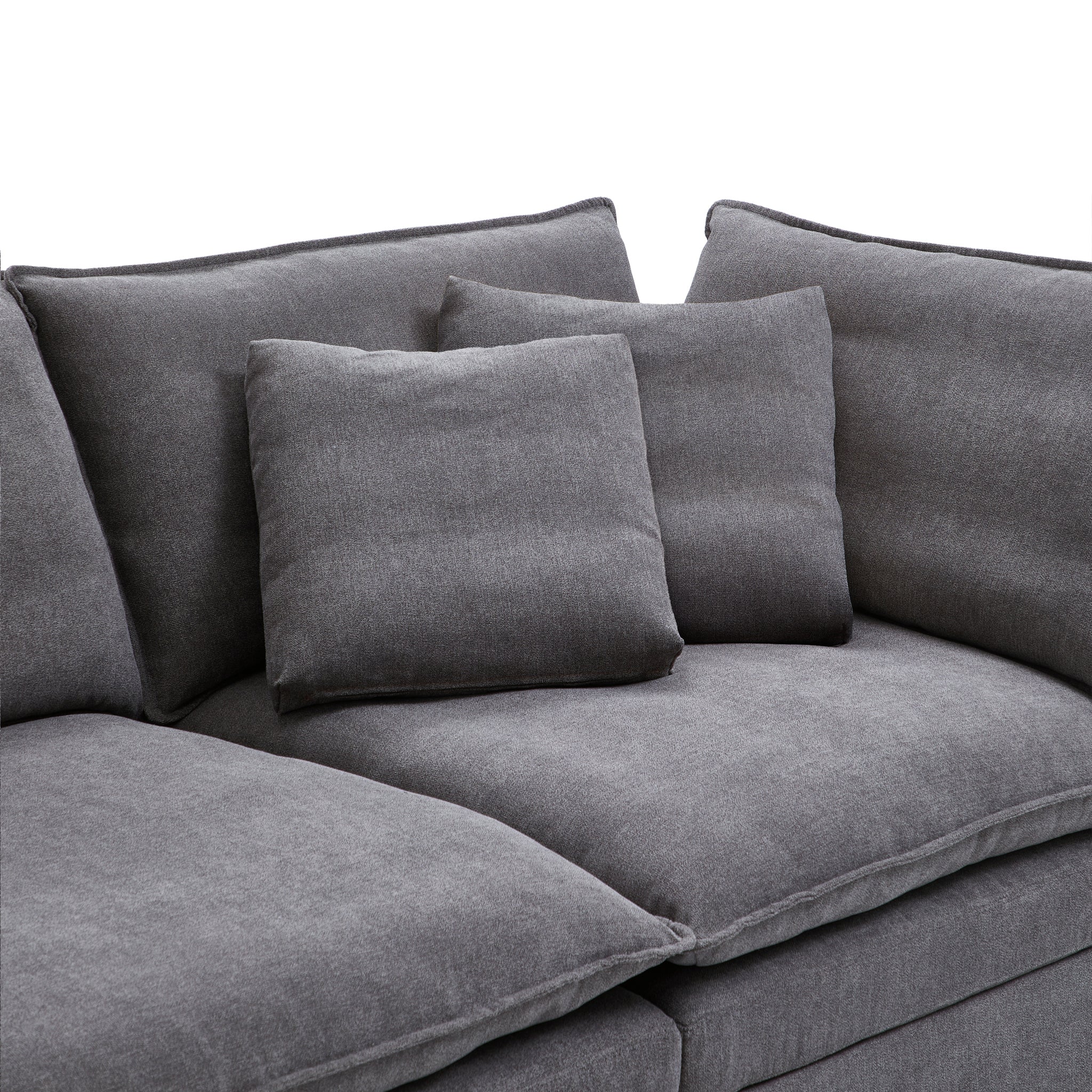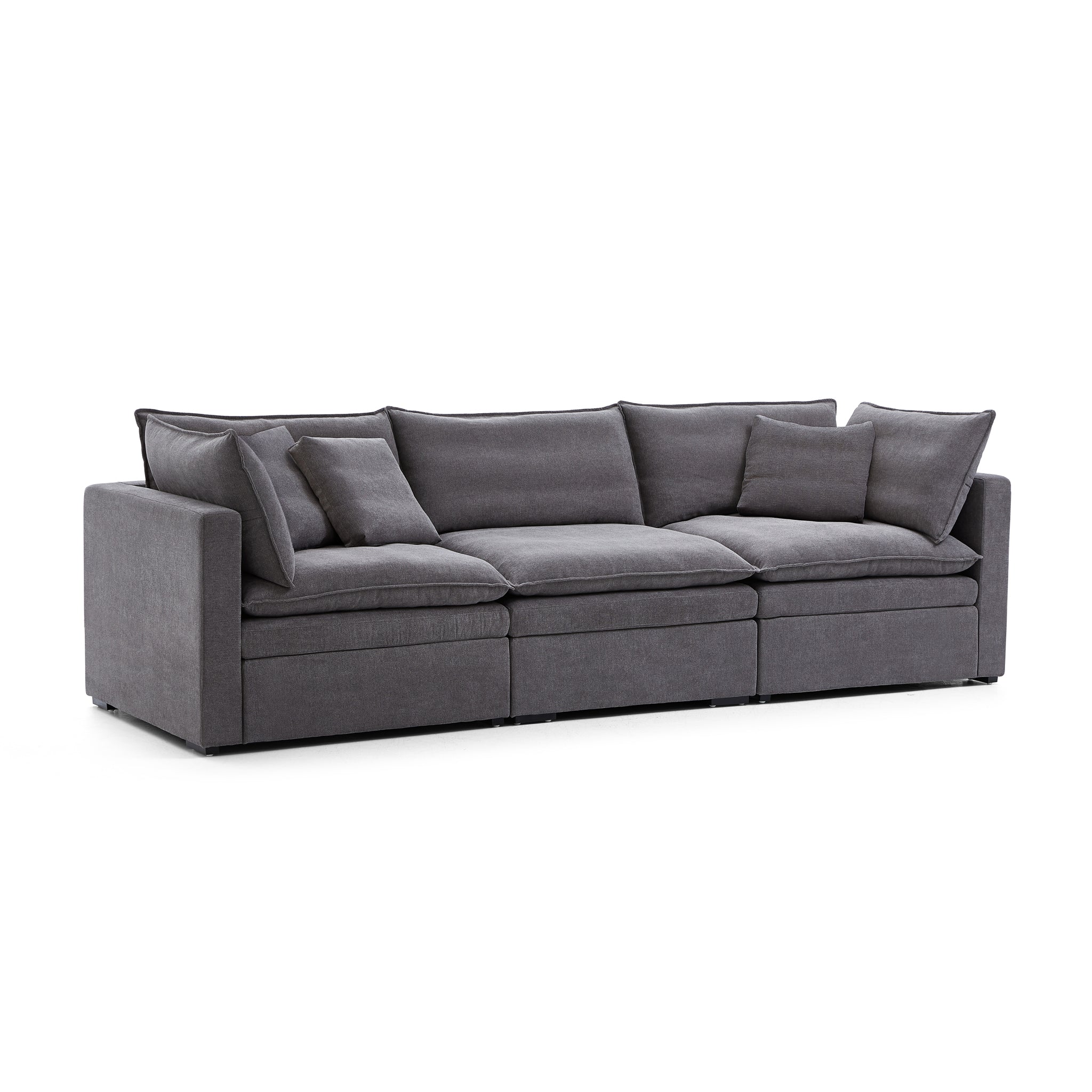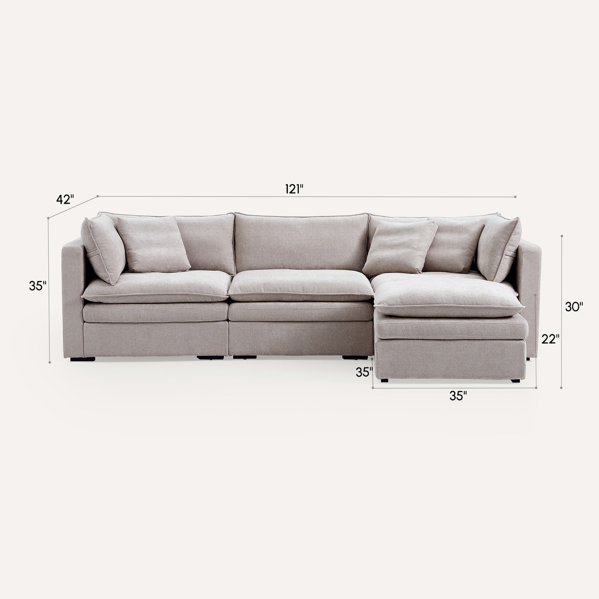 This sofa offers durable, high-resilience foam cushions and plush feather-down pillows for lasting comfort and support.