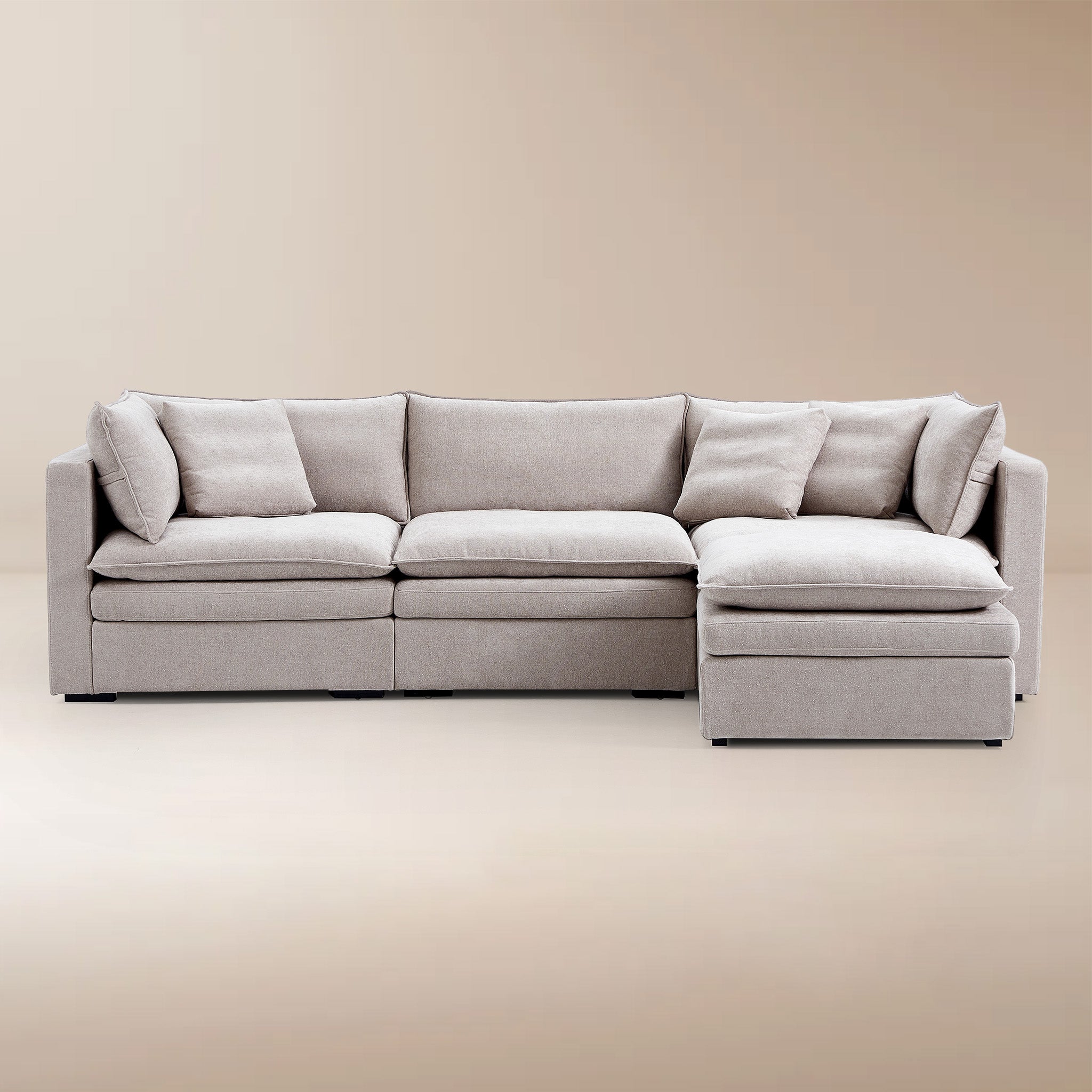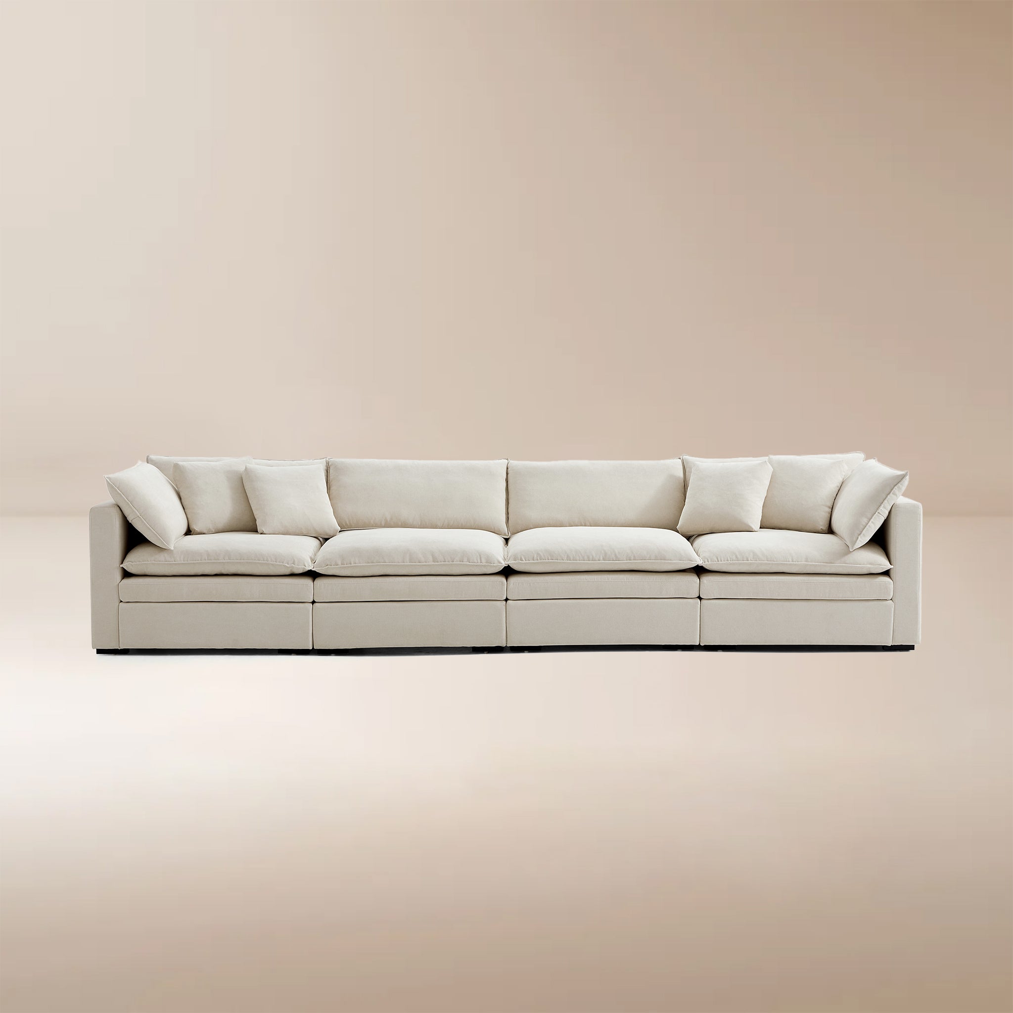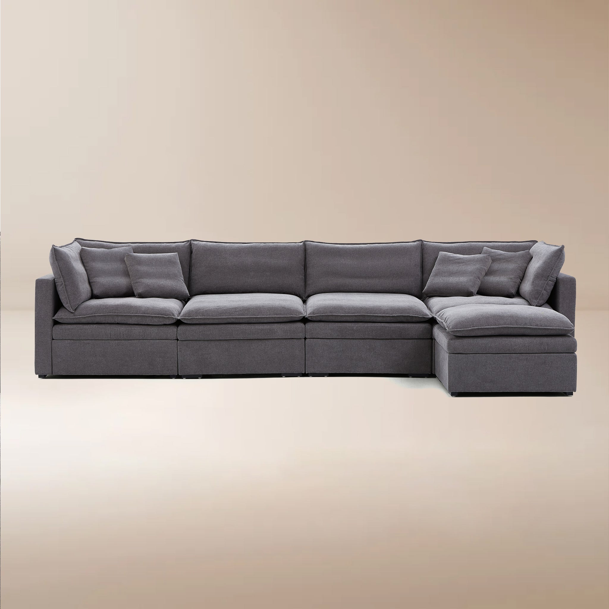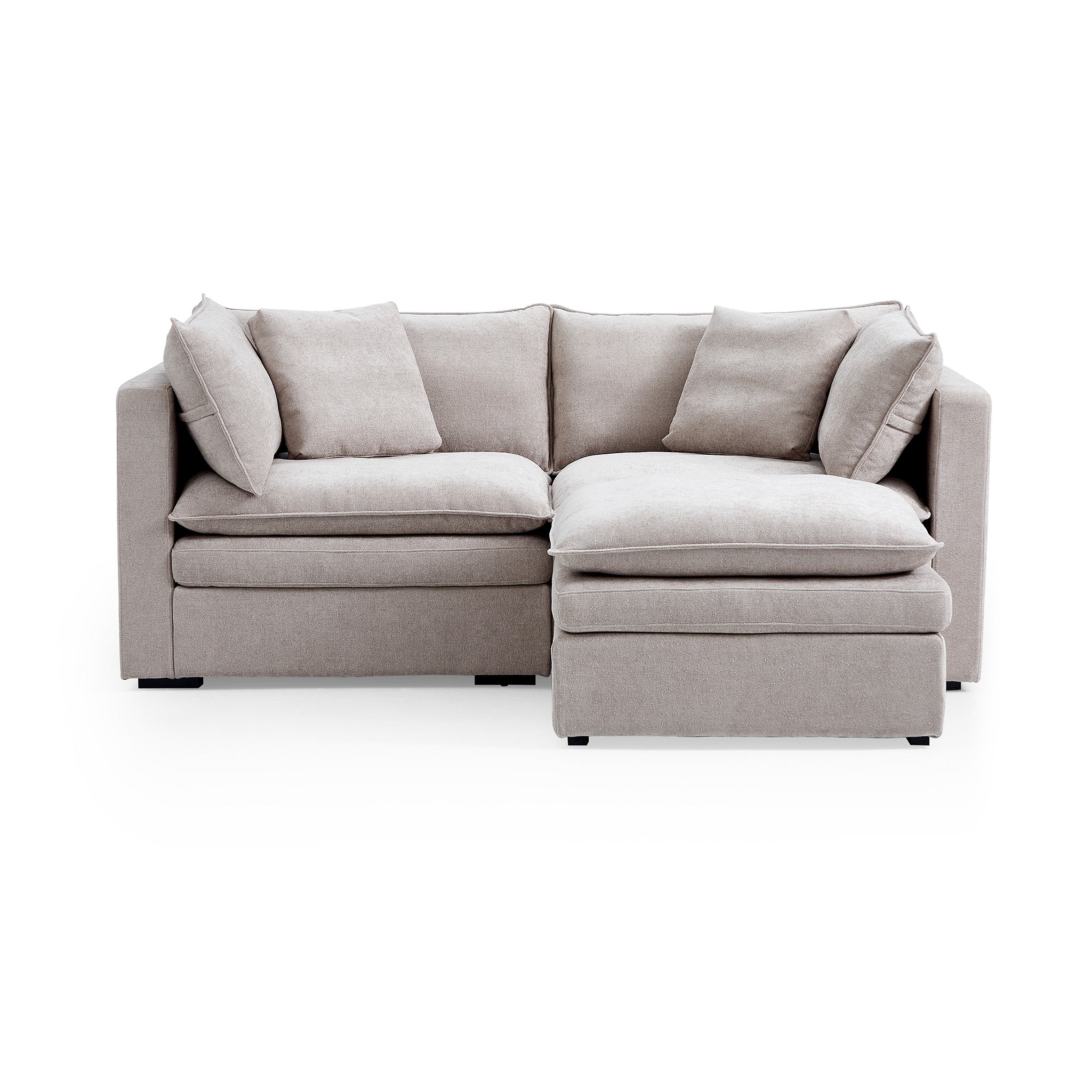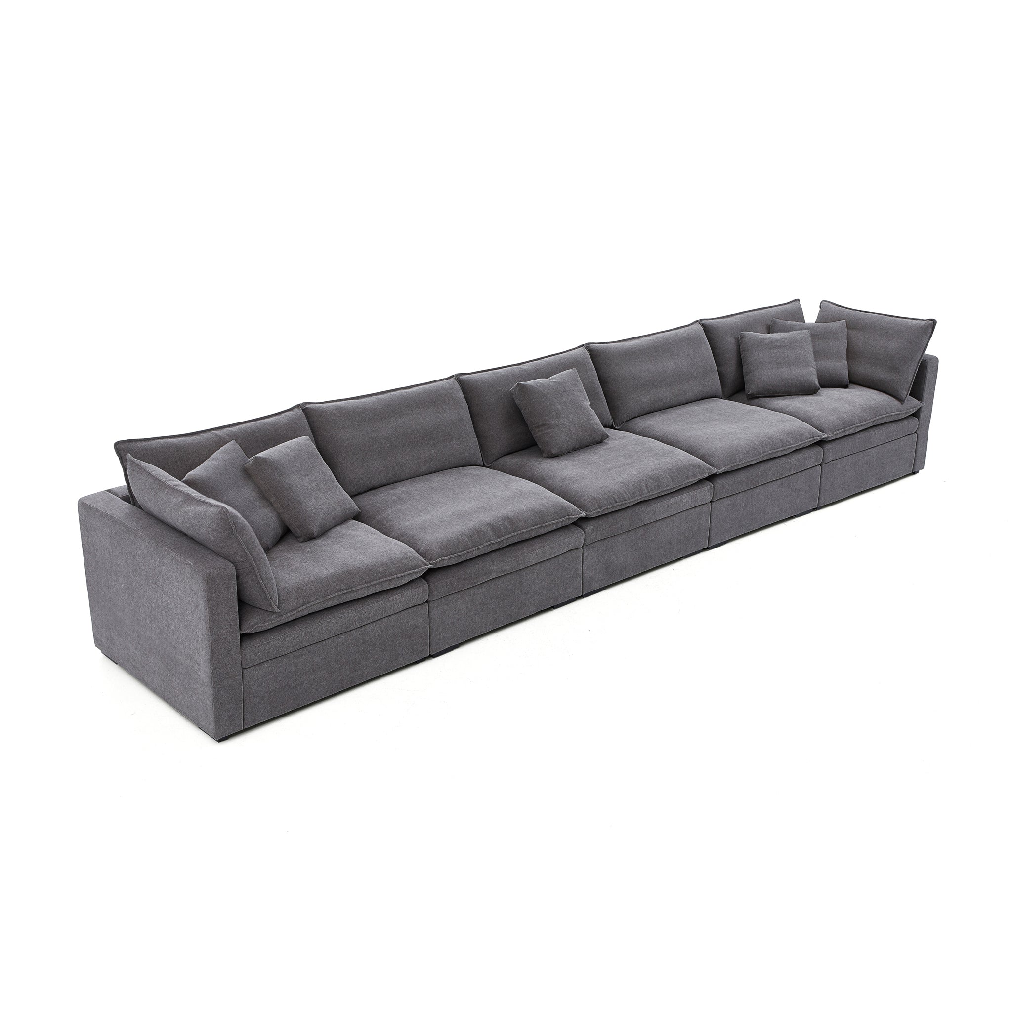 This sofa offers durable, high-resilience foam cushions and plush feather-down pillows for lasting comfort and support.