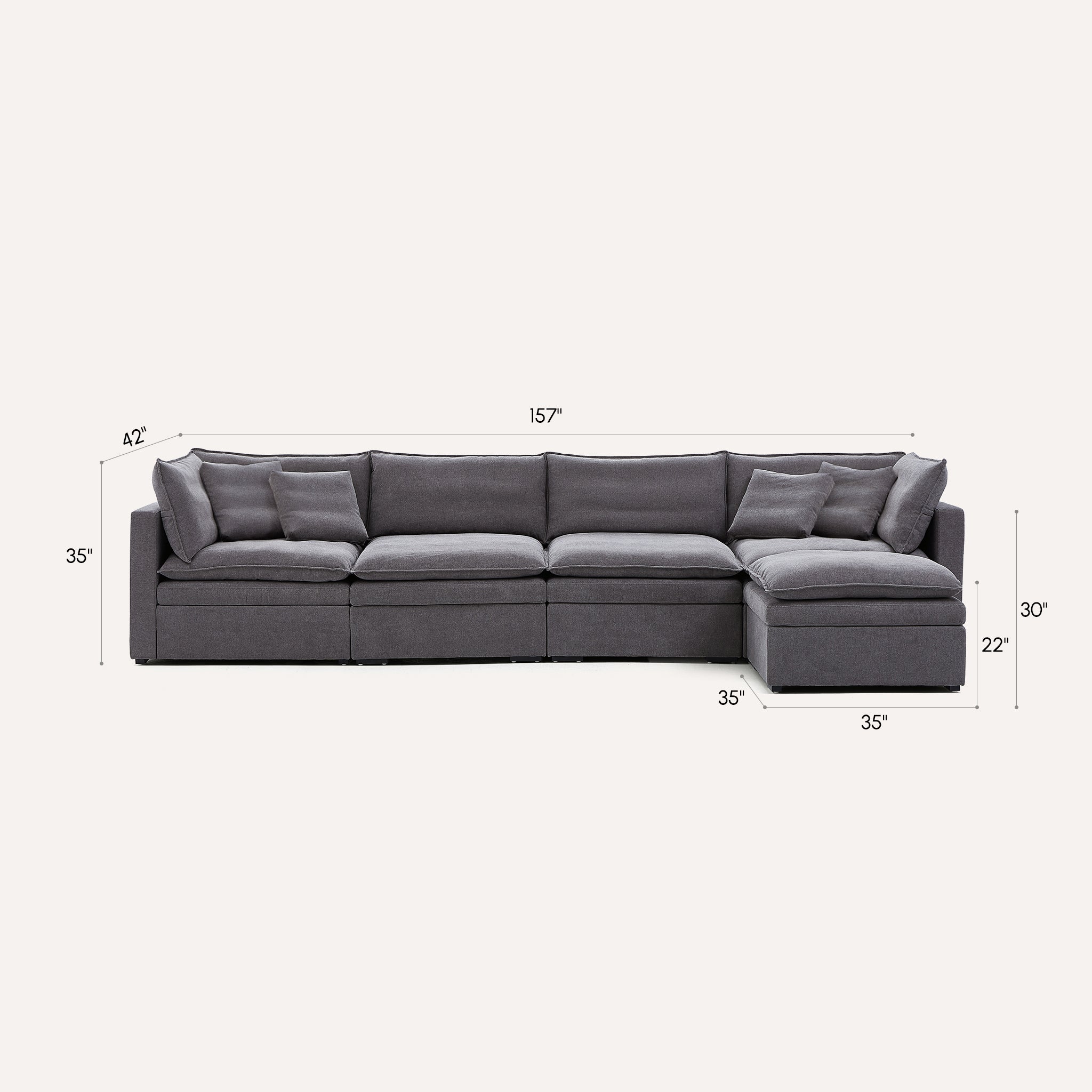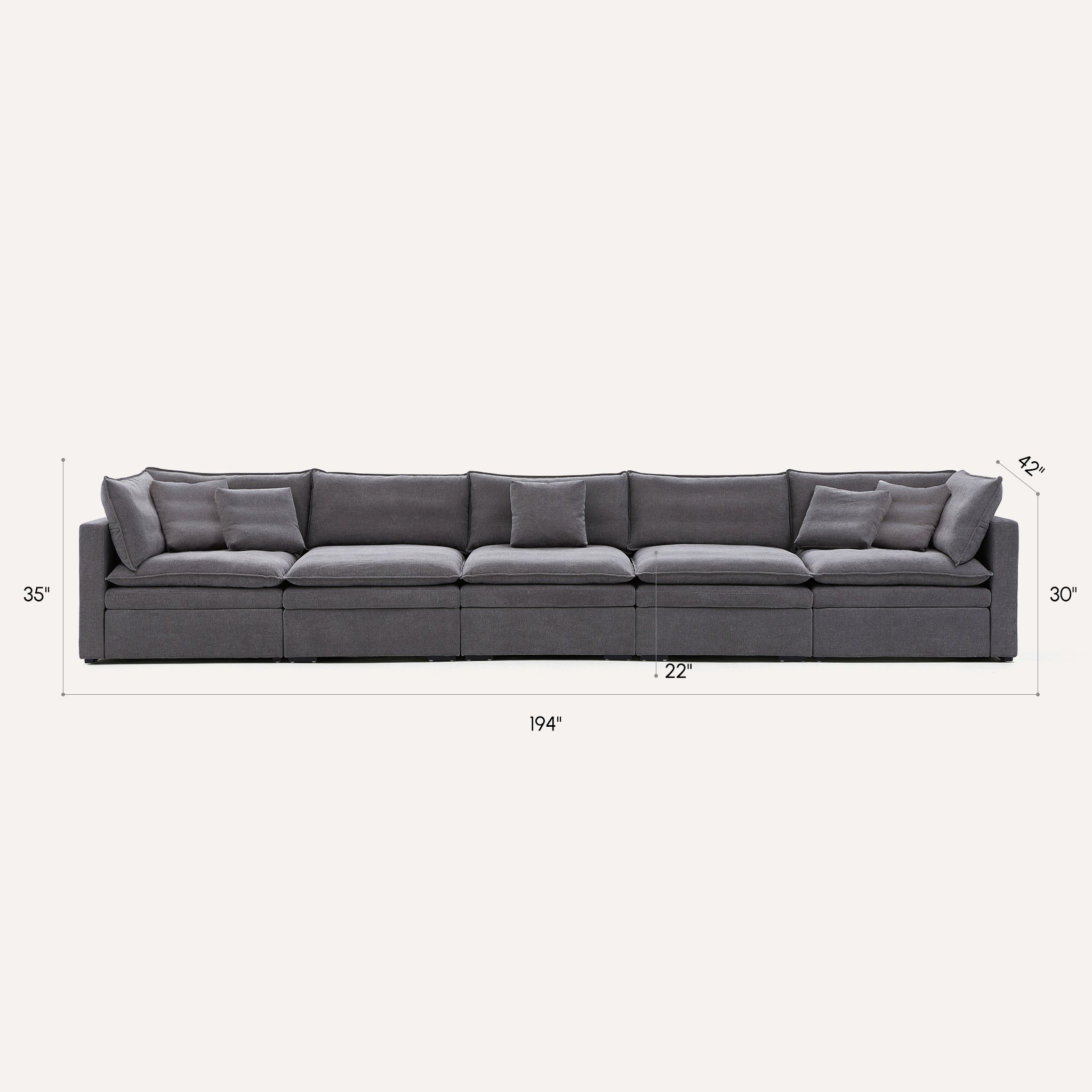 Experience ultimate comfort with the Burger Modular Sofa, featuring a spacious 36-inch seat depth for luxurious lounging and relaxation.