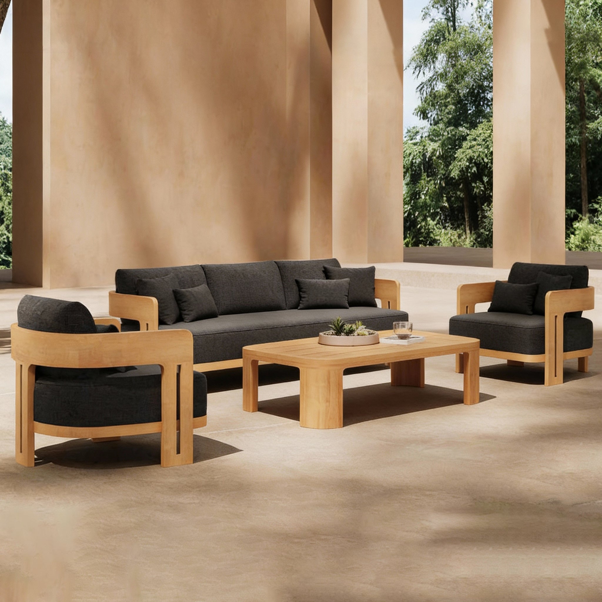 Rooted in Nordic design philosophy, this piece embraces simplicity, functionality, and natural materials. The rich teak surface pairs seamlessly with soft cushioning and durable outdoor fabric, offering a relaxed yet sophisticated dining experience in any outdoor setting.