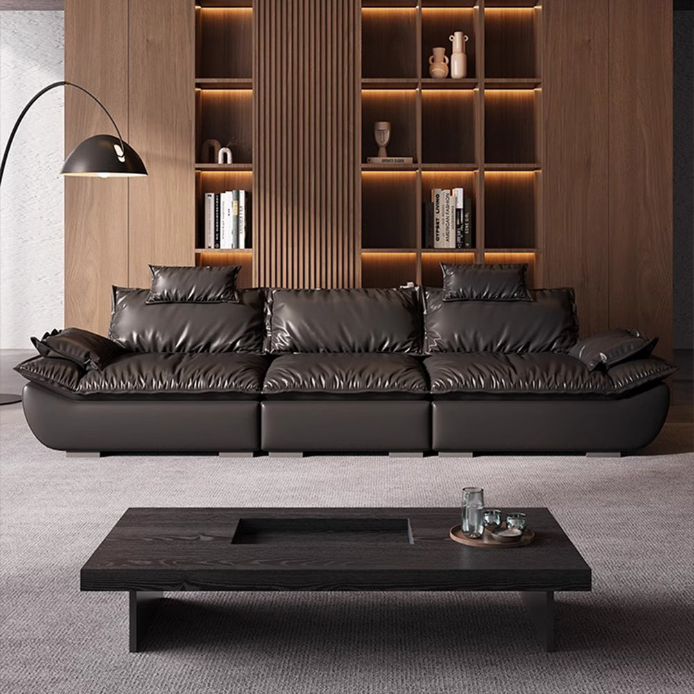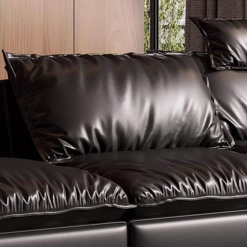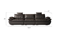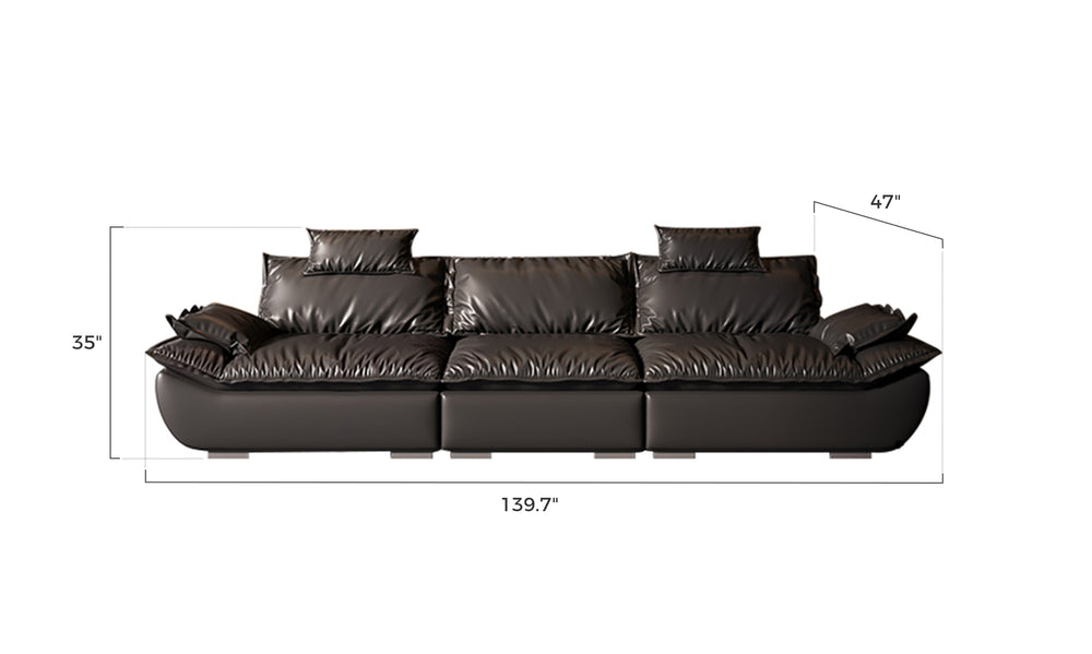 • Sailboat Extra Deep Seat Leather Sofa with Adjustable BackrestBeige / 139.76 inch