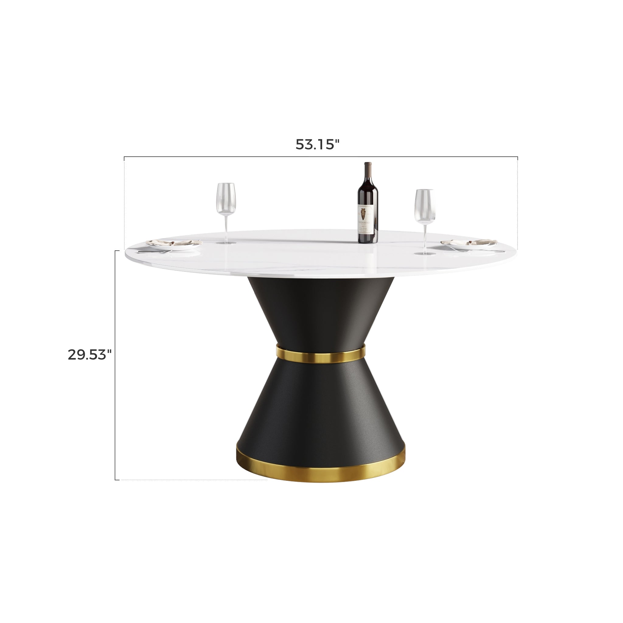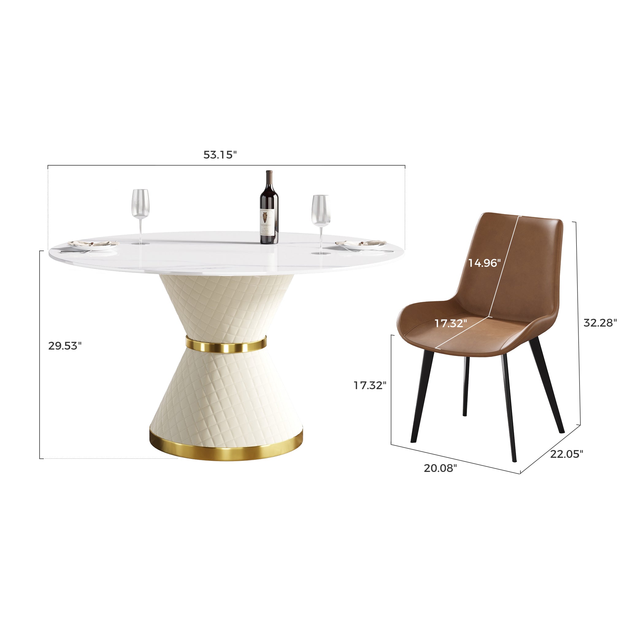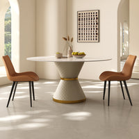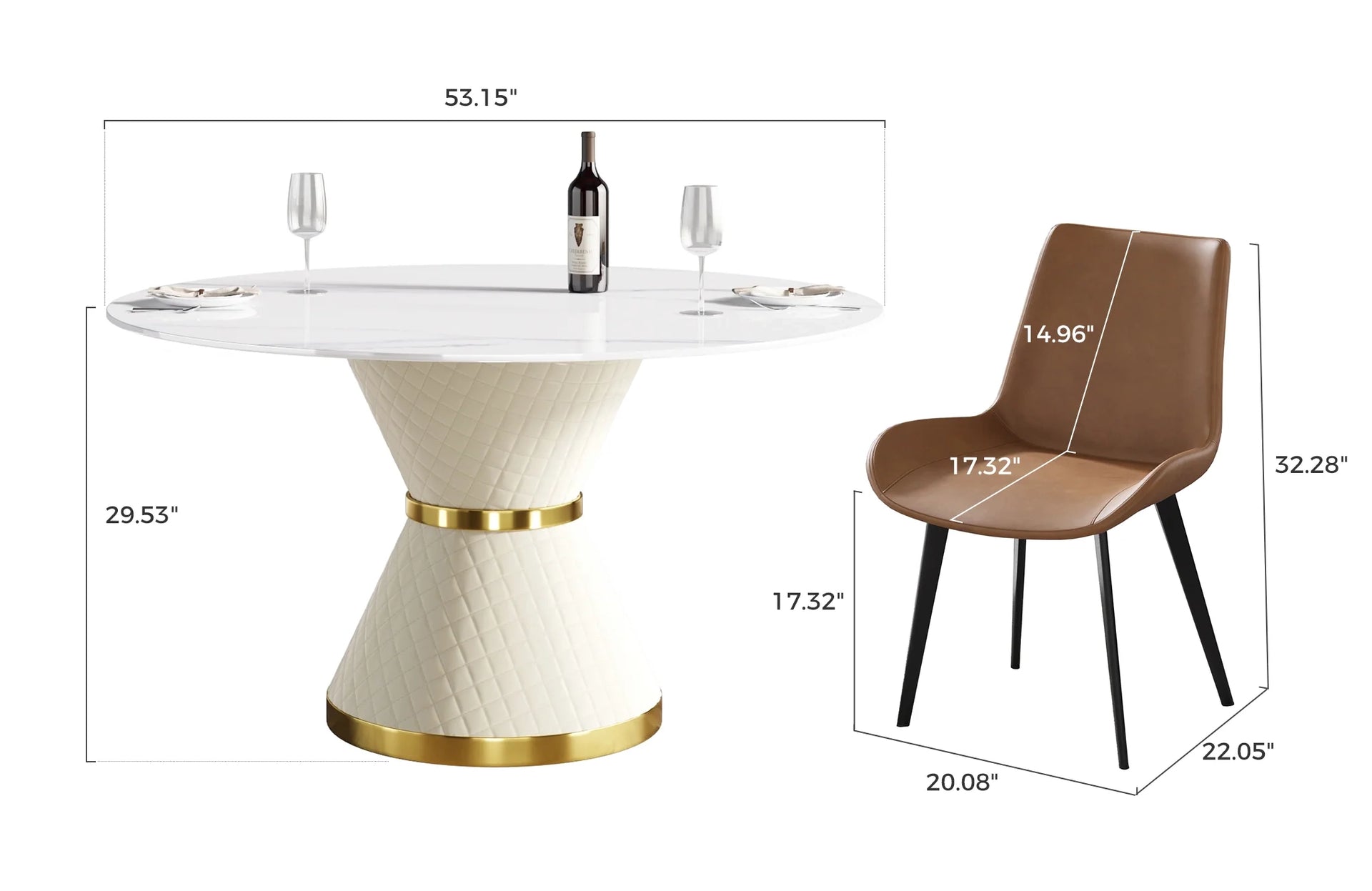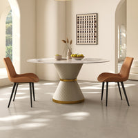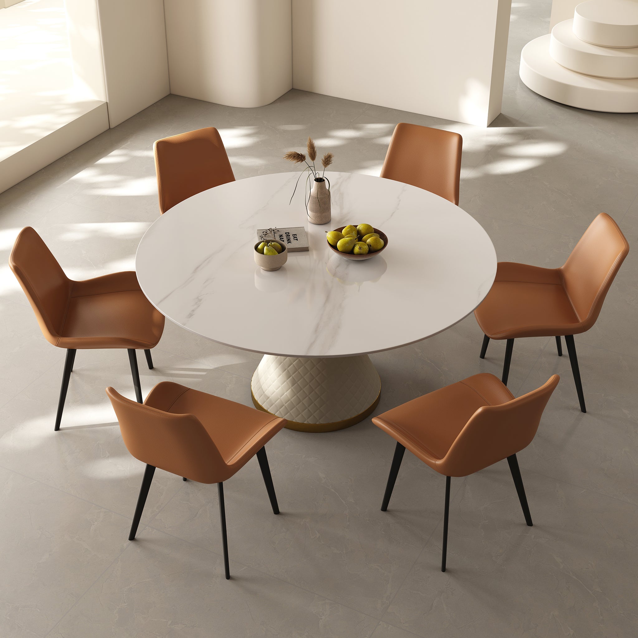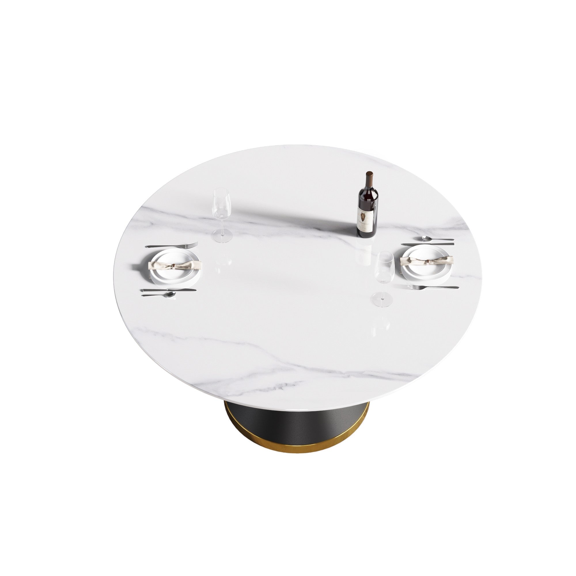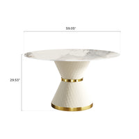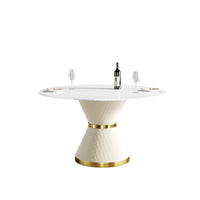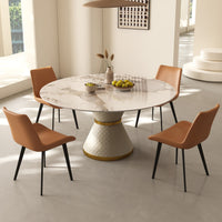 • Minimalist Round White Stone Dining Table – White Textured Wood Base, Seats 6White / White / 53" Table