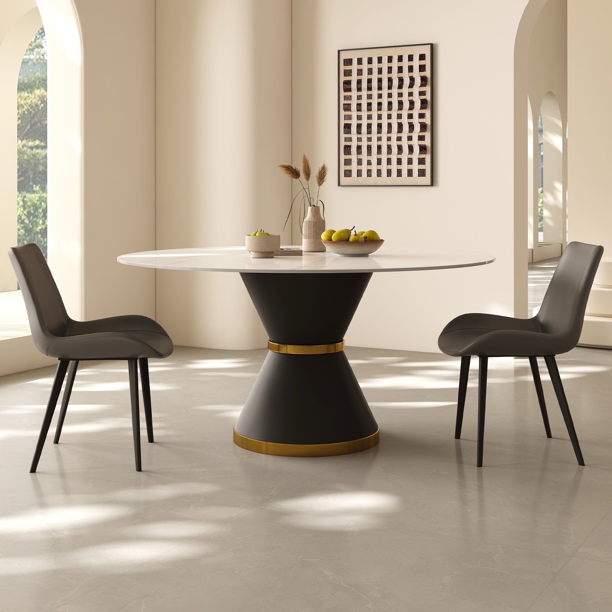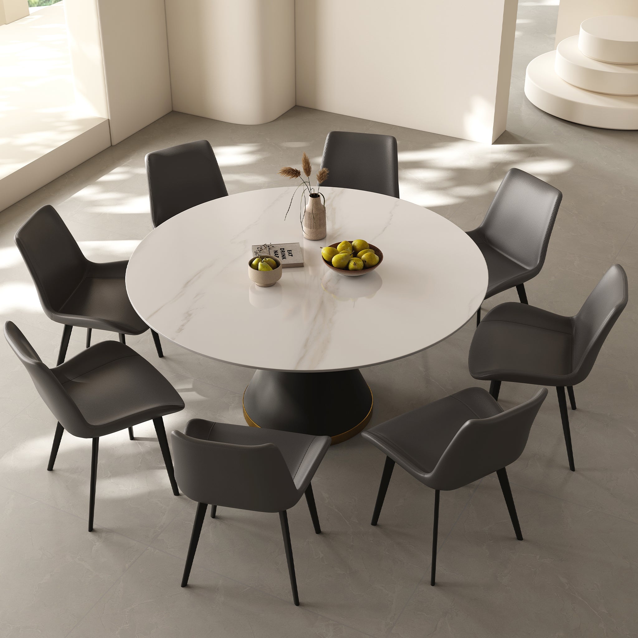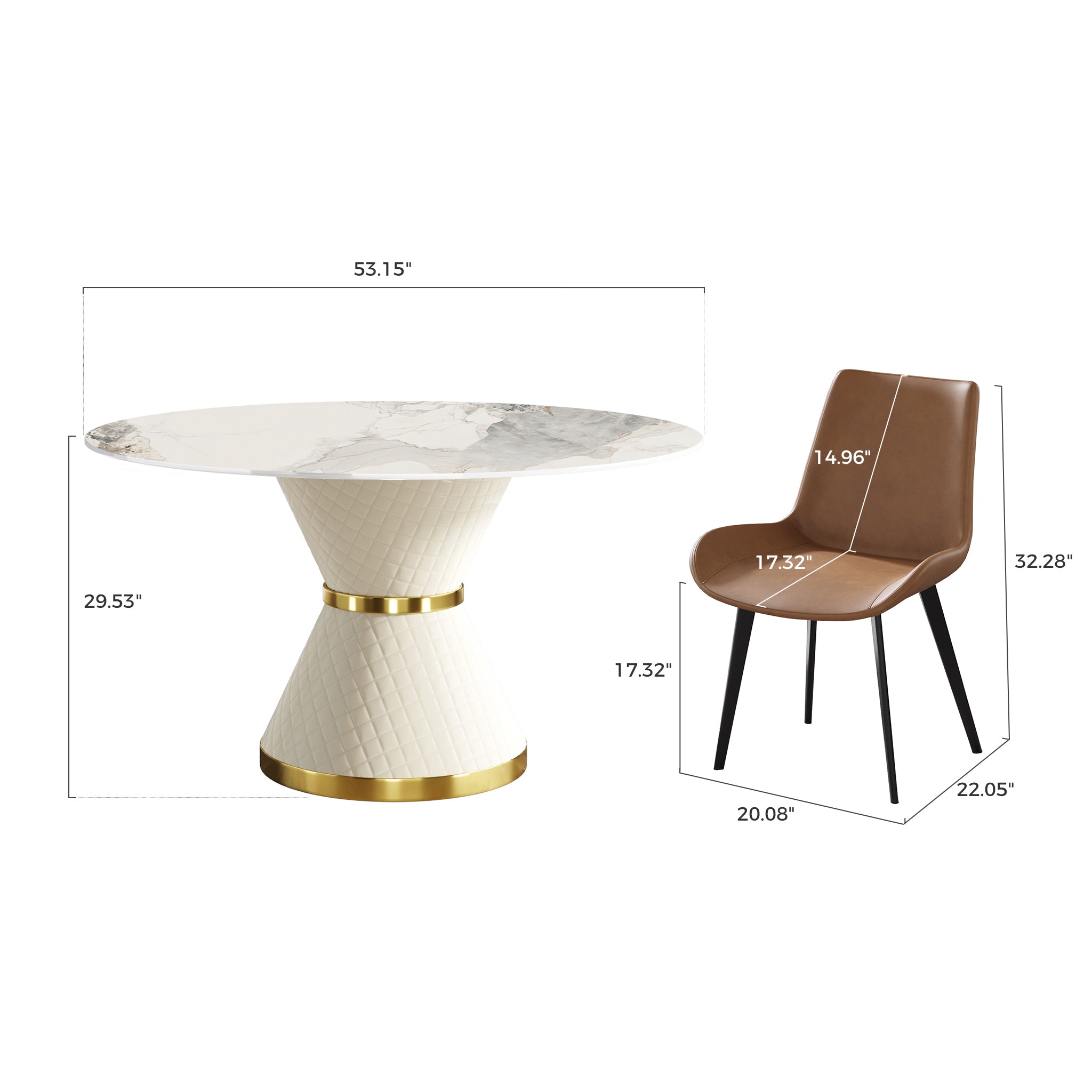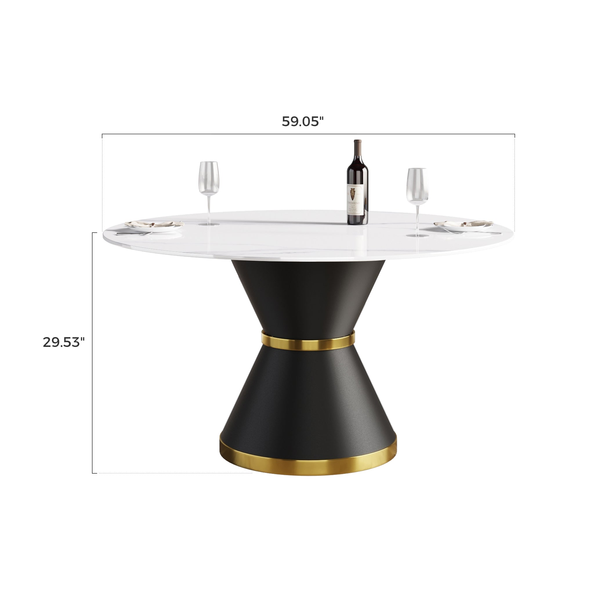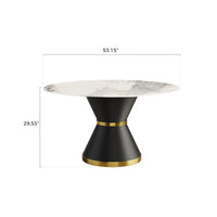 • Minimalist Round White Stone Dining Table – White Textured Wood Base, Seats 6White / White / 53" Table