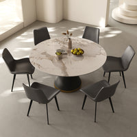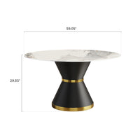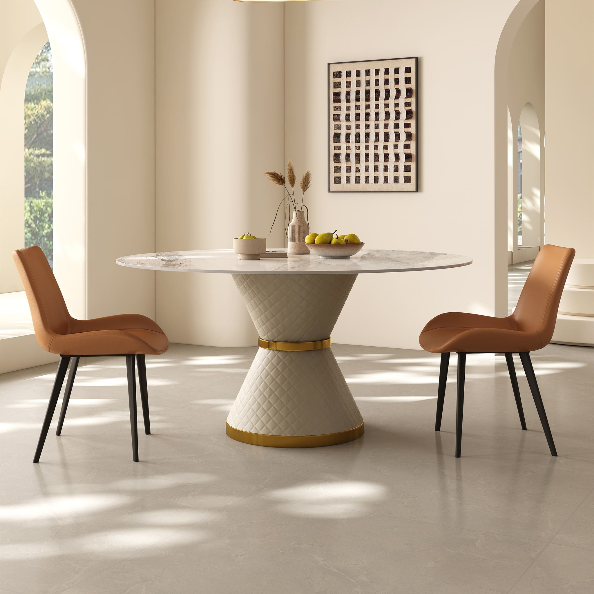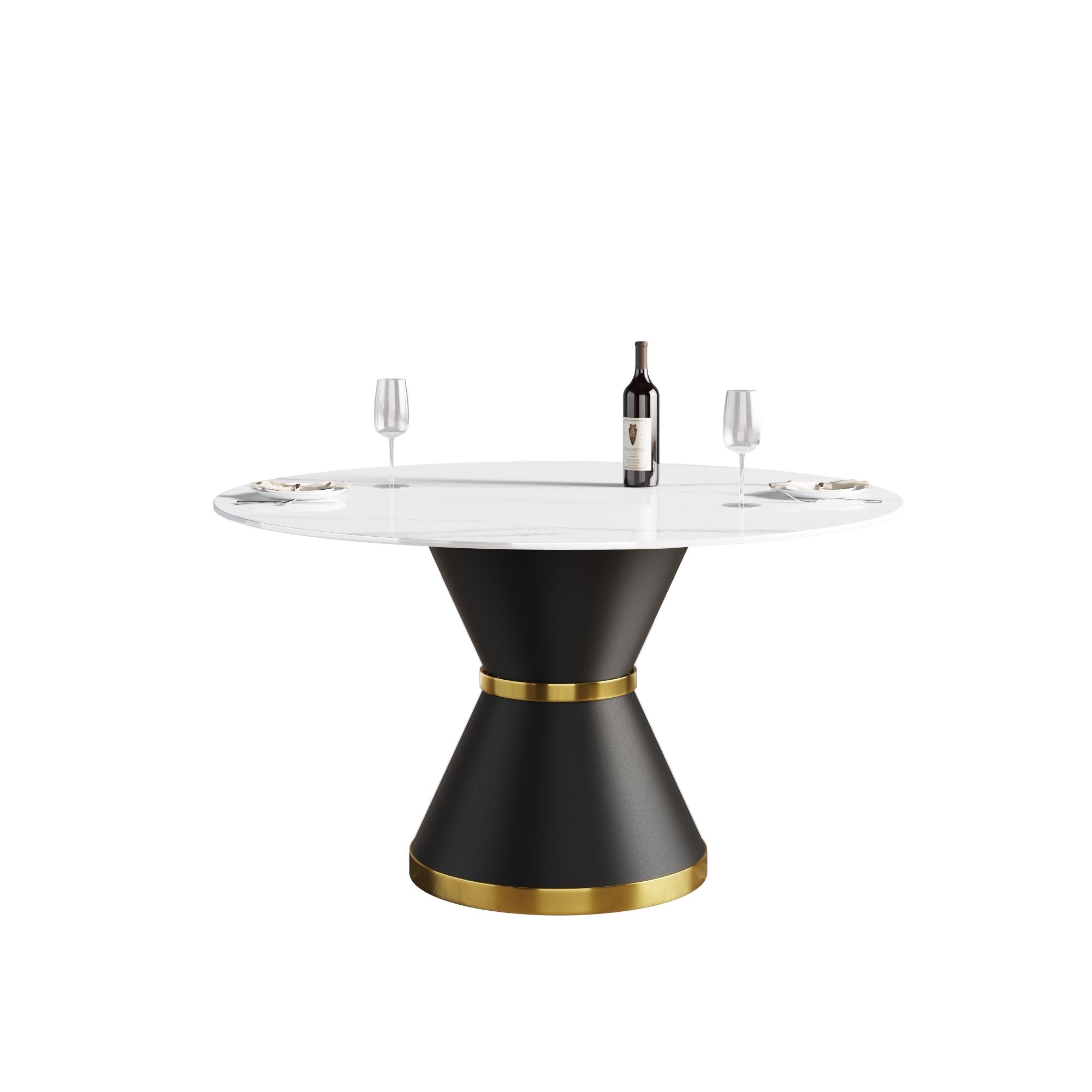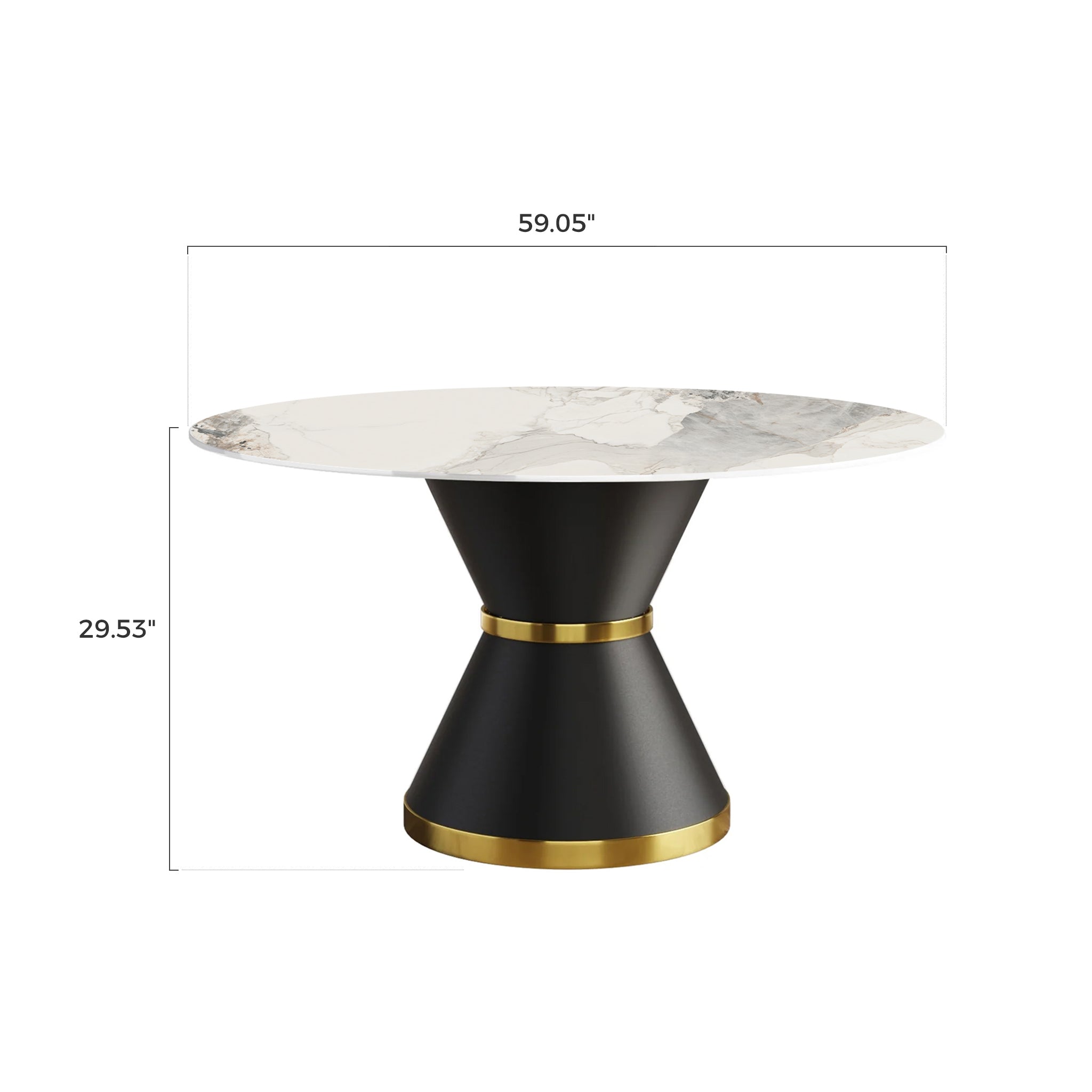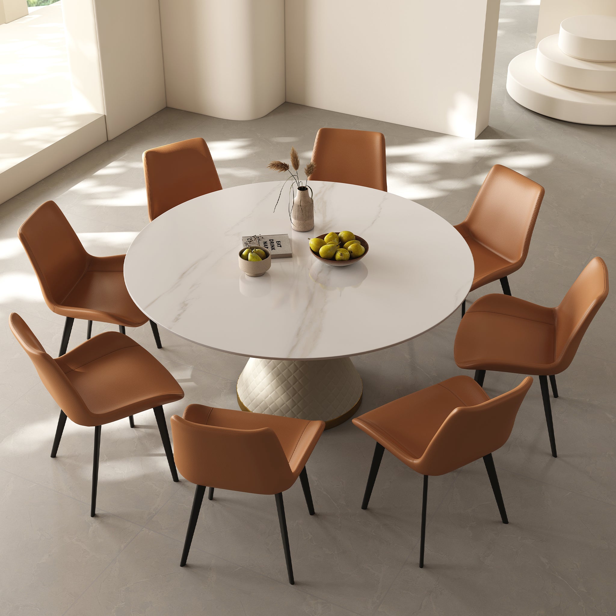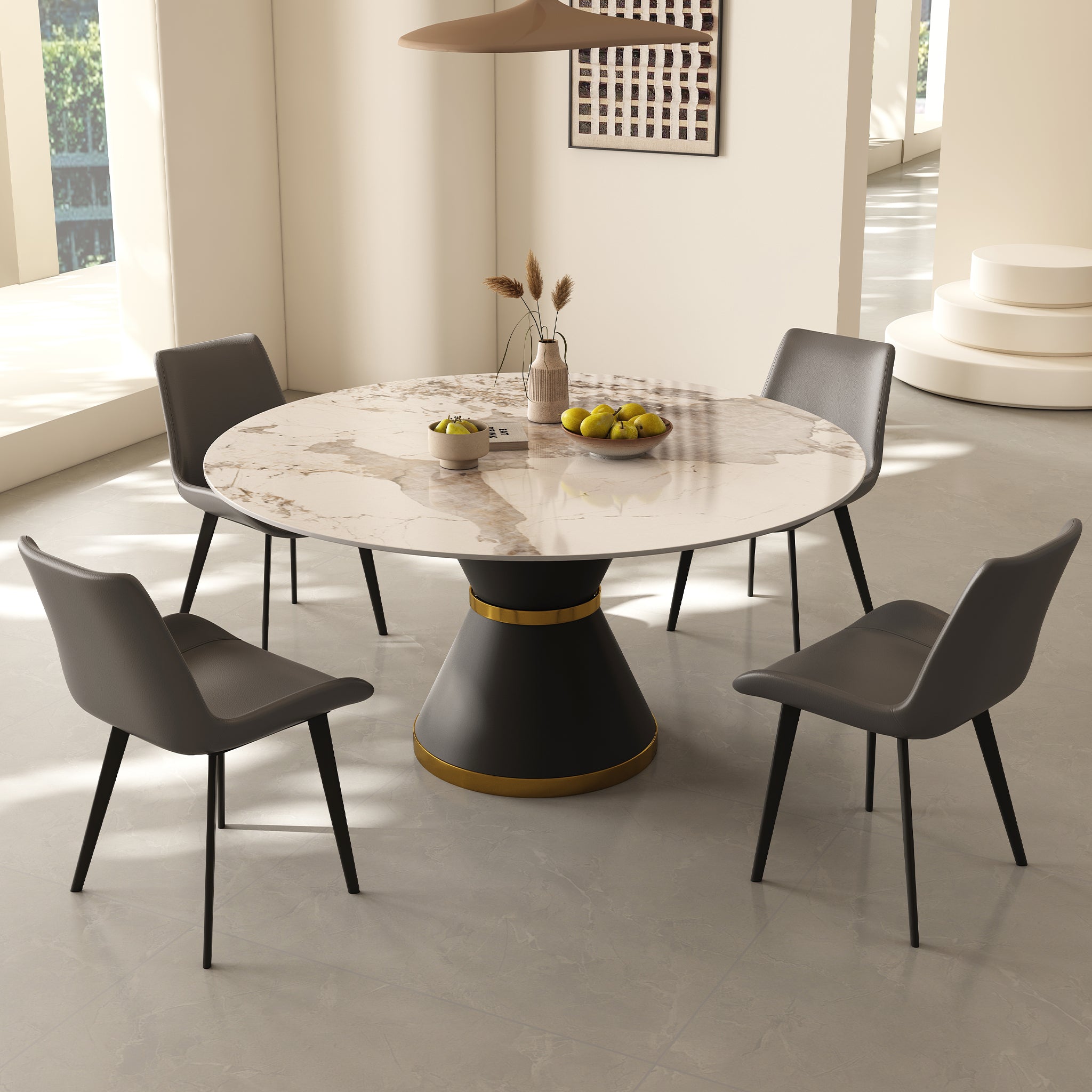 • Minimalist Round White Stone Dining Table – White Textured Wood Base, Seats 6White / White / 53" Table