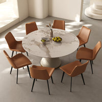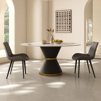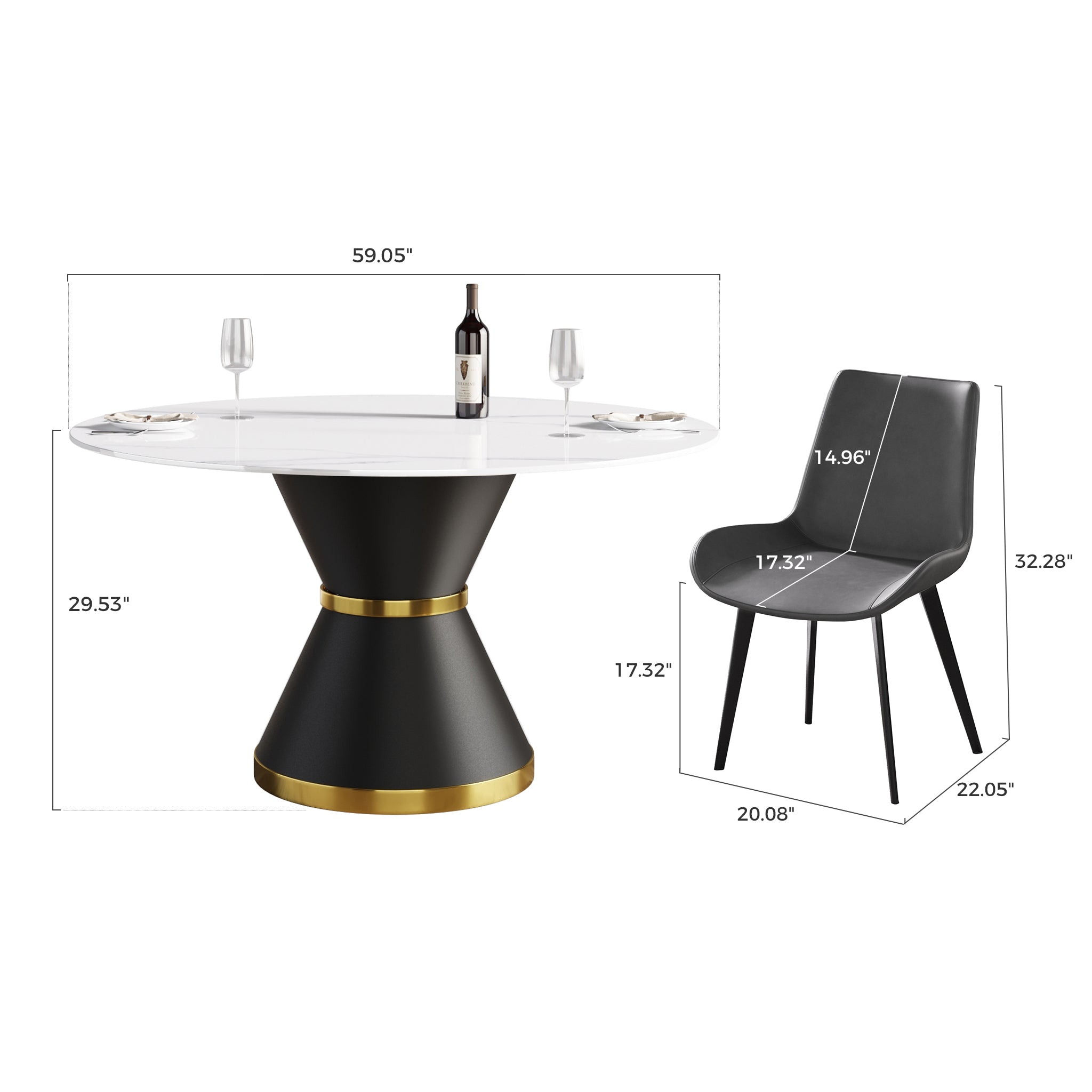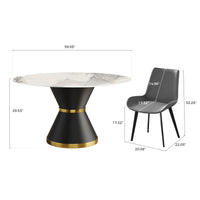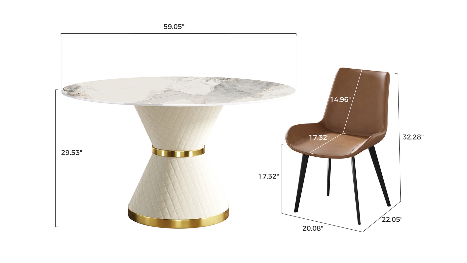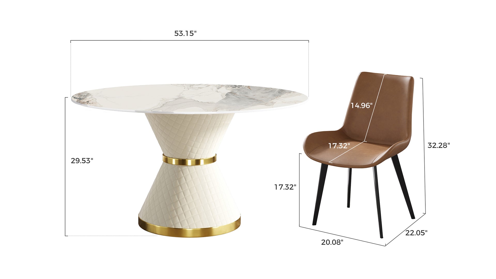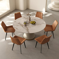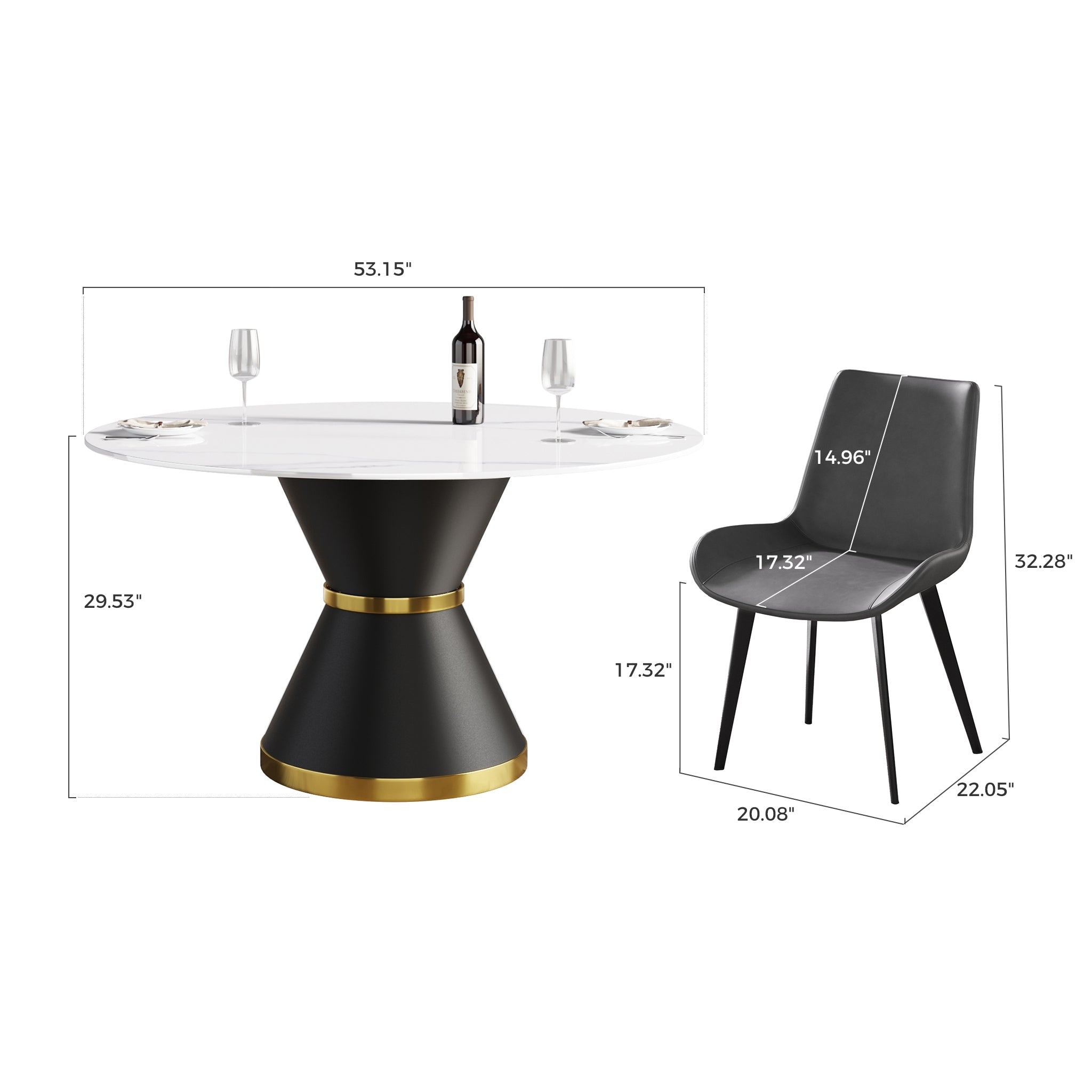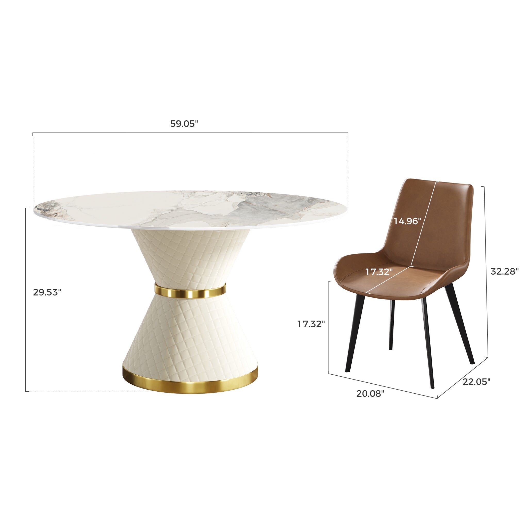 • Minimalist Round White Stone Dining Table – White Textured Wood Base, Seats 6White / White / 53" Table