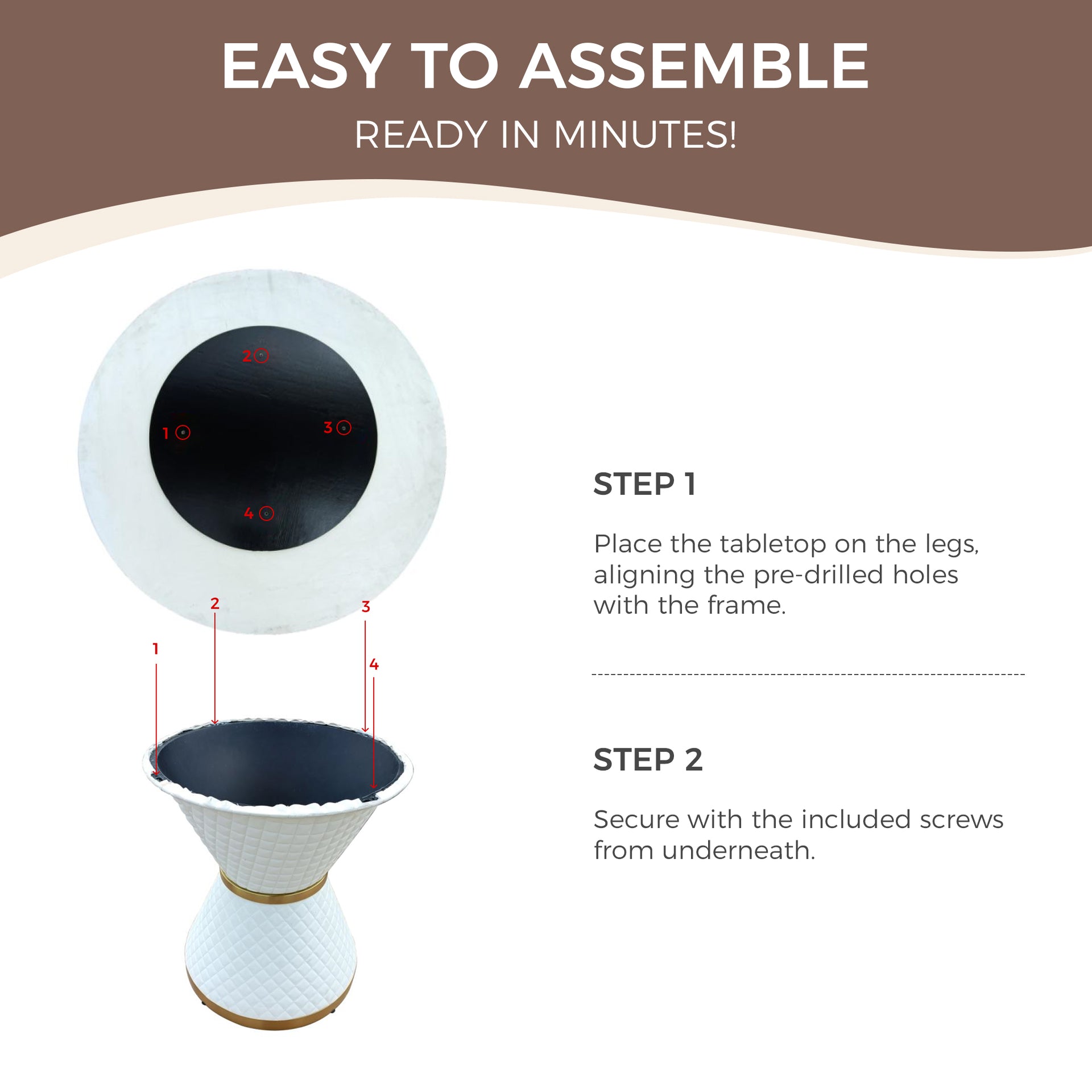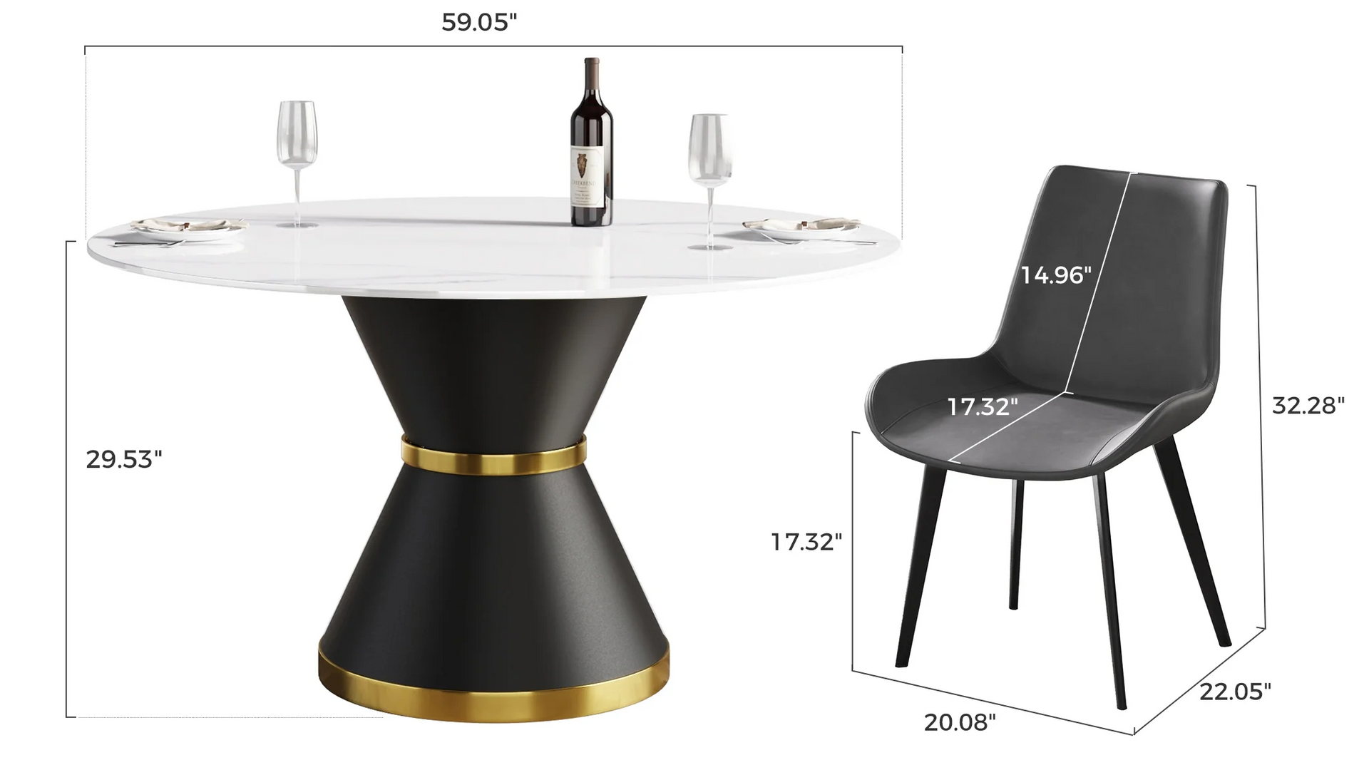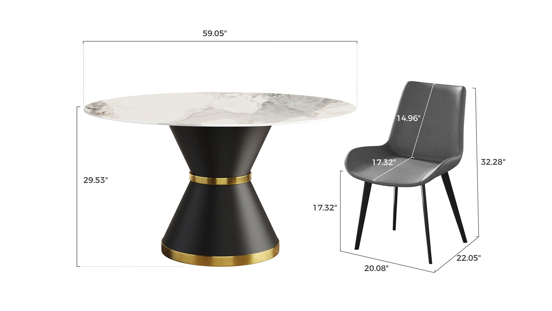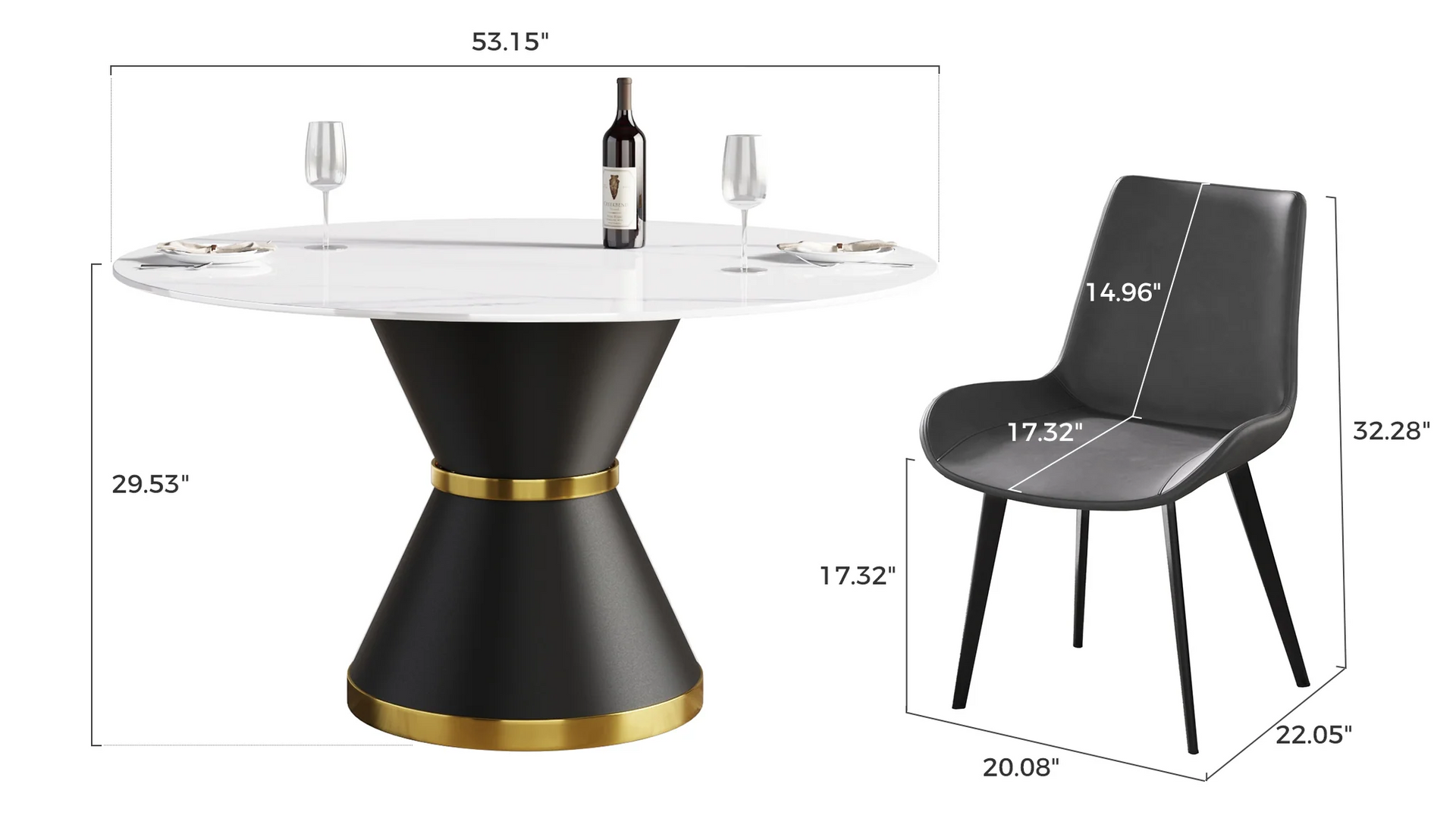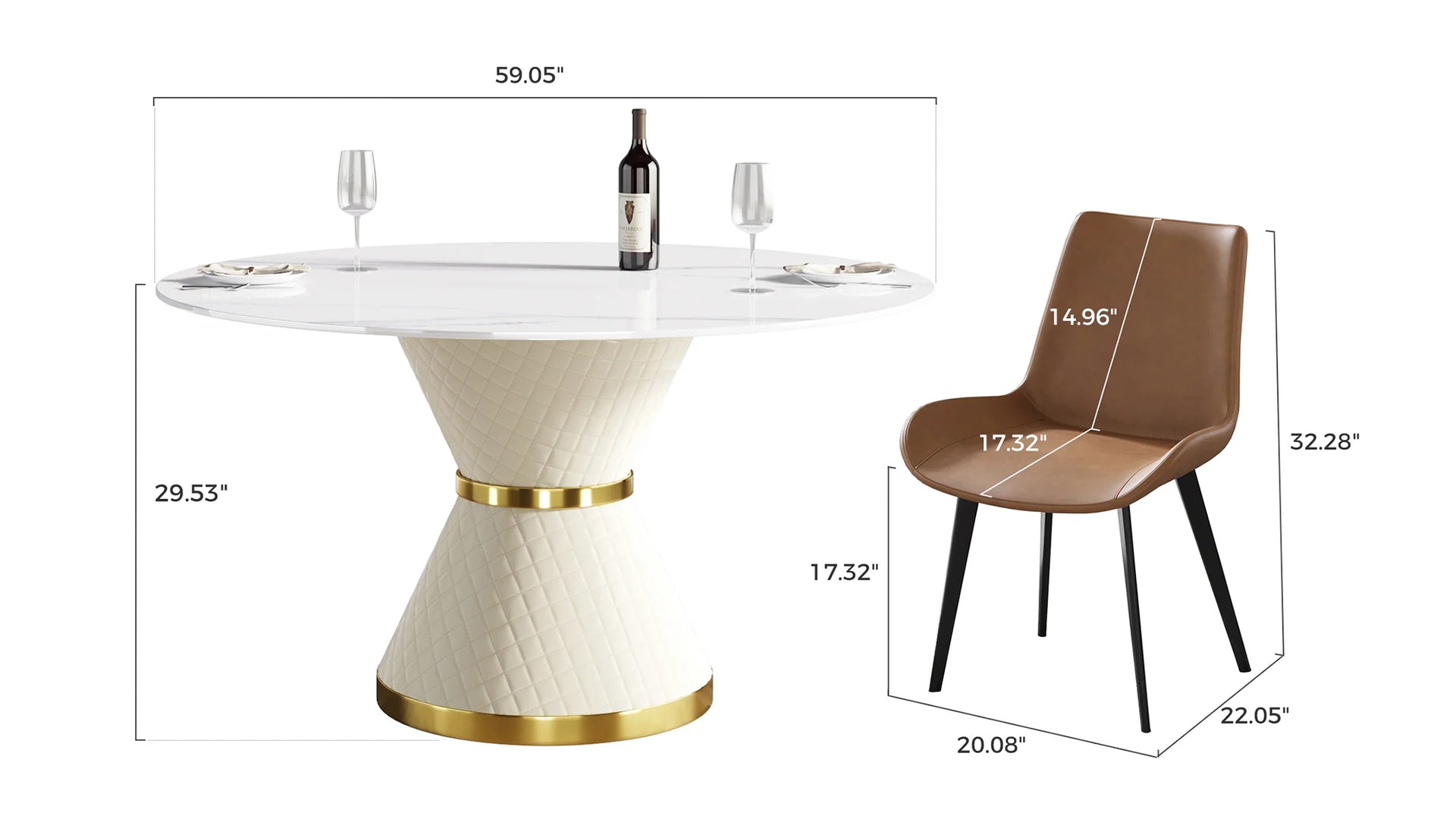 • Minimalist Round White Stone Dining Table – White Textured Wood Base, Seats 6White / White / 53" Table