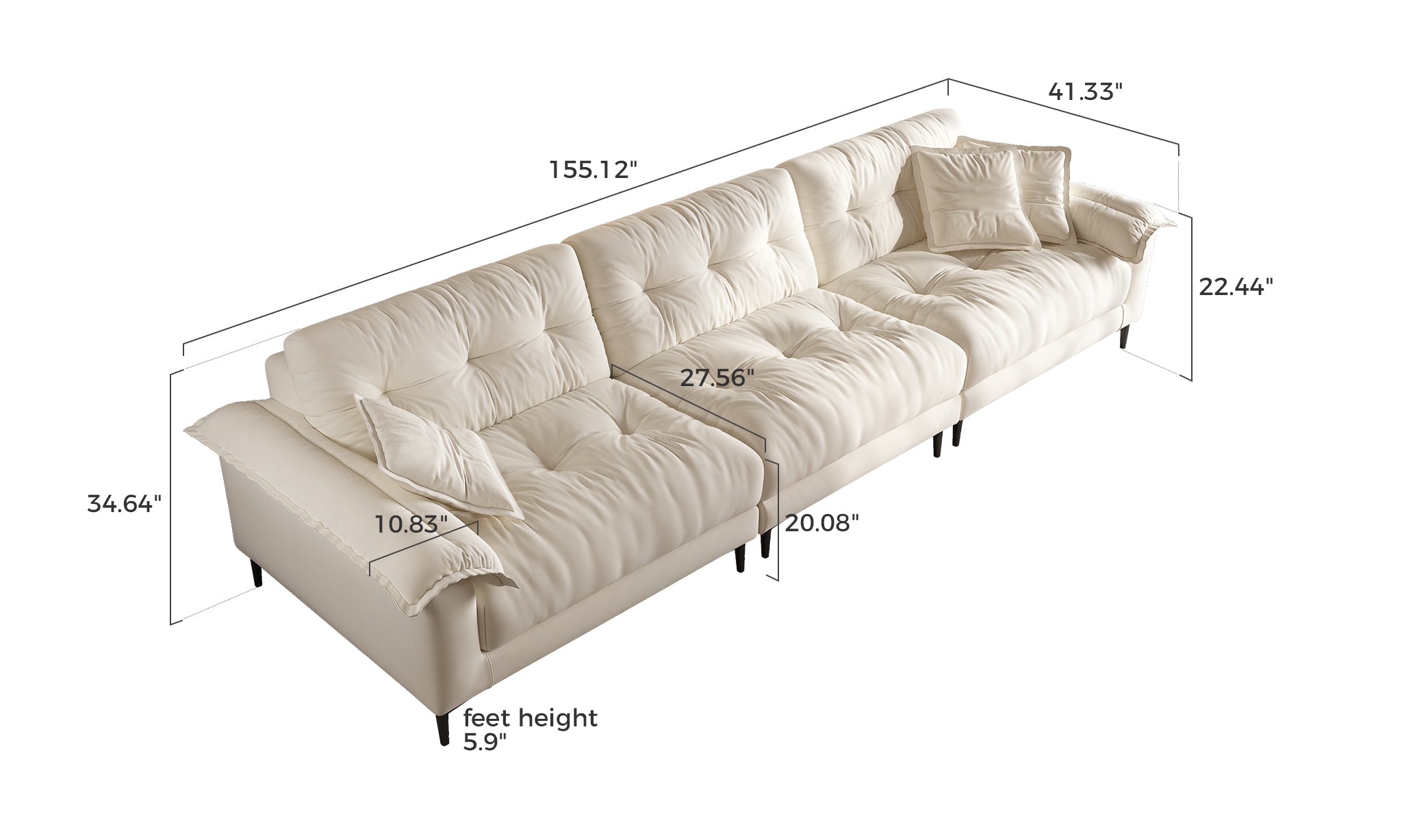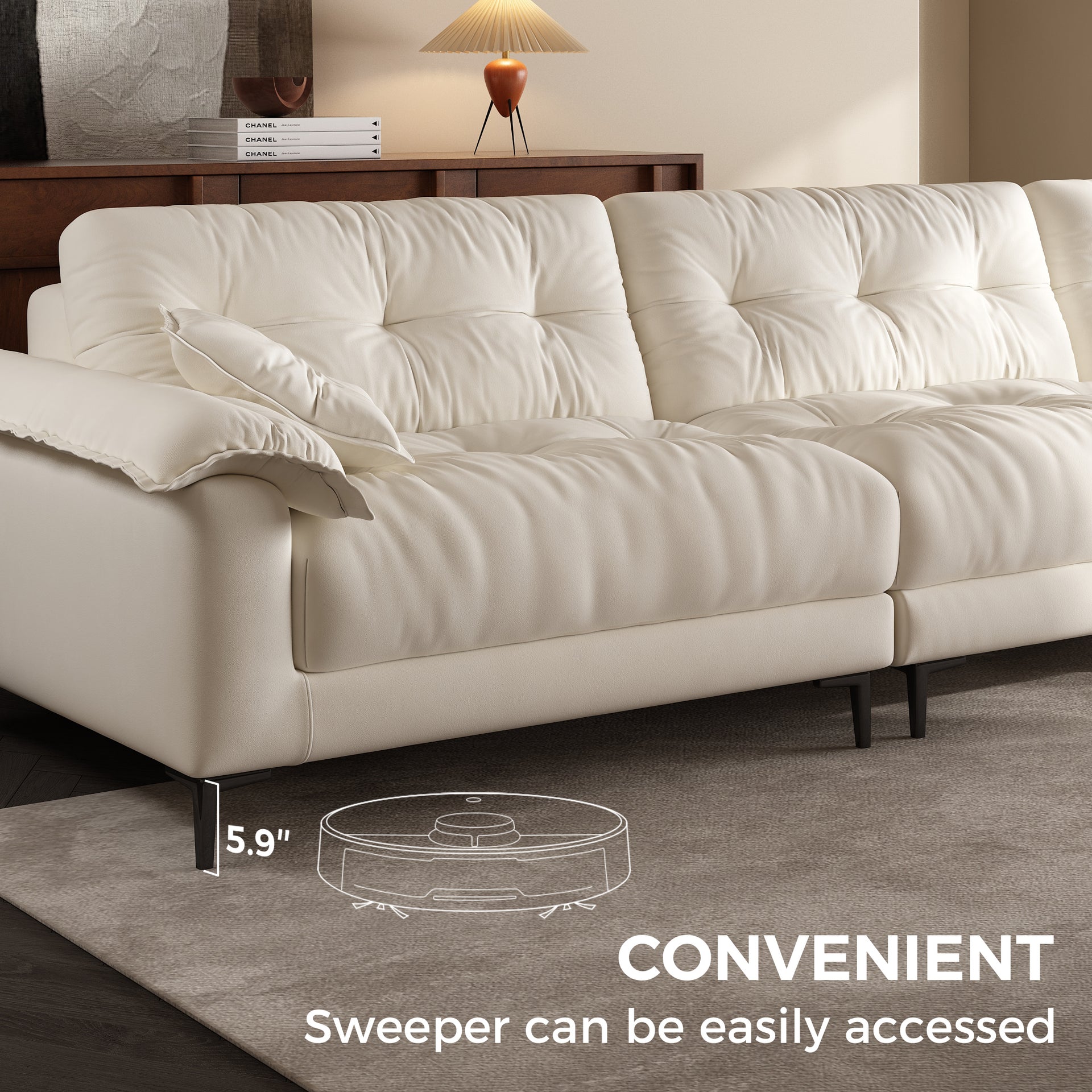 The 5.9-inch sofa legs provide ample clearance for robotic vacuums, making it easy to clean underneath with no hidden dust zones.