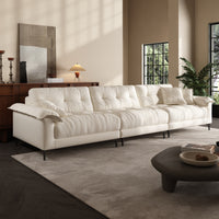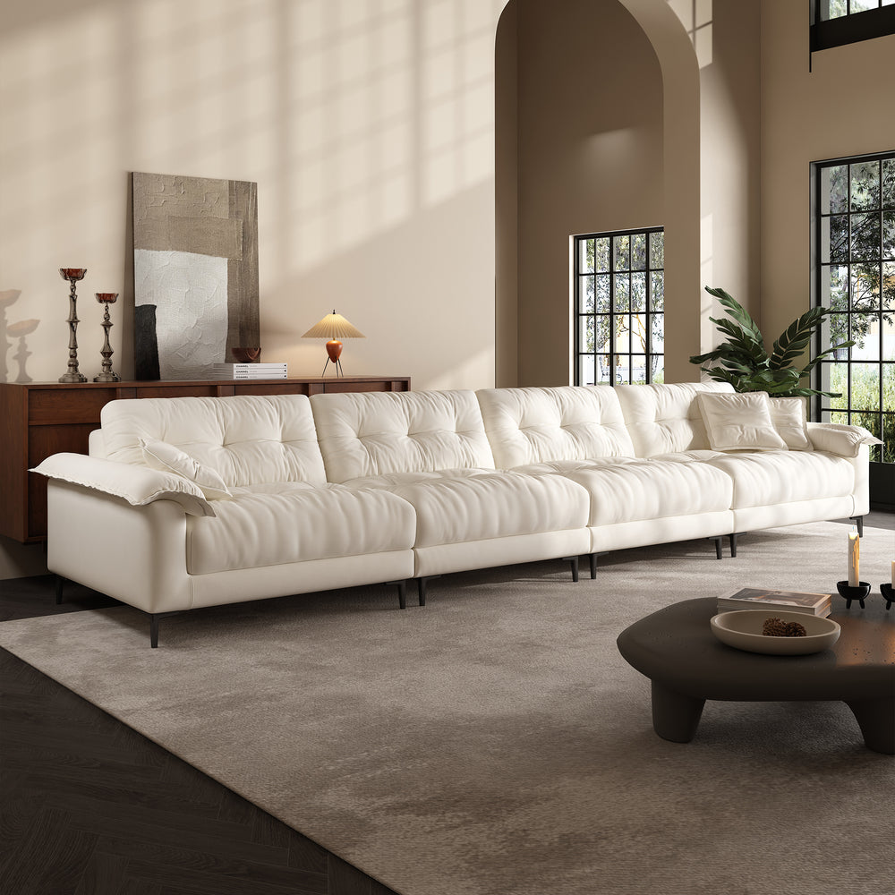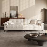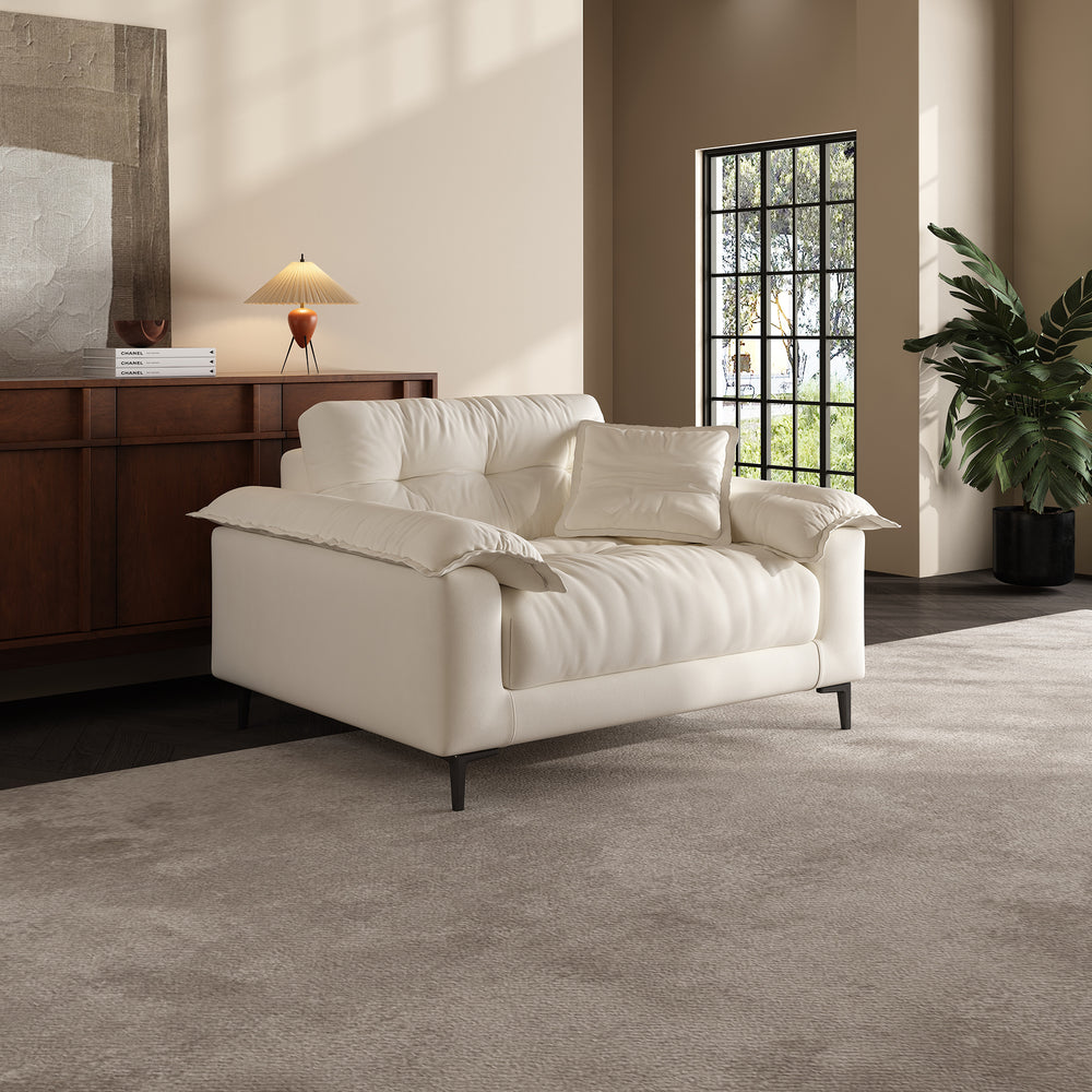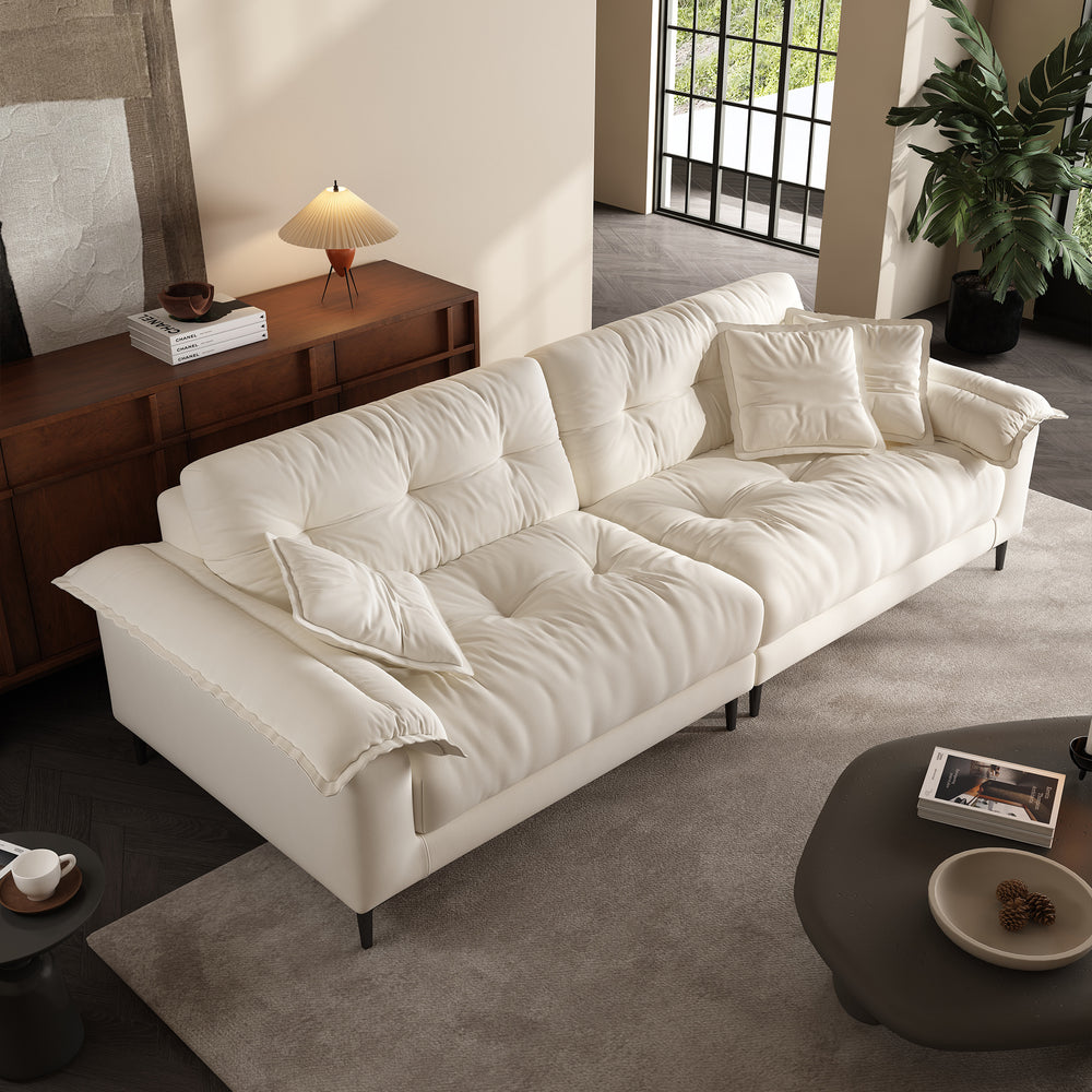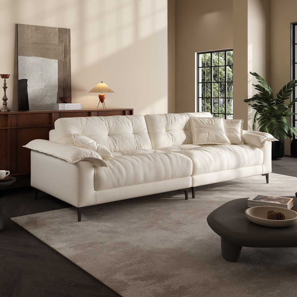 The subtle tufted details bring depth and texture to the sofa’s minimalist silhouette, adding visual interest without overwhelming the space. This timeless design strikes the perfect balance between elegance and simplicity, making it a seamless fit for a wide range of interiors—from modern apartments to cozy family rooms.