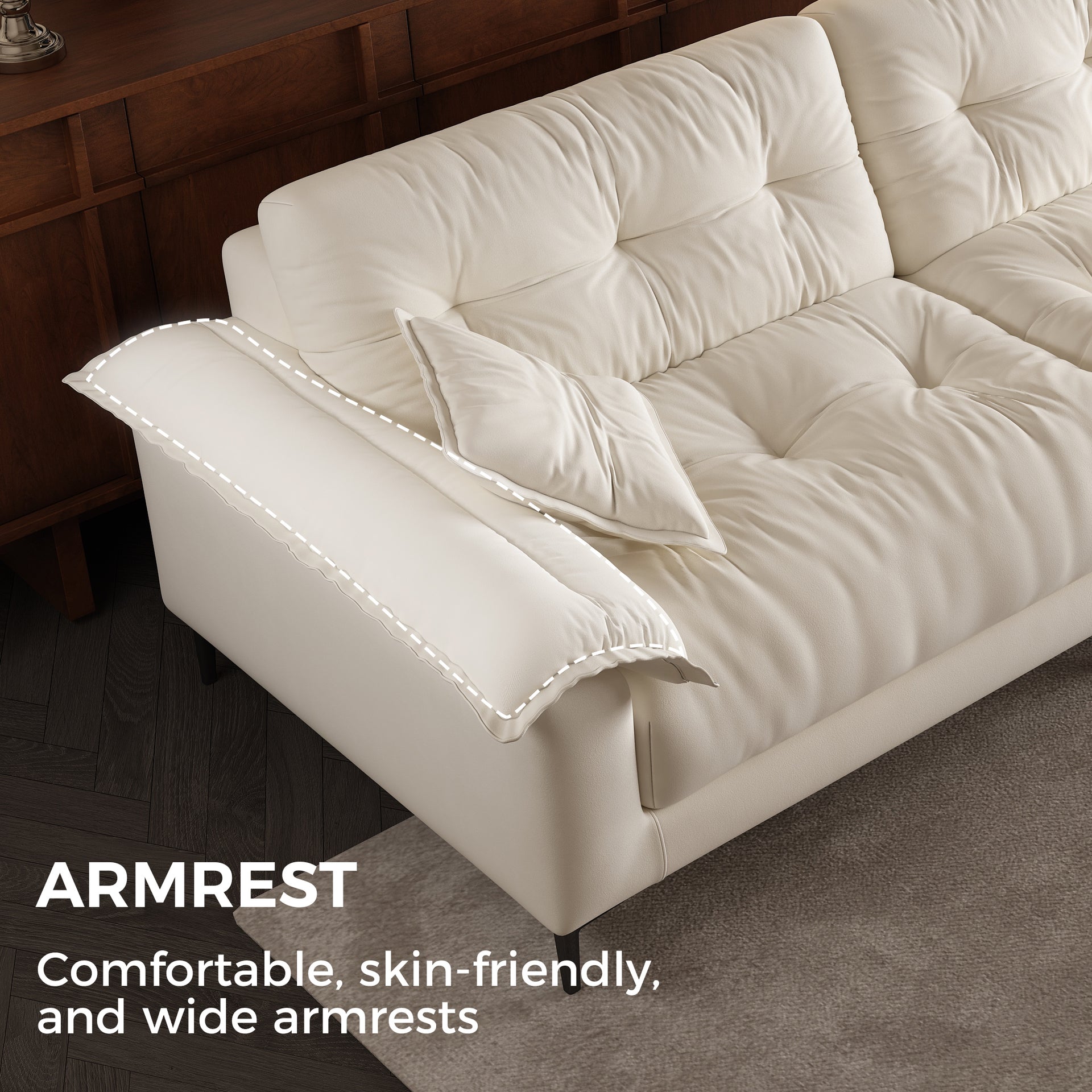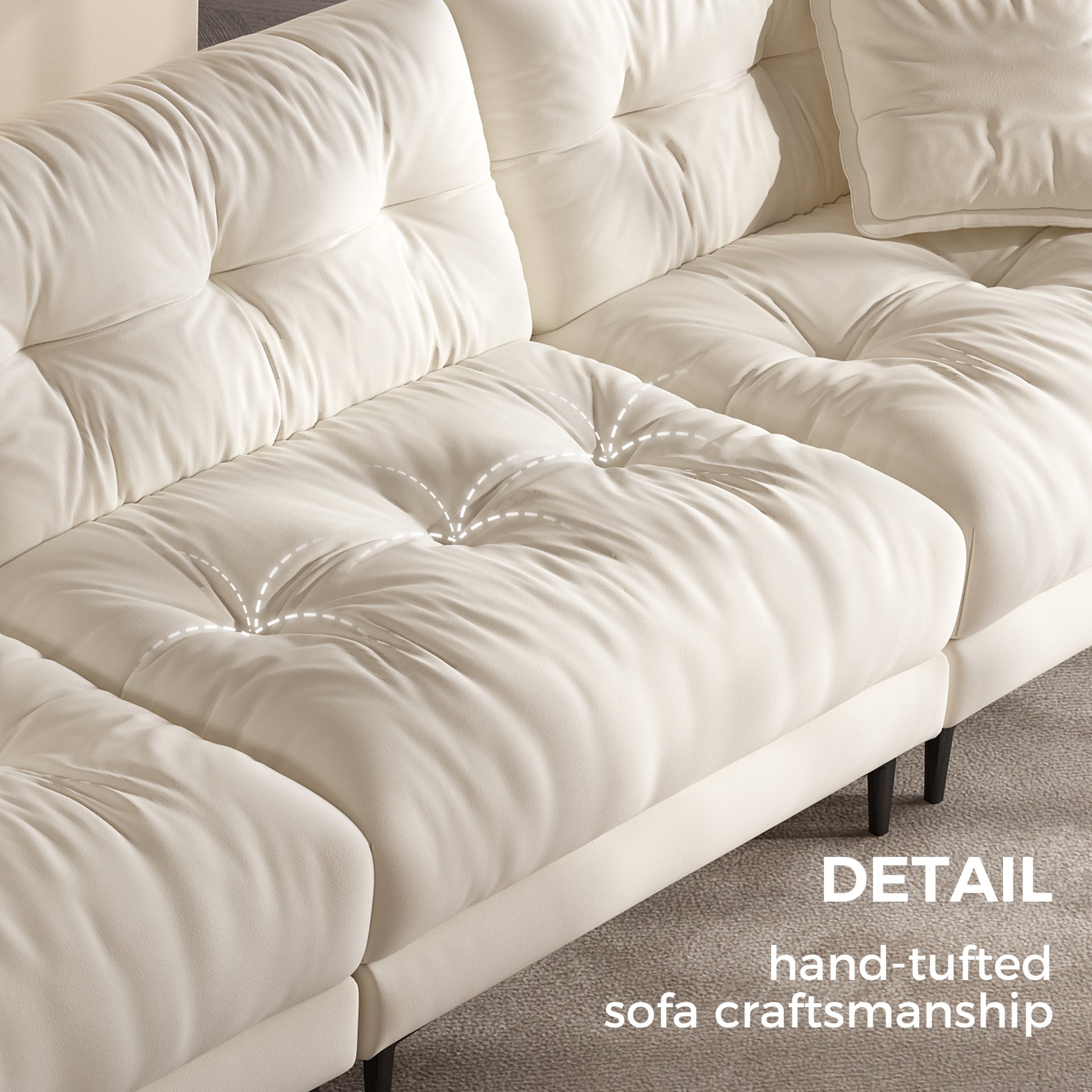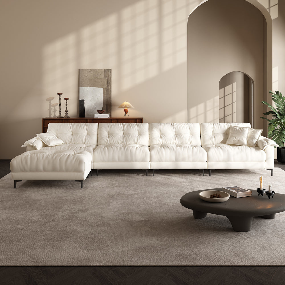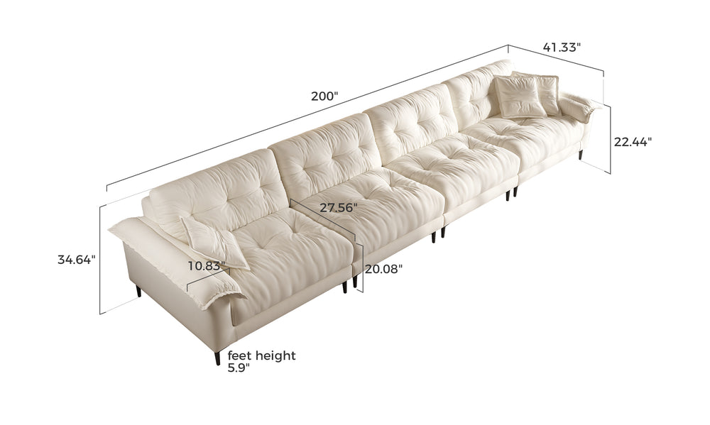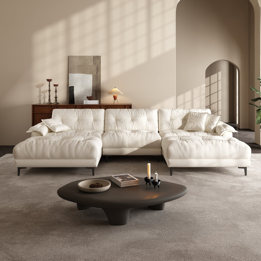 The subtle tufted details bring depth and texture to the sofa’s minimalist silhouette, adding visual interest without overwhelming the space. This timeless design strikes the perfect balance between elegance and simplicity, making it a seamless fit for a wide range of interiors—from modern apartments to cozy family rooms.
