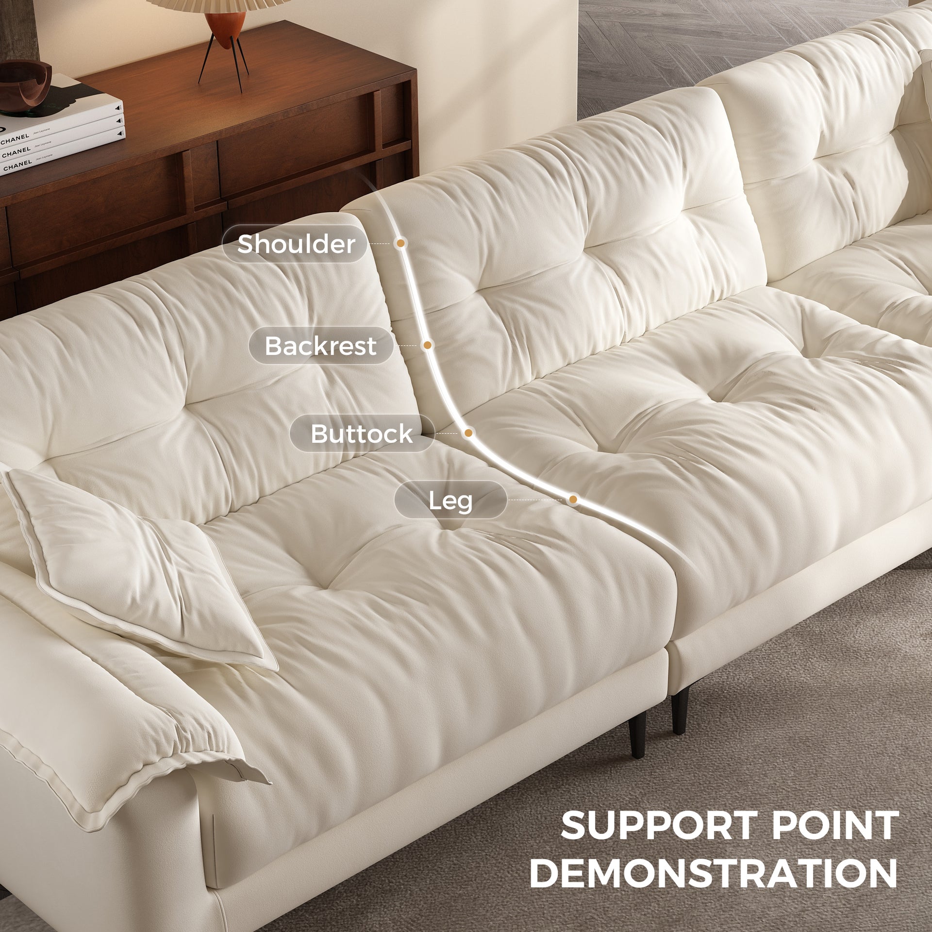 Thoughtfully designed with ergonomic principles in mind, this sofa contours to your body to provide full-body support—from neck to lower back and legs. Whether you're lounging, reading, or napping, it helps maintain healthy posture while enhancing comfort, making every moment of relaxation feel effortlessly natural and restorative.